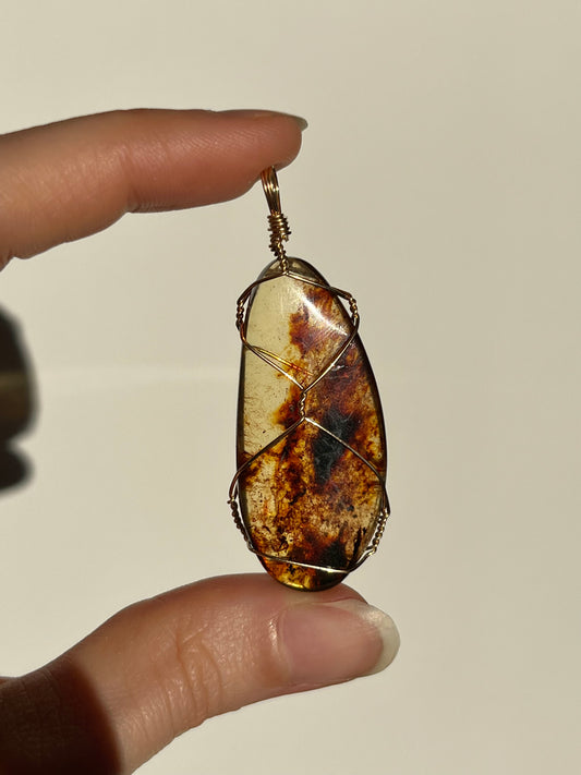 哥伦比亚琥珀绕丝吊坠(14kt 镀金)