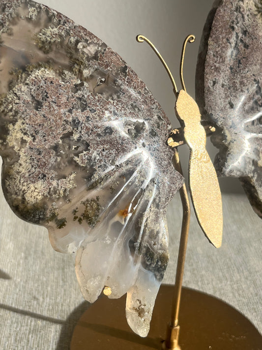 Nebula Agate with Scenic Moss Butterfly Wings on Stand C