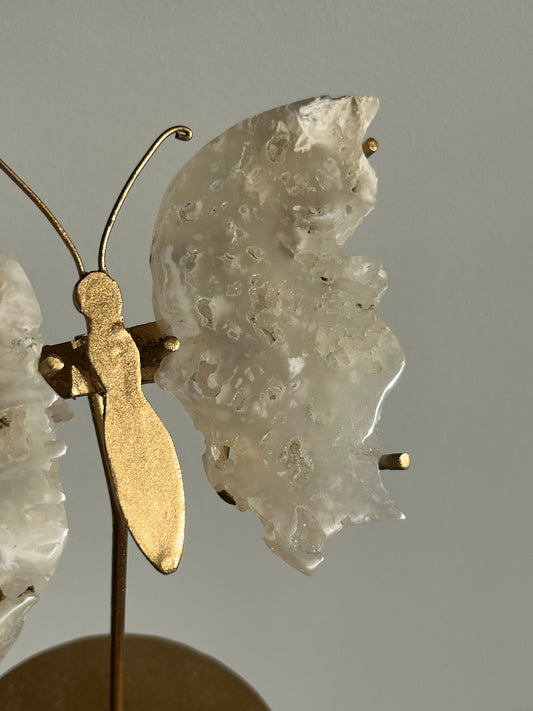 Druzy Flower Agate Butterfly Wings on Gold Stand A