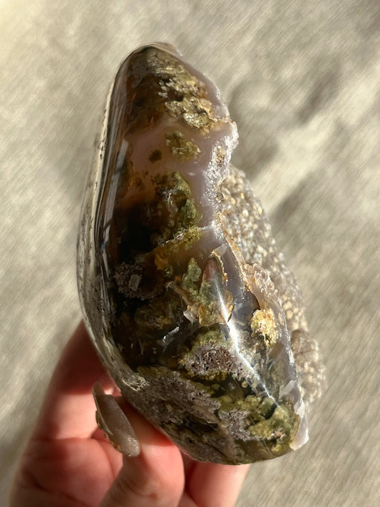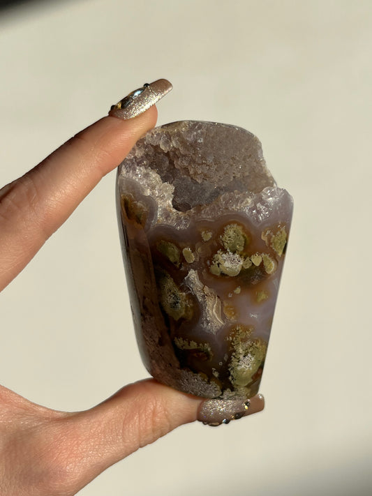 Nebula Agate, Amethyst and Scenic Moss Semi Polished Freeform H