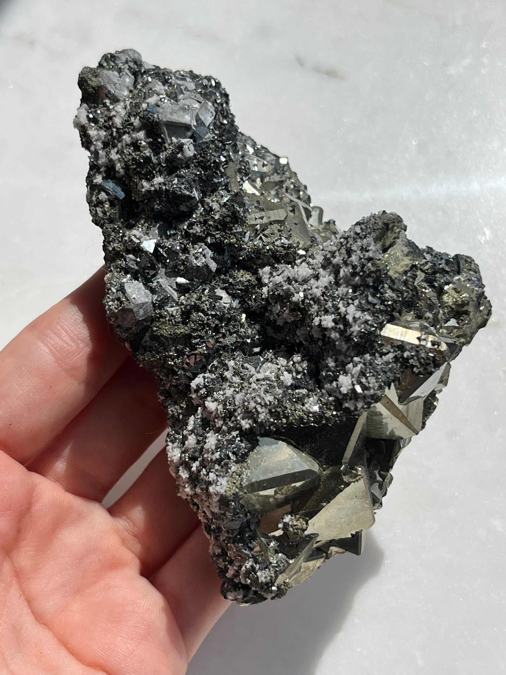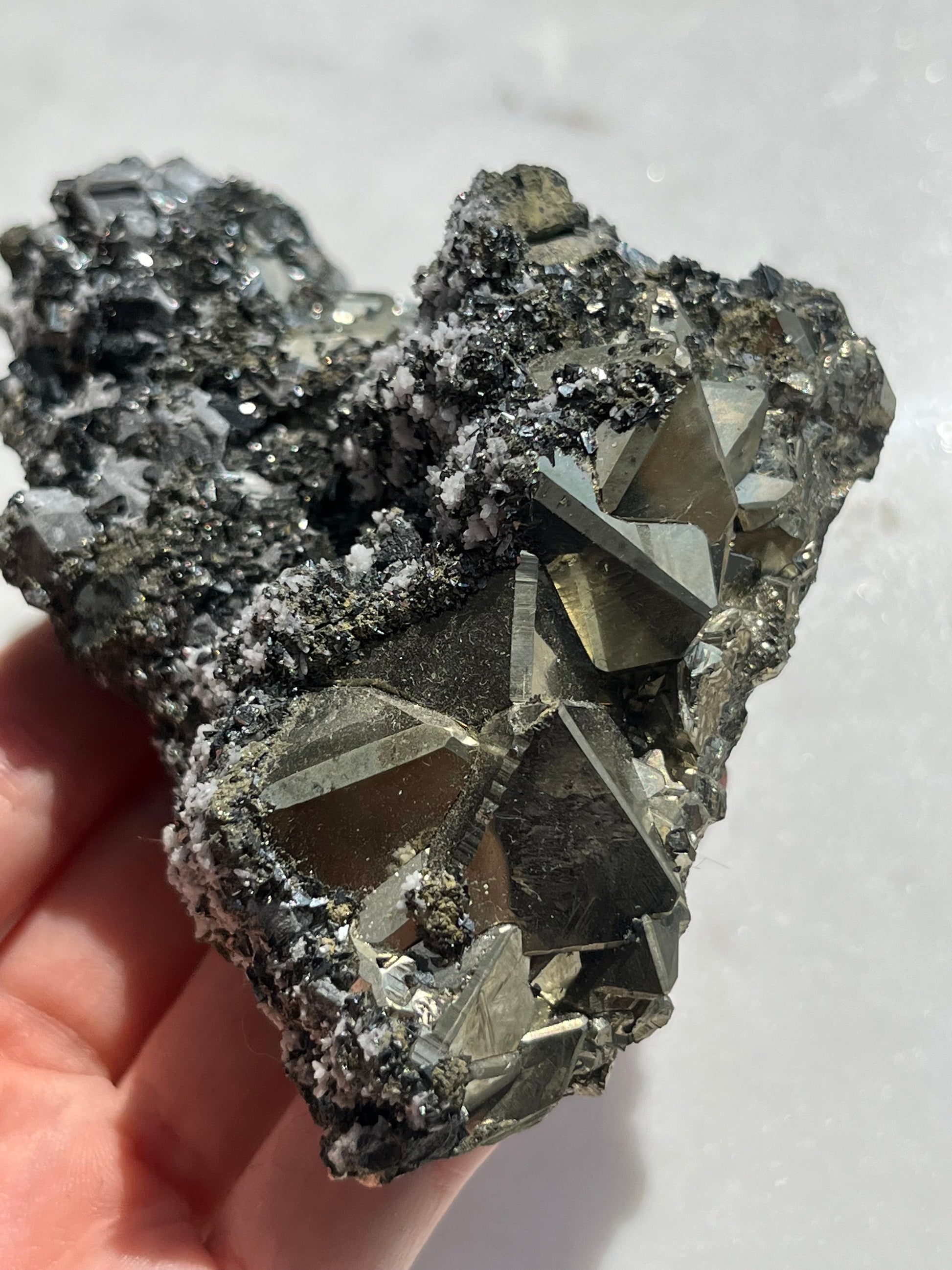 A Grade Octahedral Pyrite Cluster w/Quartz & Sphalerite #4
