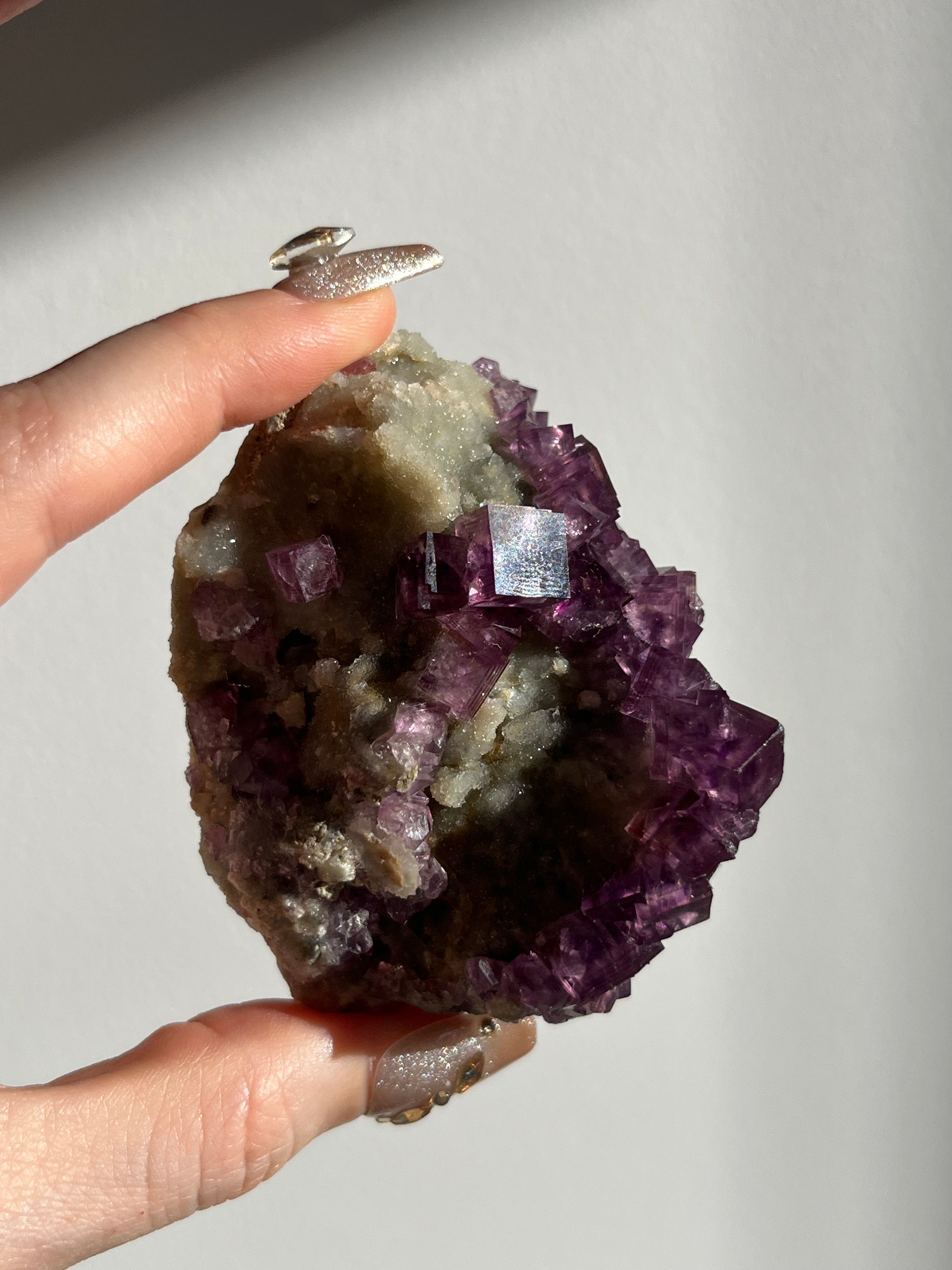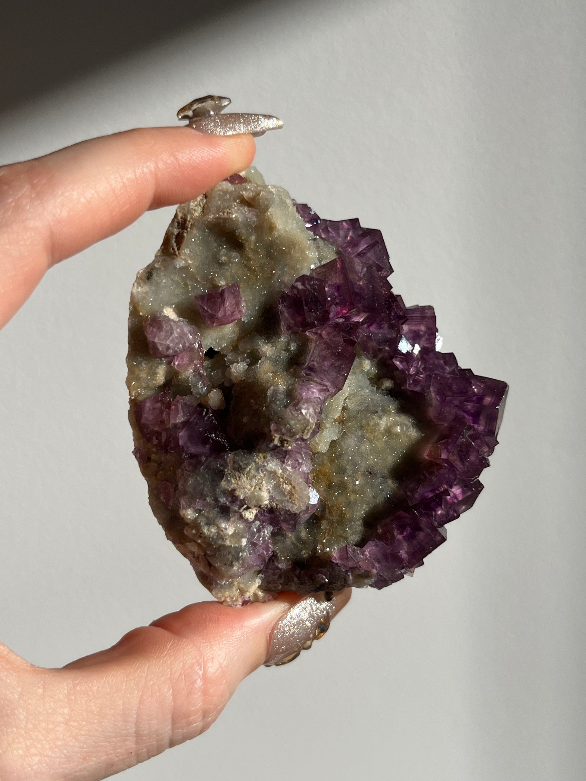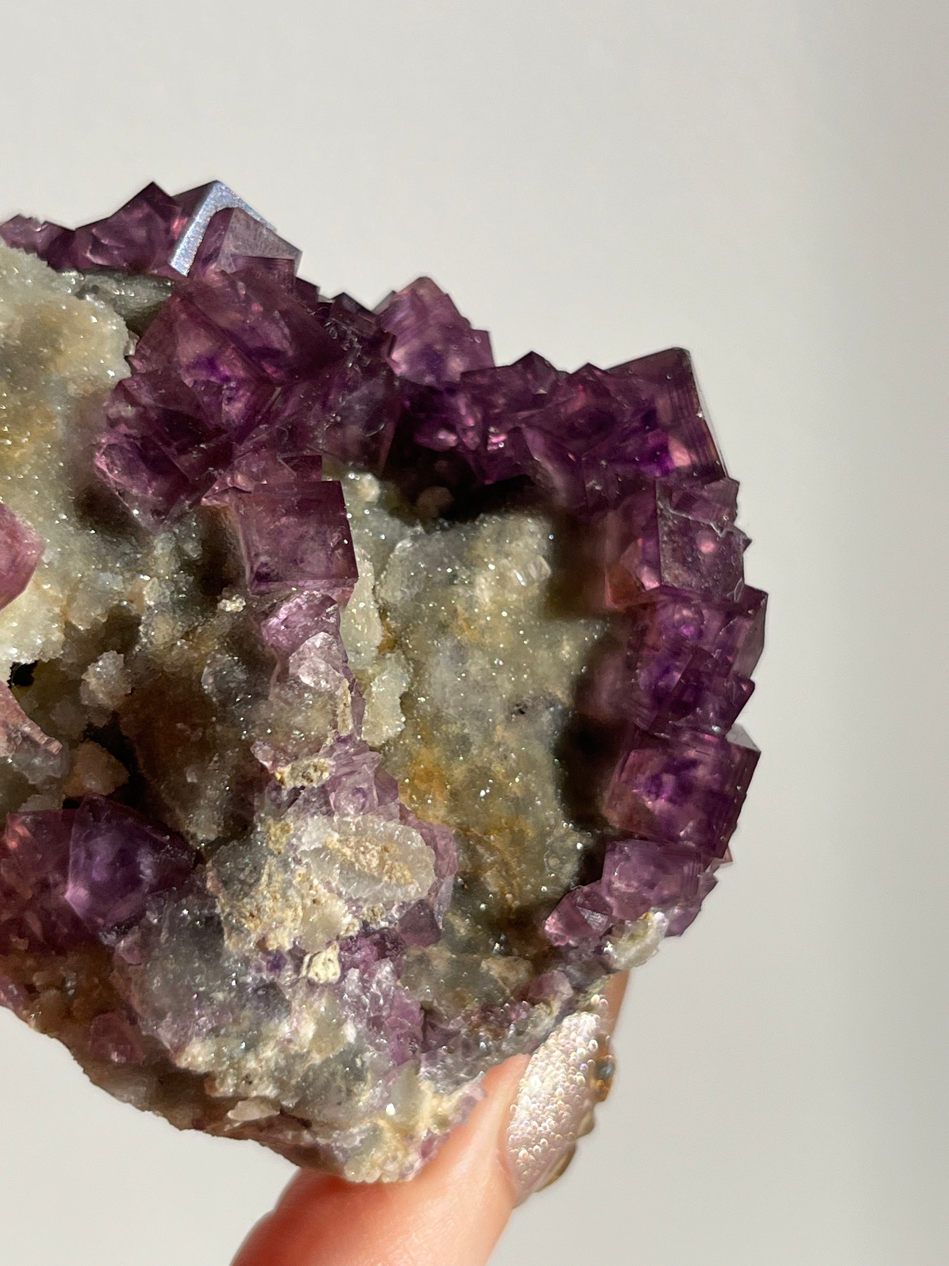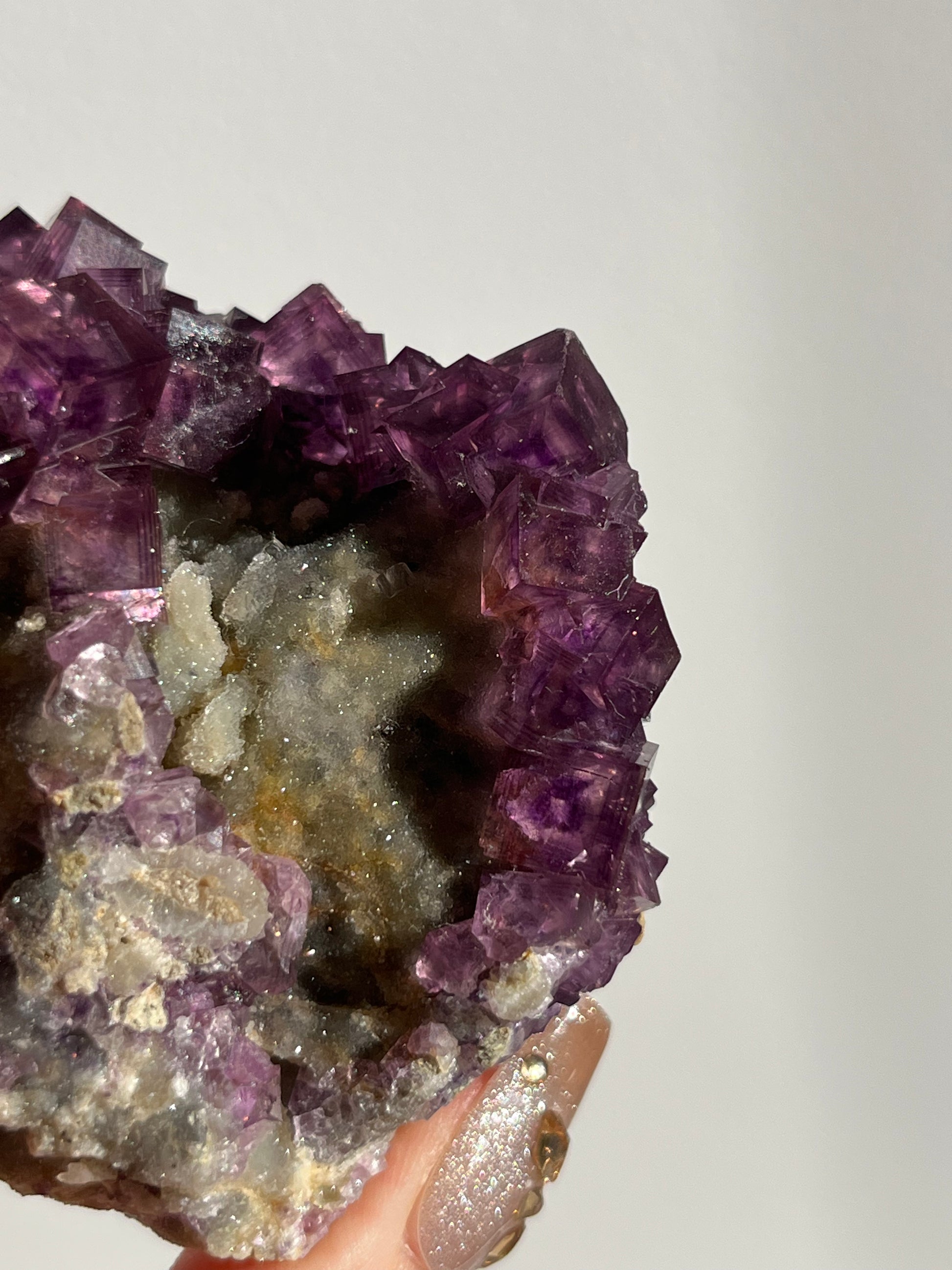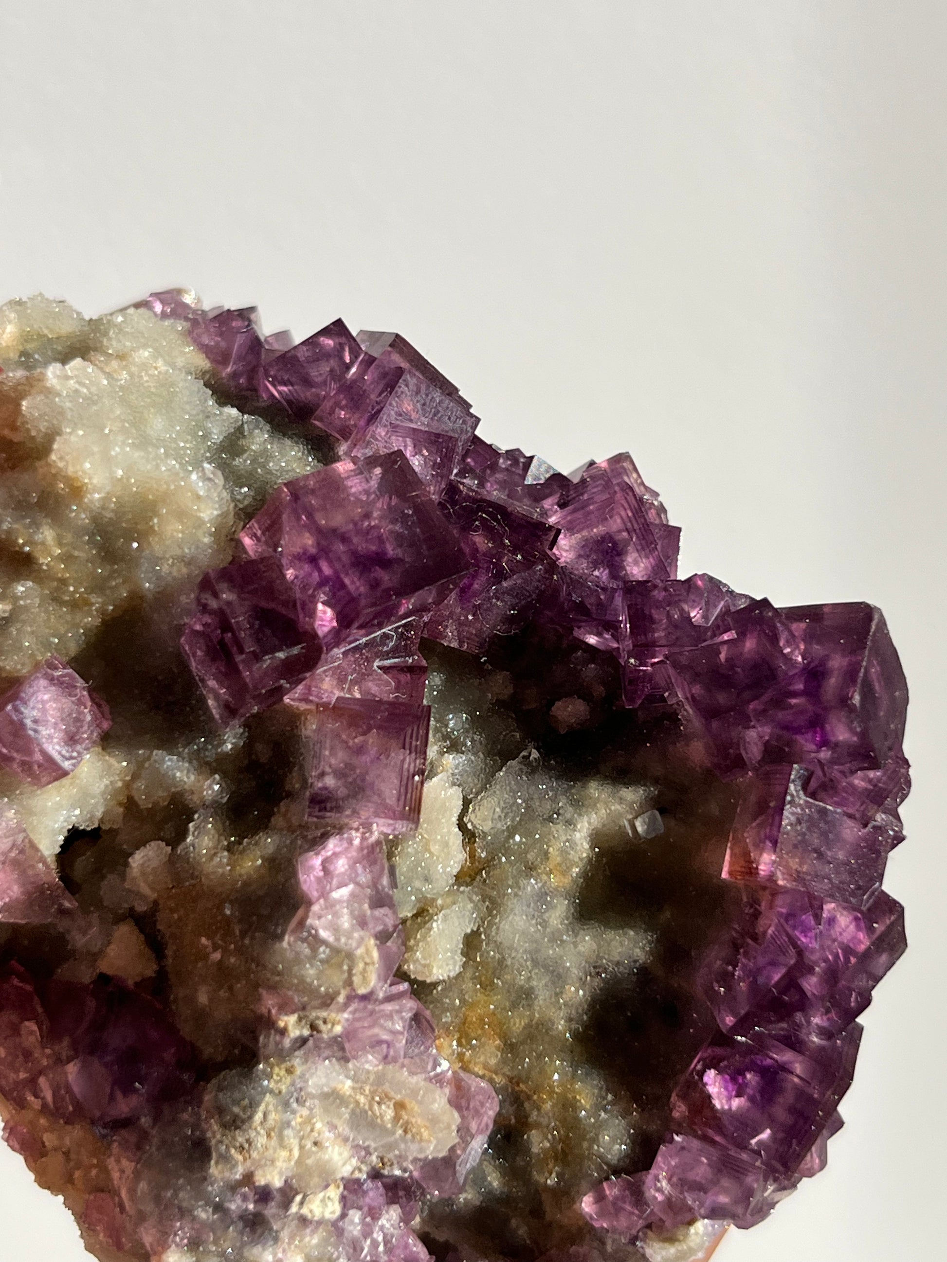 Anhui Fluorite on Druzy Quartz Matrix Specimen E