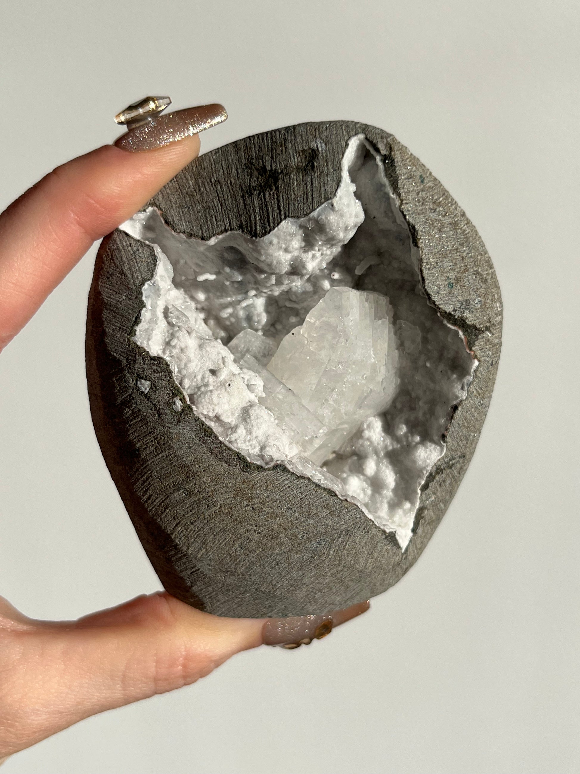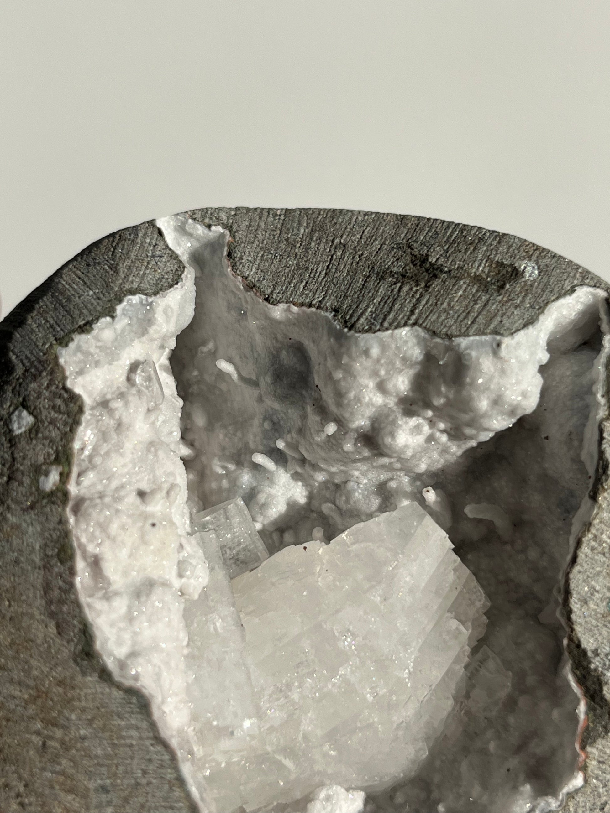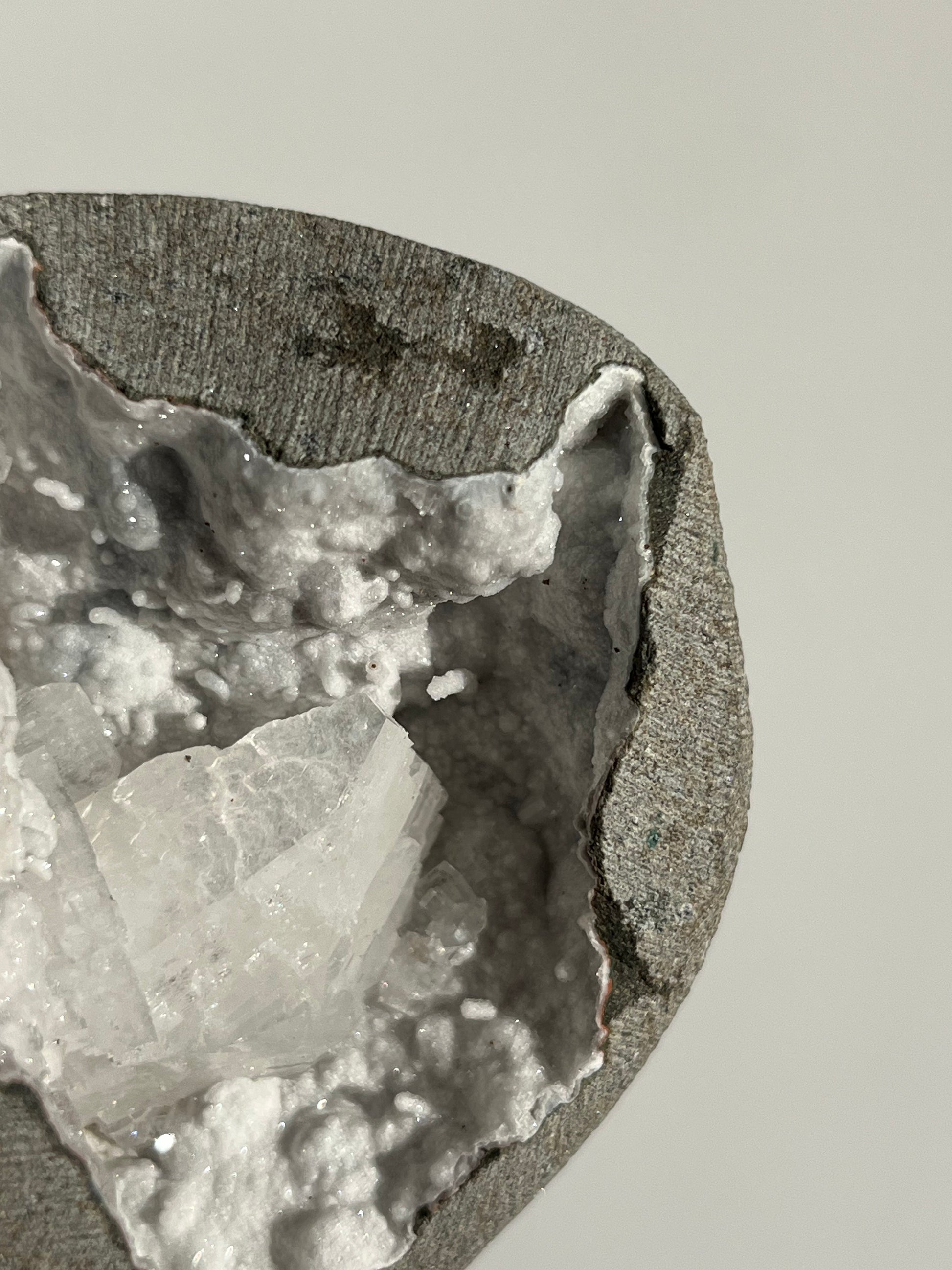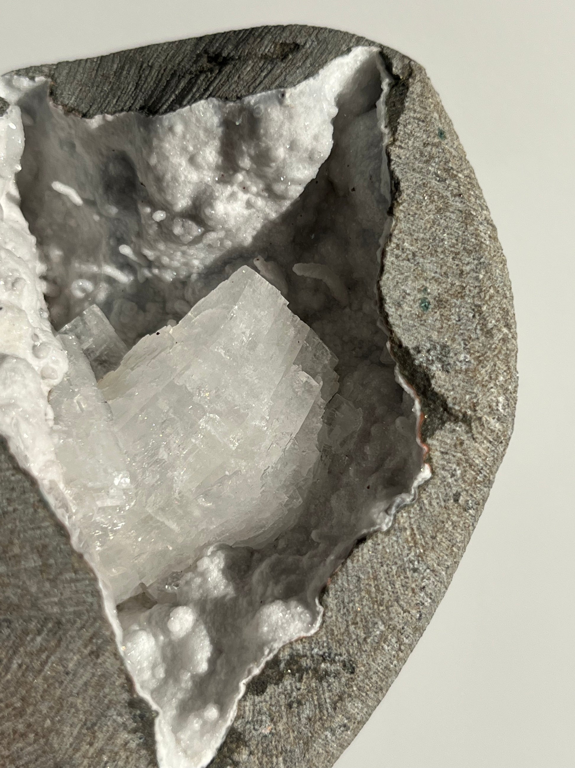Pseudostalactitic White Chalcedony with Apophyllite Geode Cave in Basalt AD