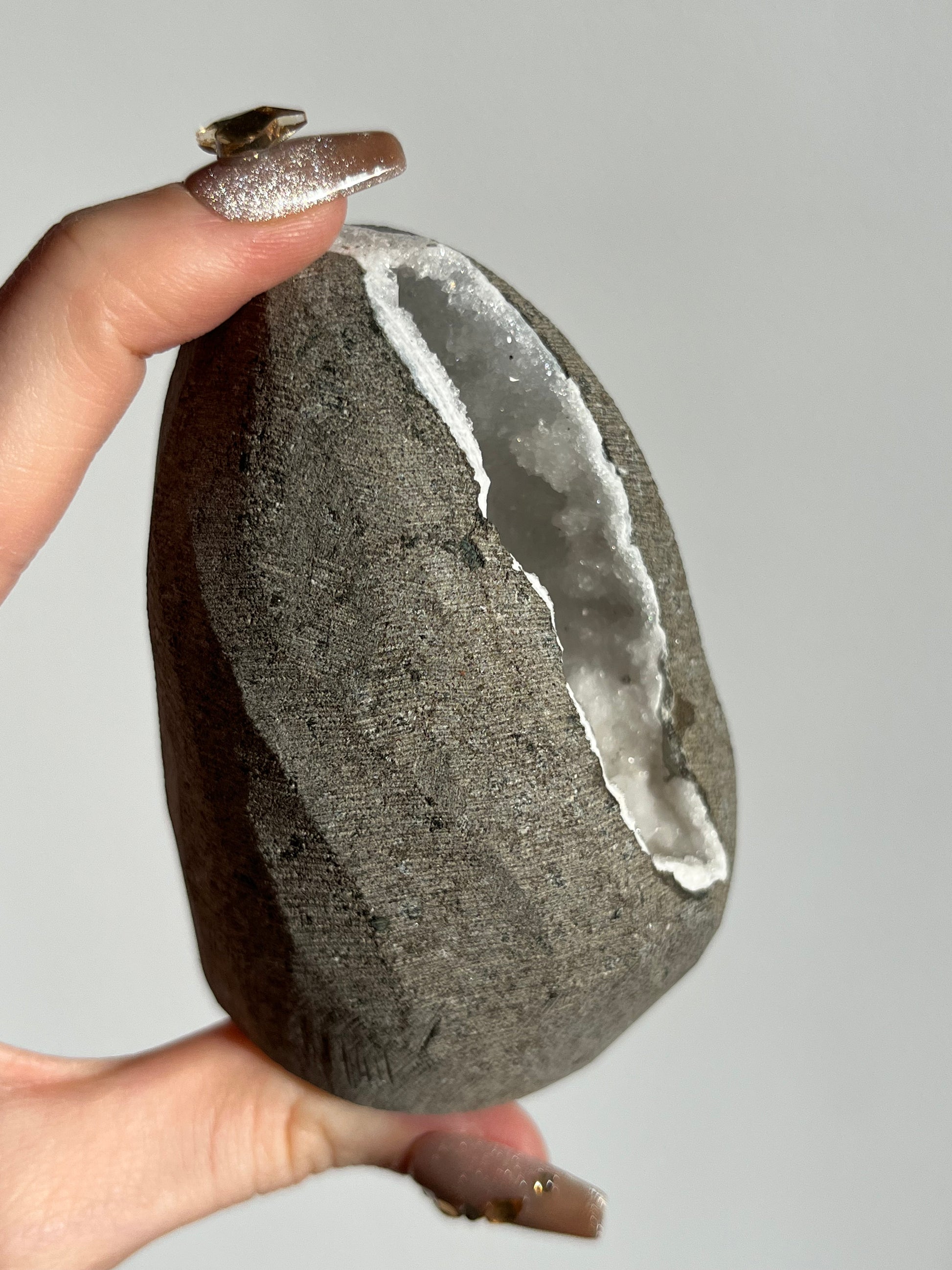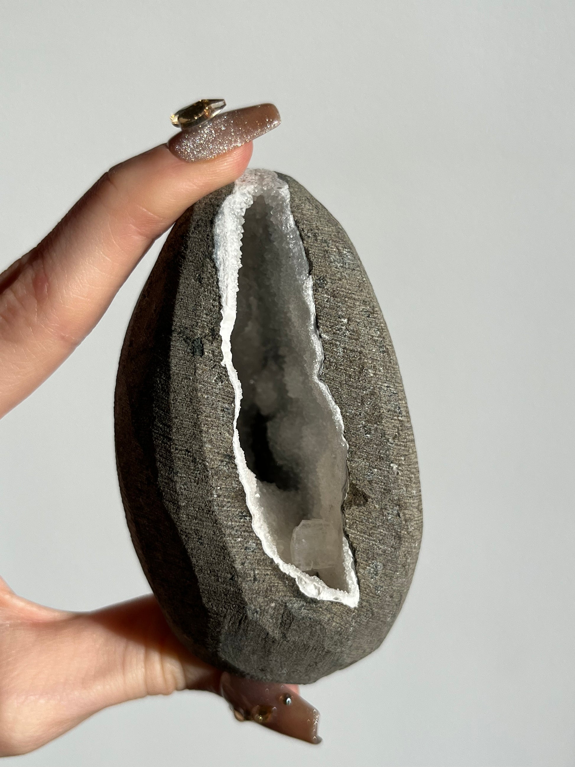 White Chalcedony with Apophyllite Geode Cave in Basalt AM