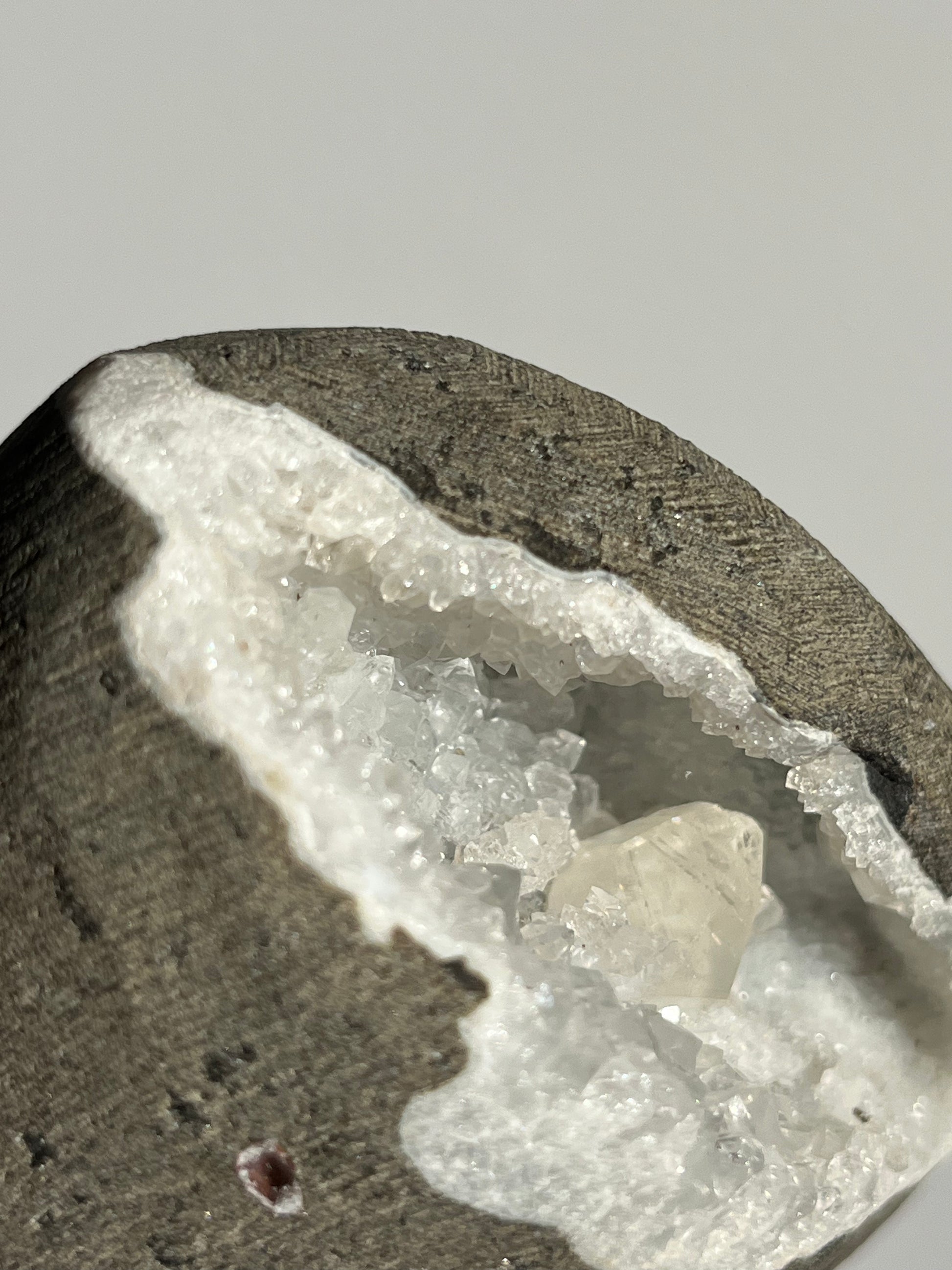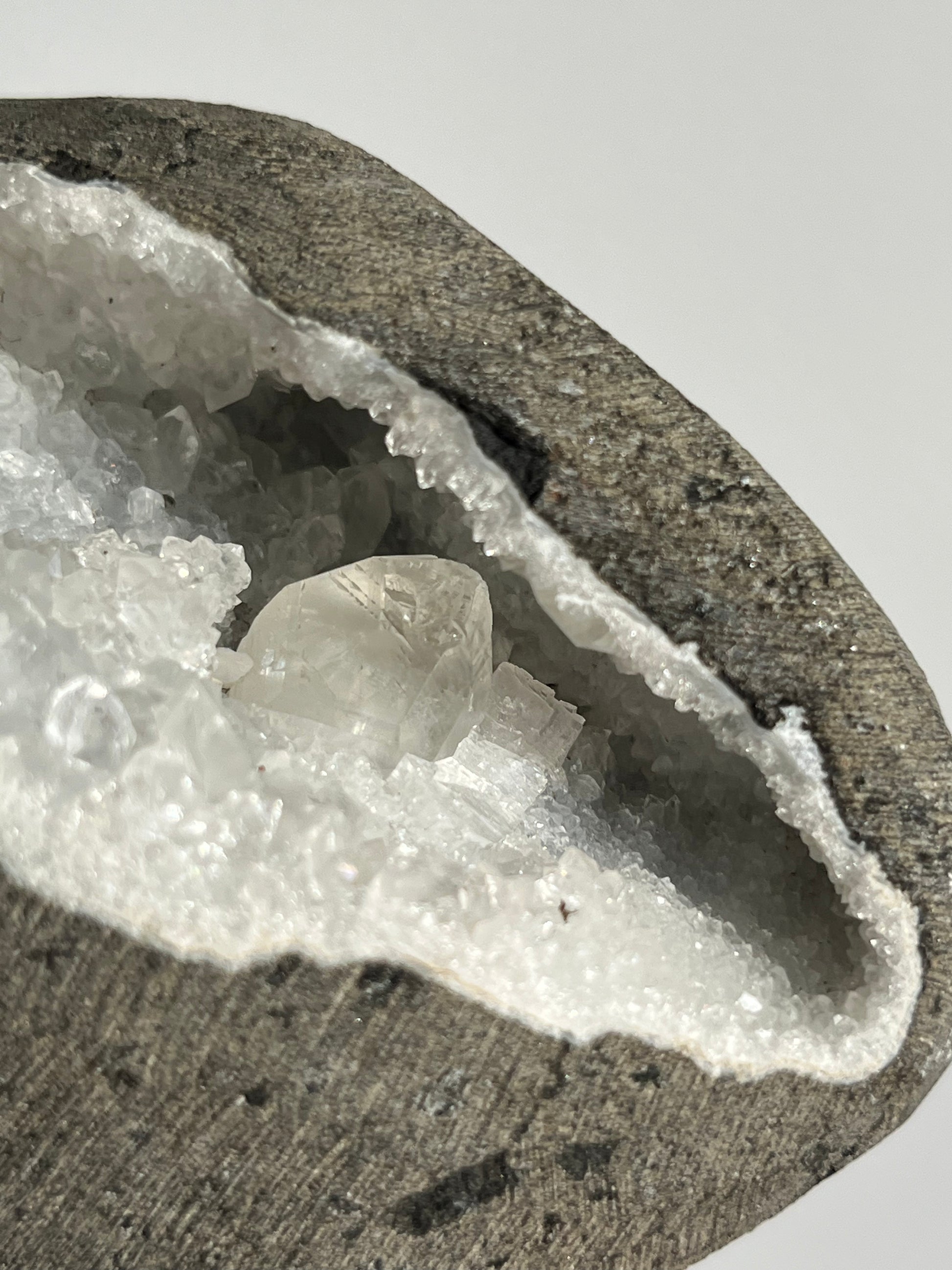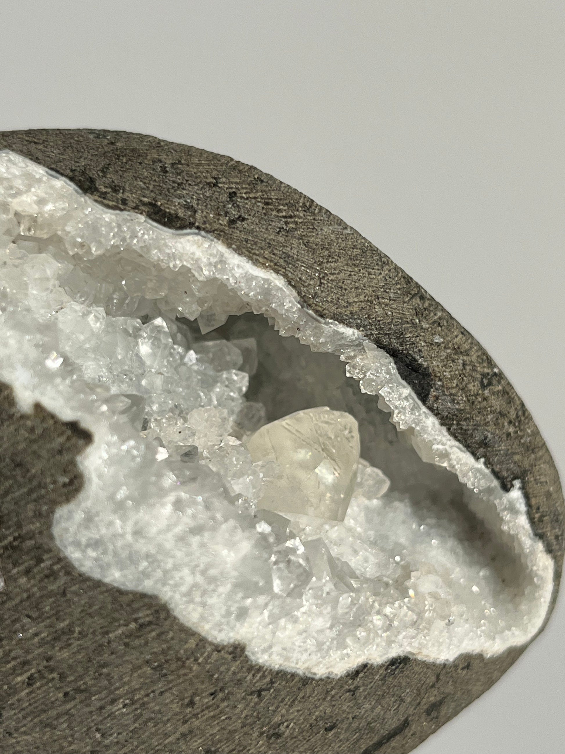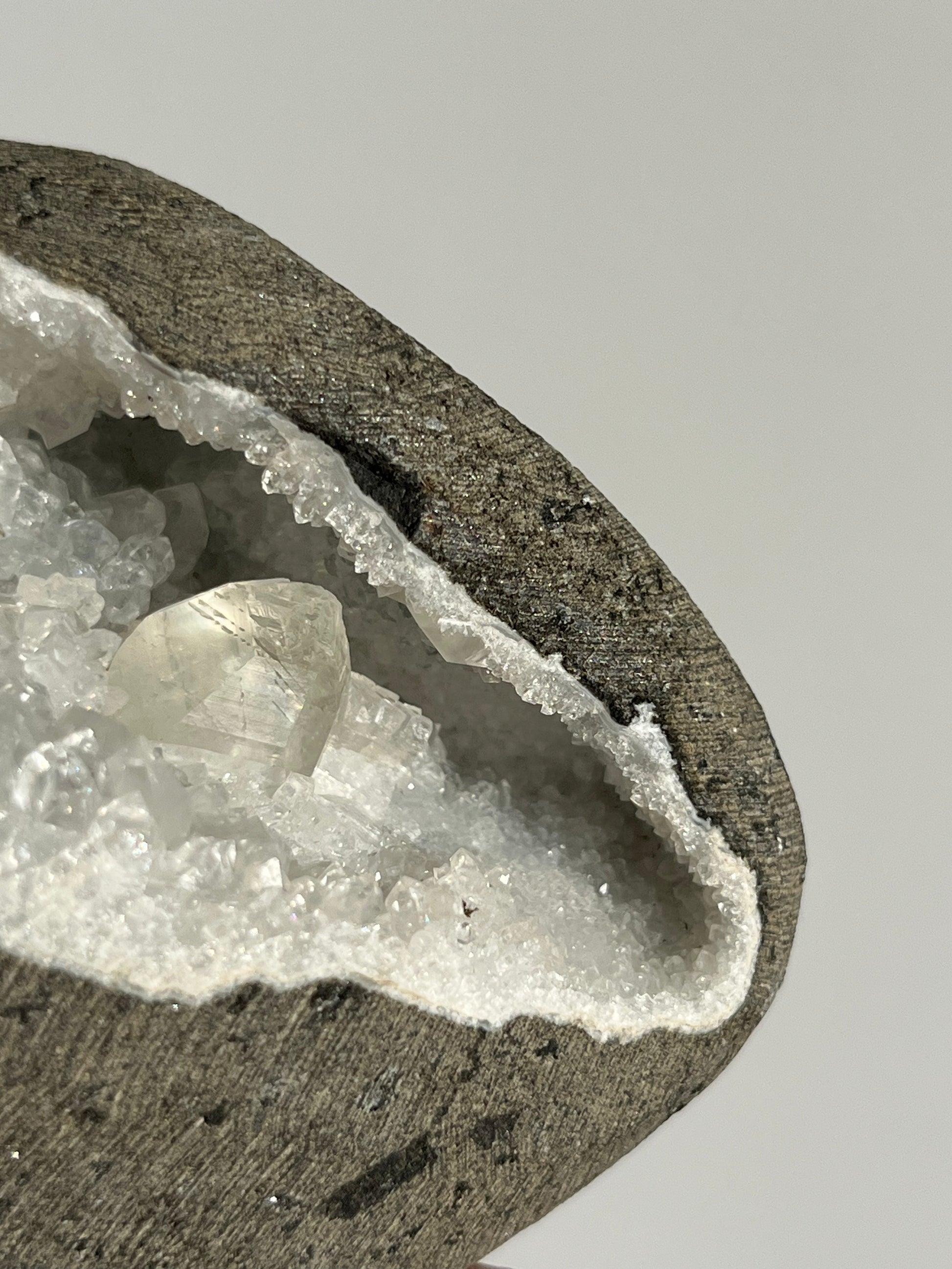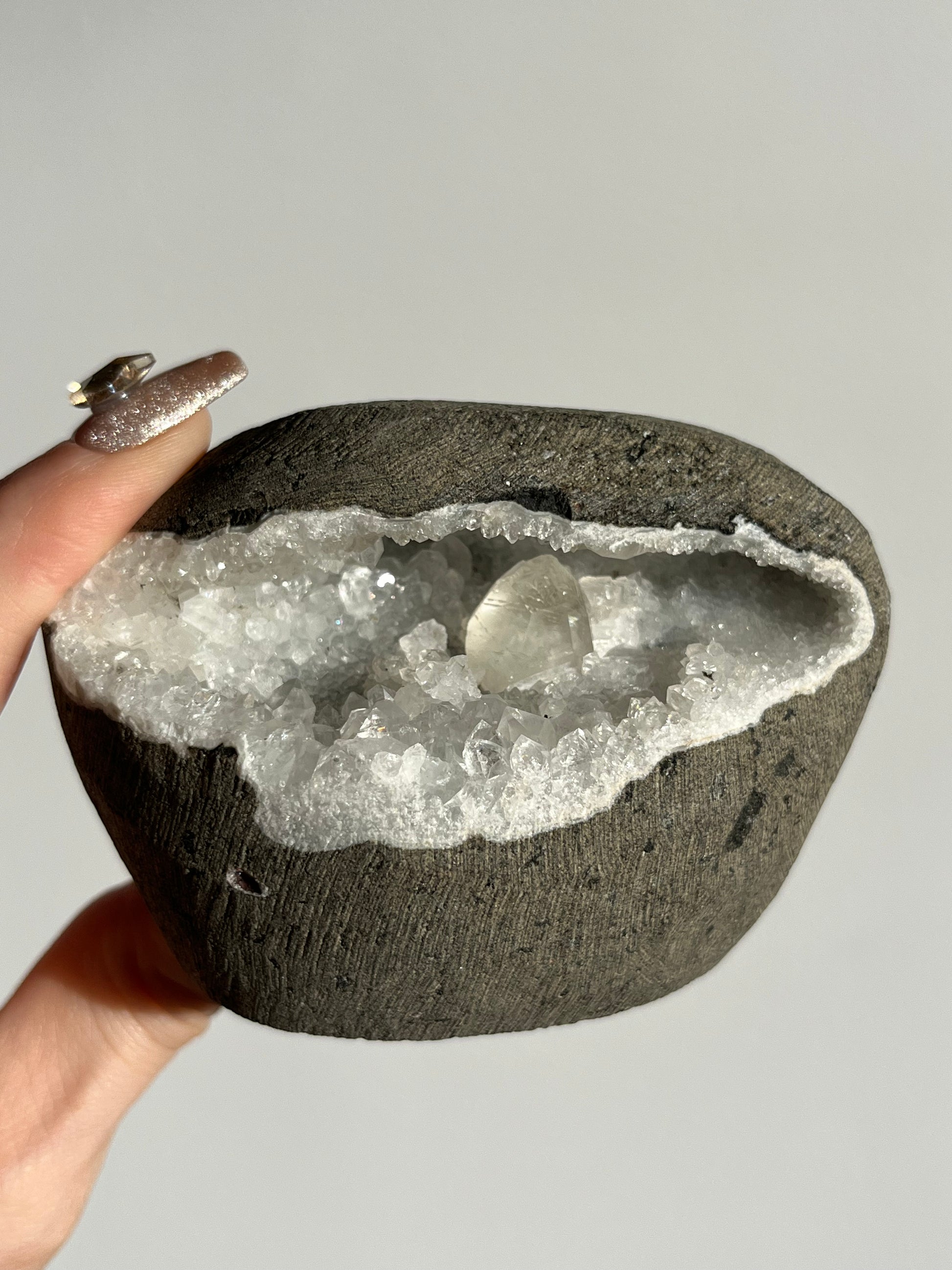 Clear Quartz with Calcite Geode Cave in Basalt AO