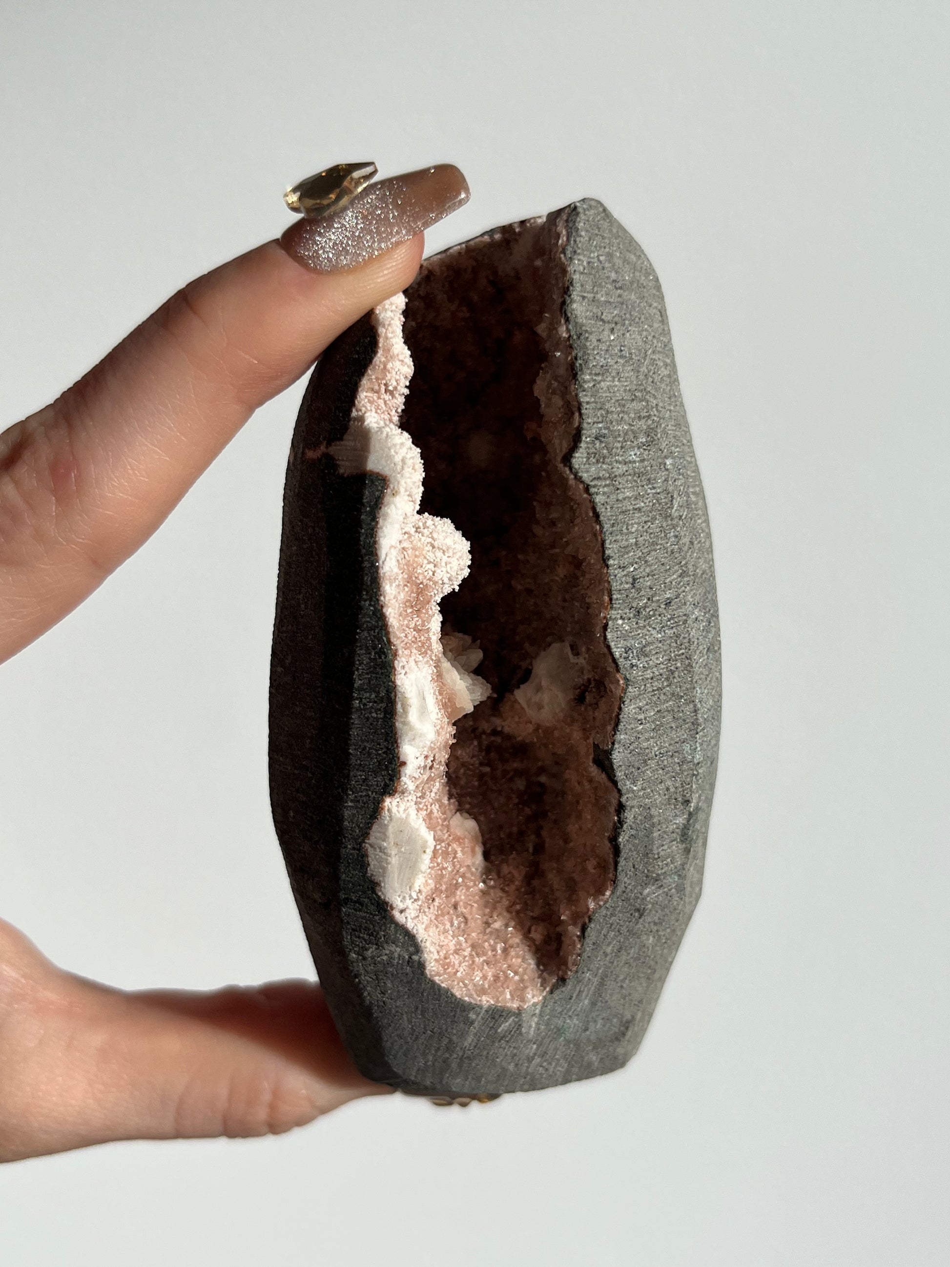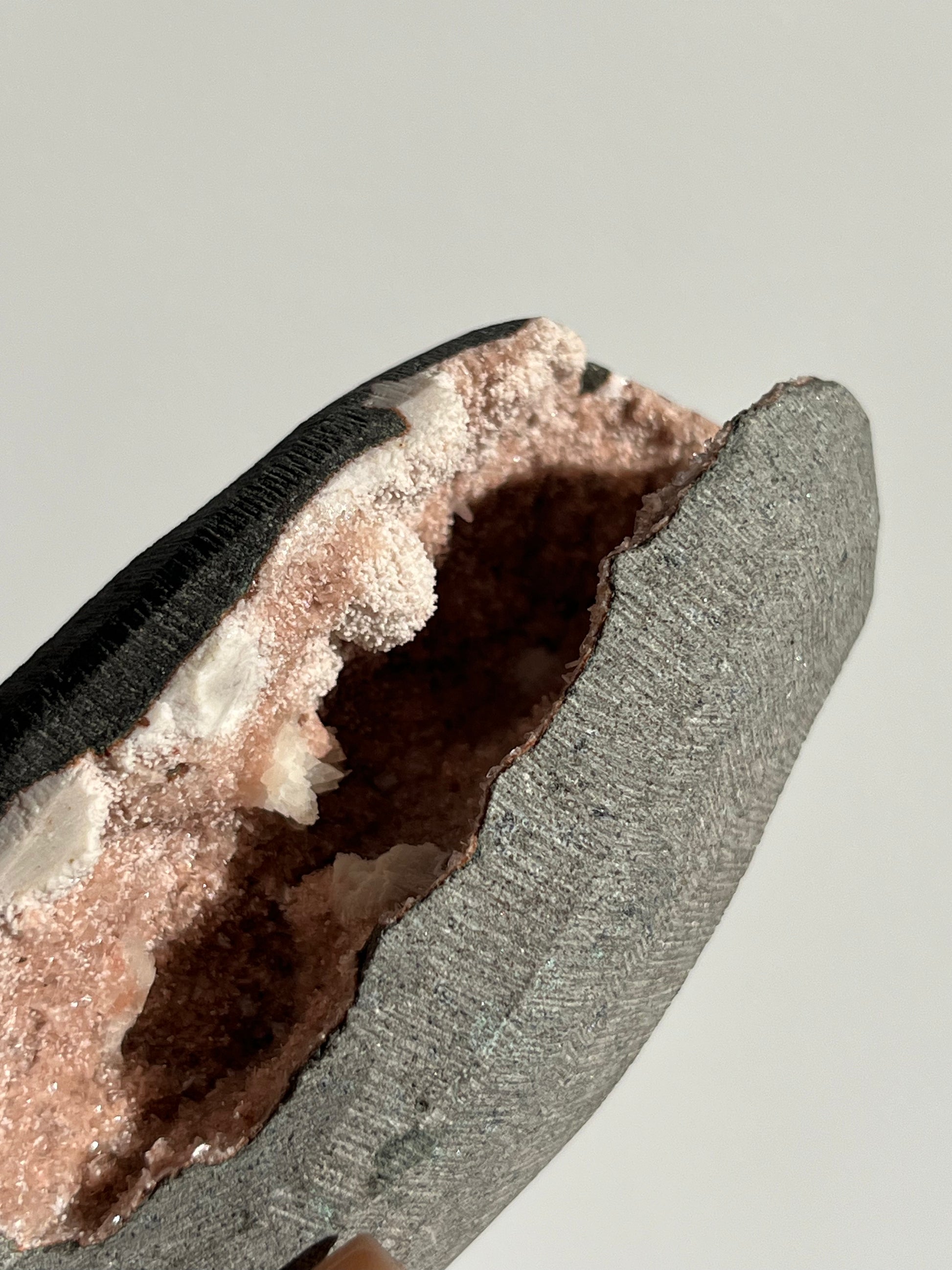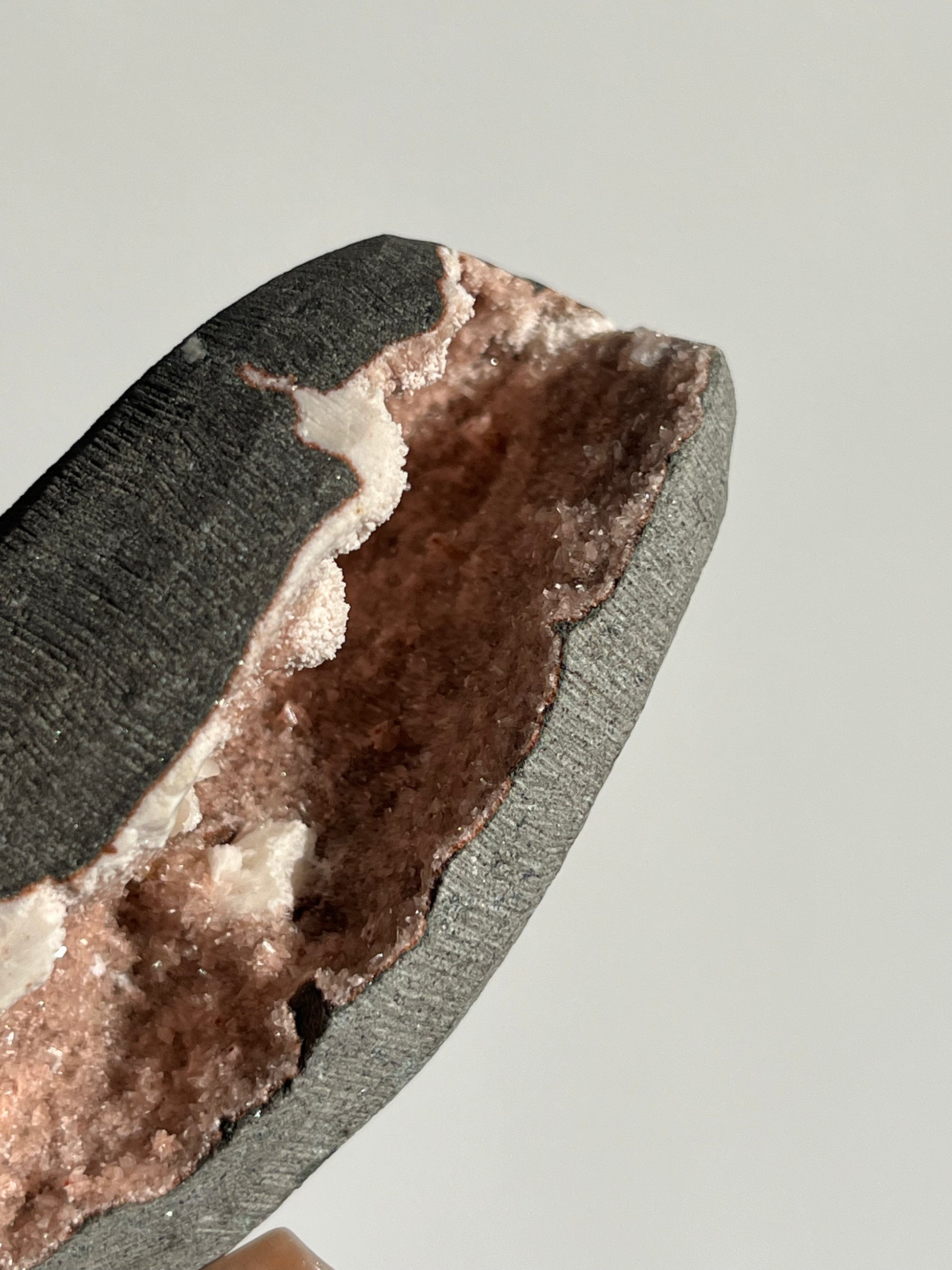 Red Heulandite Geode Cave in Basalt with Calcite and Thomsonite D