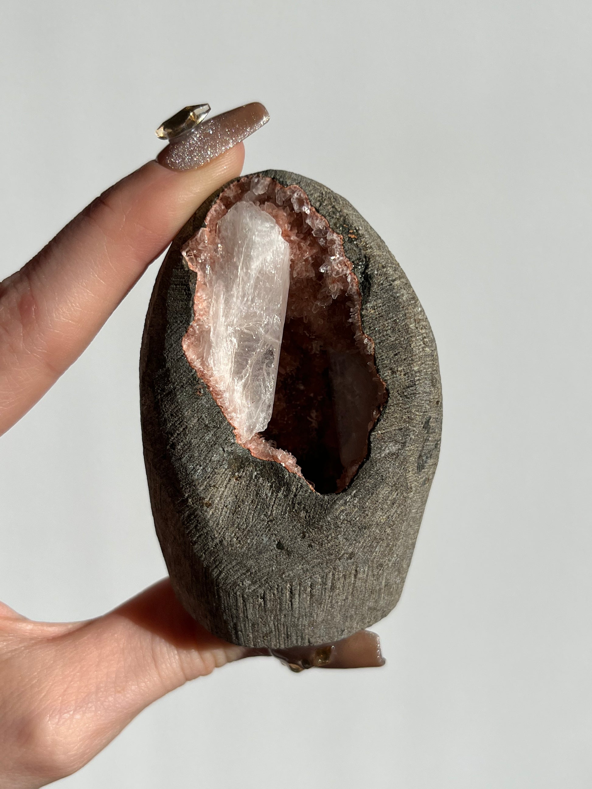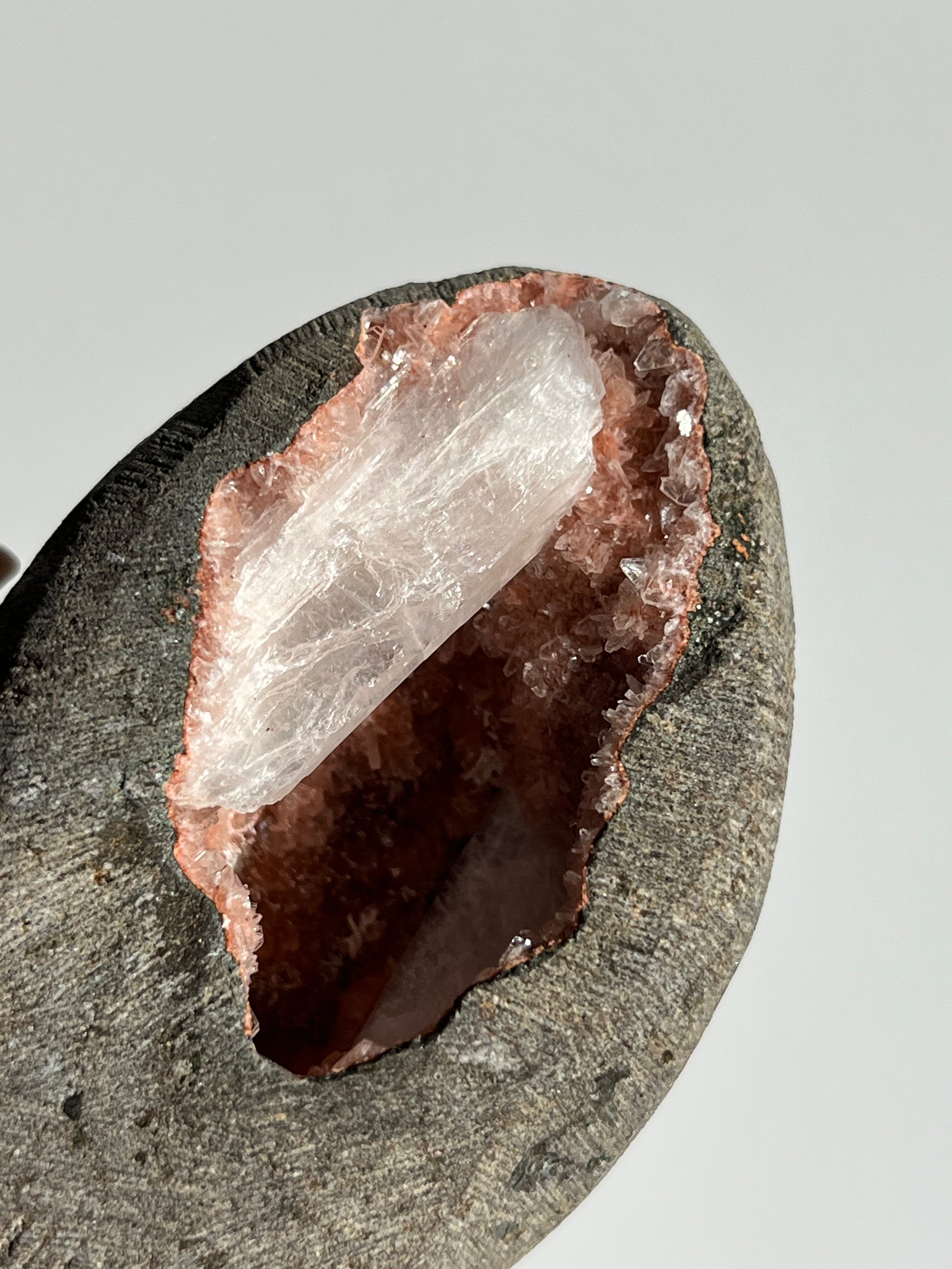 Red Heulandite Geode Cave in Basalt with Stilbite E