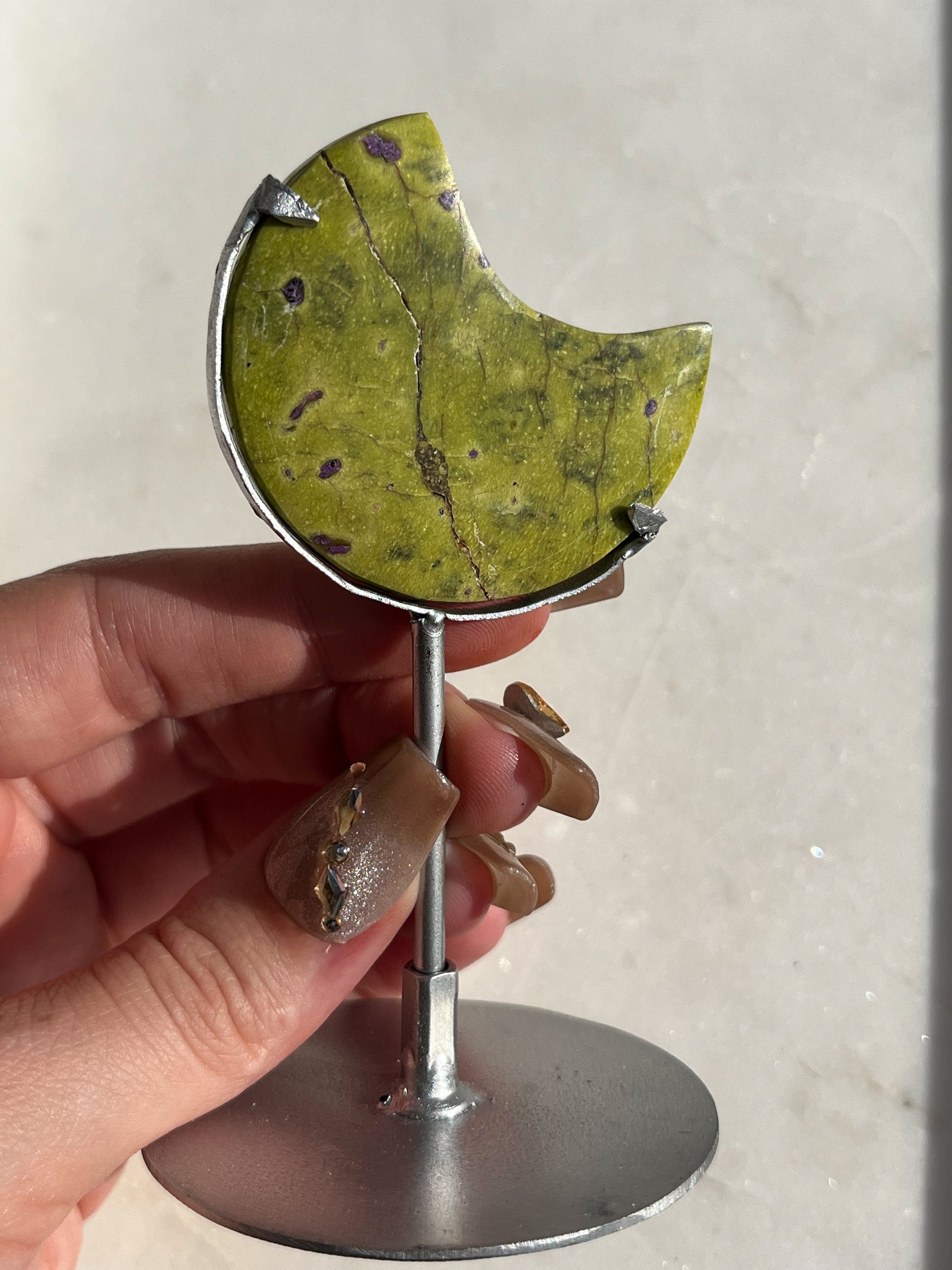 Atlantisite Moon Carving on Silver Stand (You Choose)