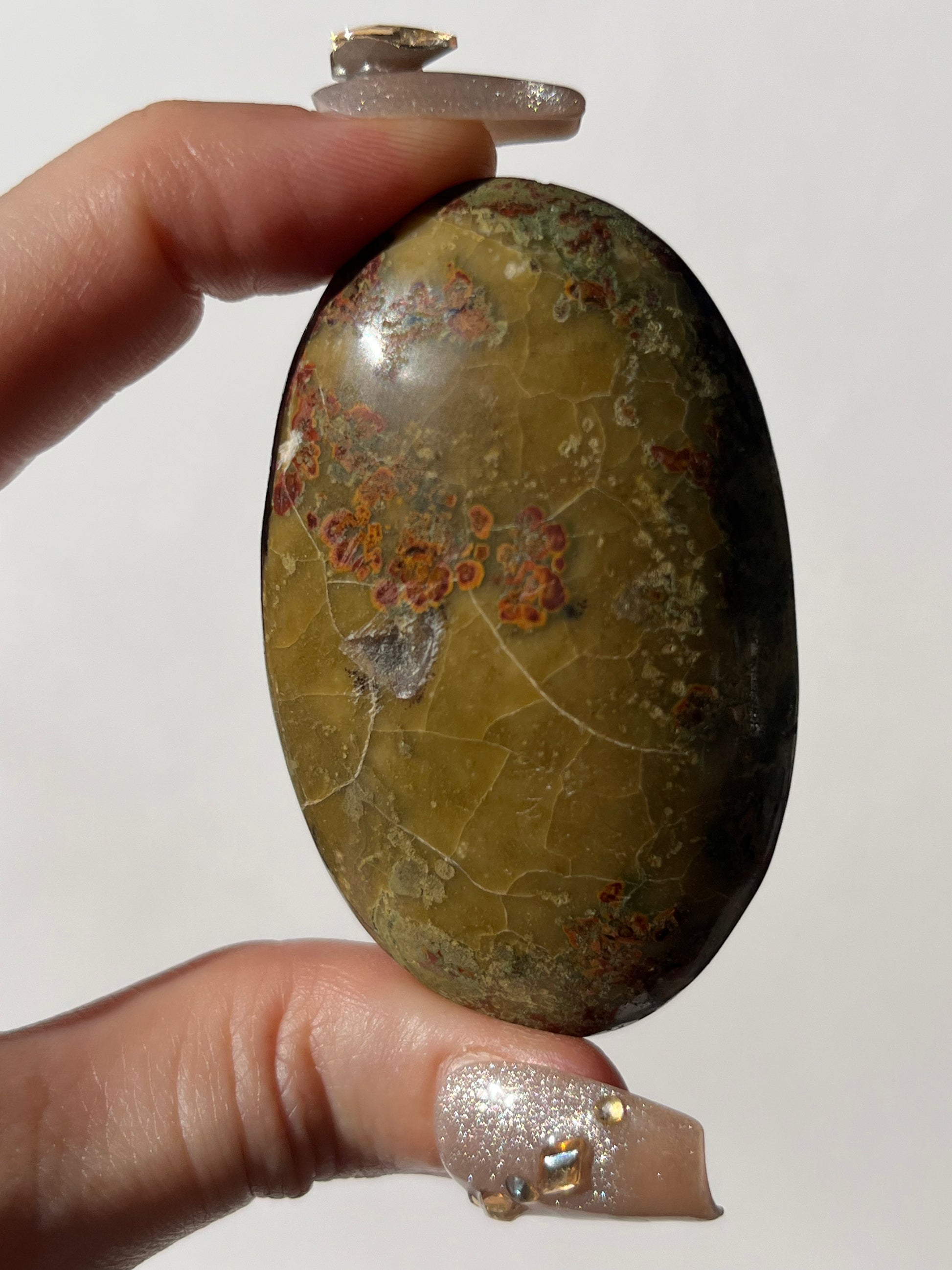 Named by Priestess Crystals, Batu Seniman is a distinctive Indonesian Picture Jasper prized for its ceramic-like tones, nature-inspired motifs, and antiquated surface character. Its aesthetic depth and cultural narrative make it a highly desirable piece for collectors drawn to artful, story-rich stones.