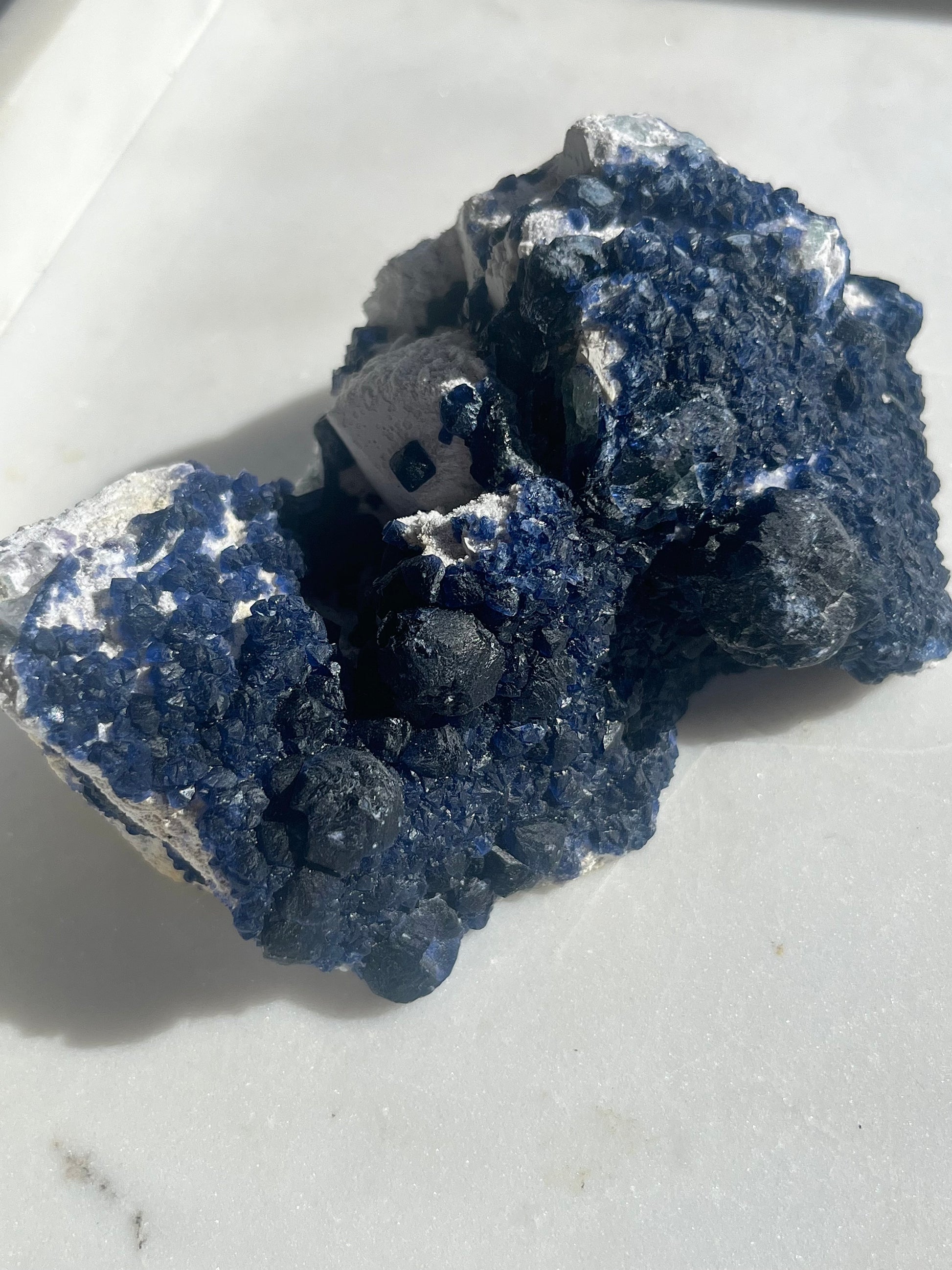 Blueberry Fluorite Specimen w/Candle Quartz #1