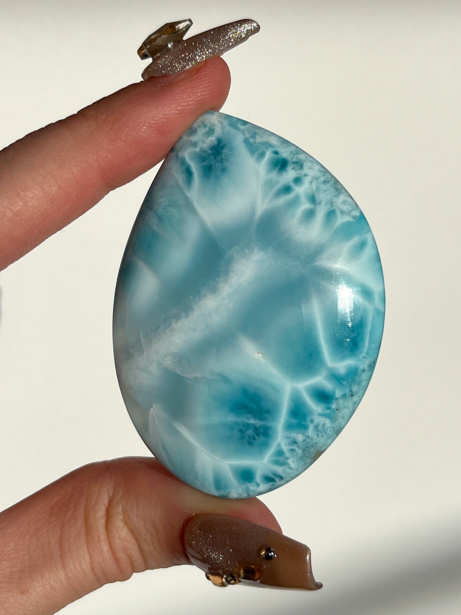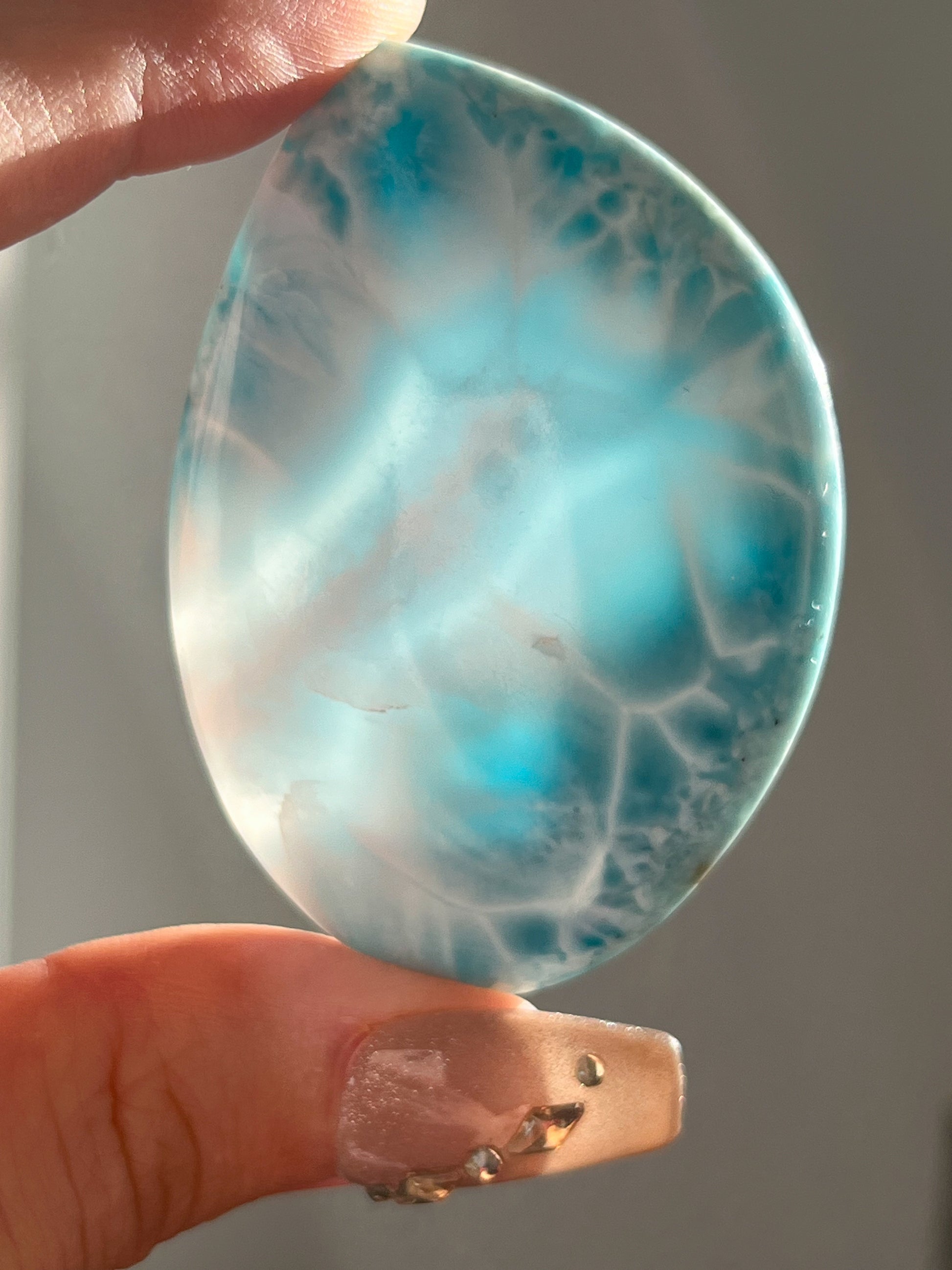 Larimar is a wonderful stone to open up the throat chakra and balance your emotional body.