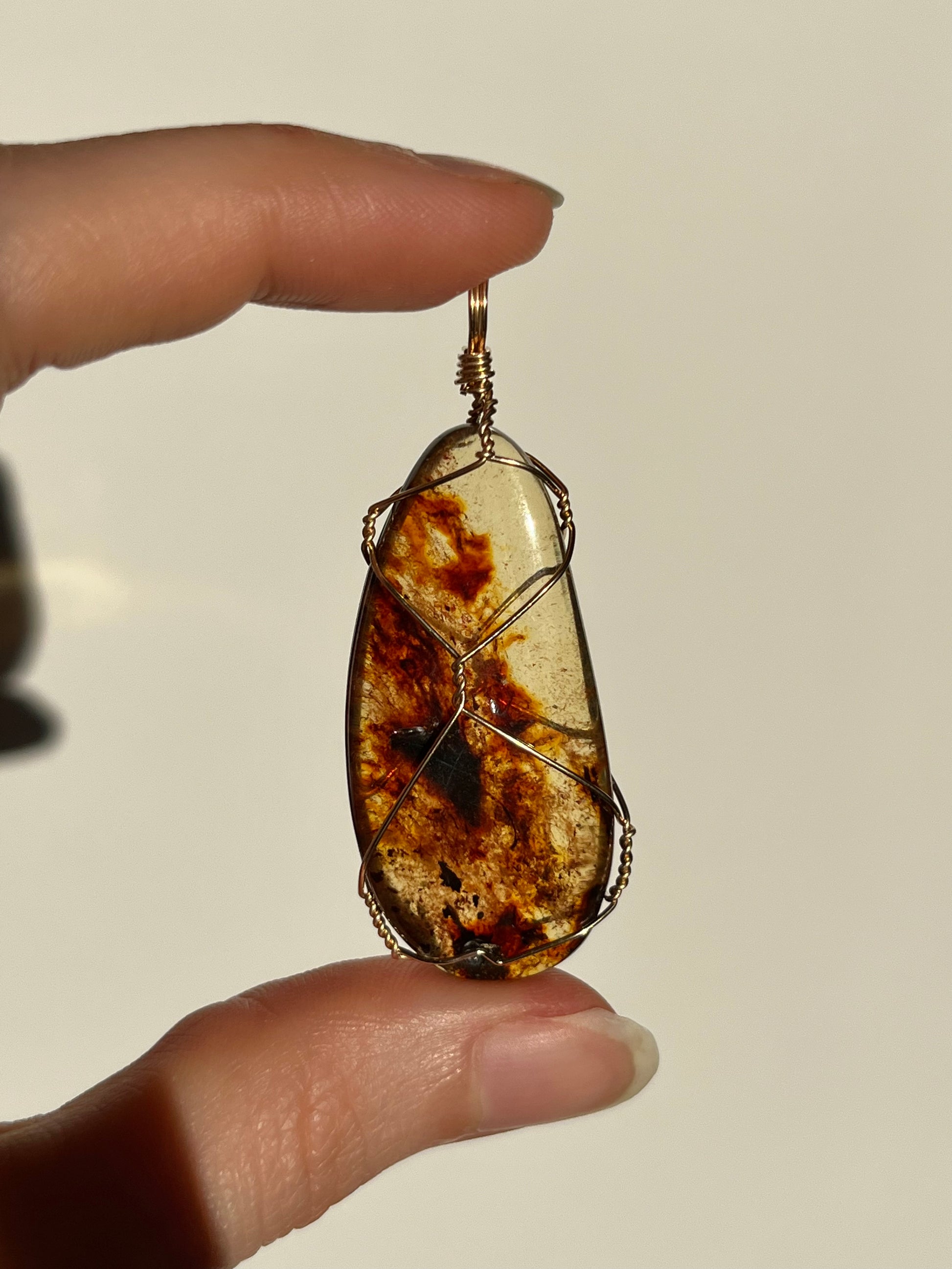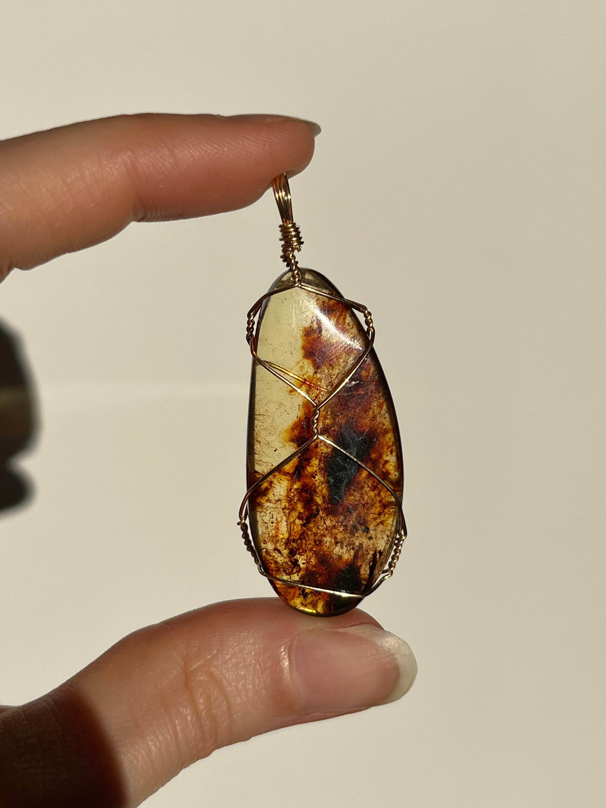 哥伦比亚琥珀绕丝吊坠(14kt 镀金)