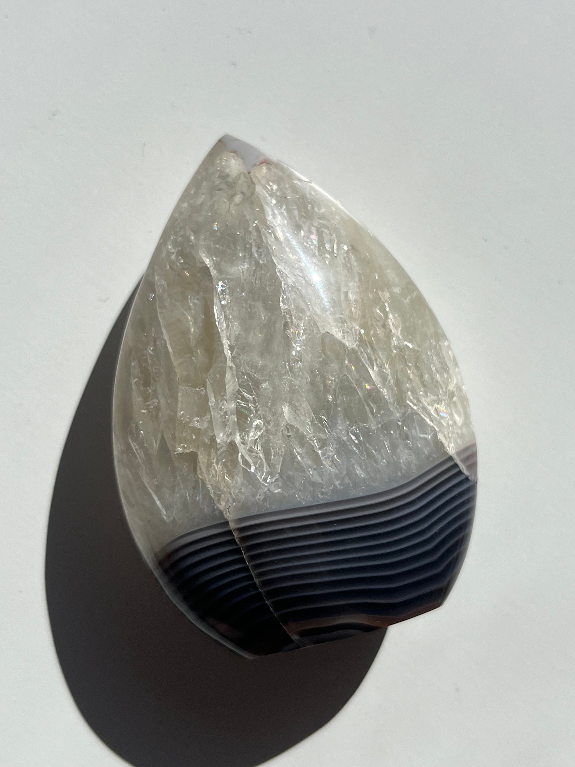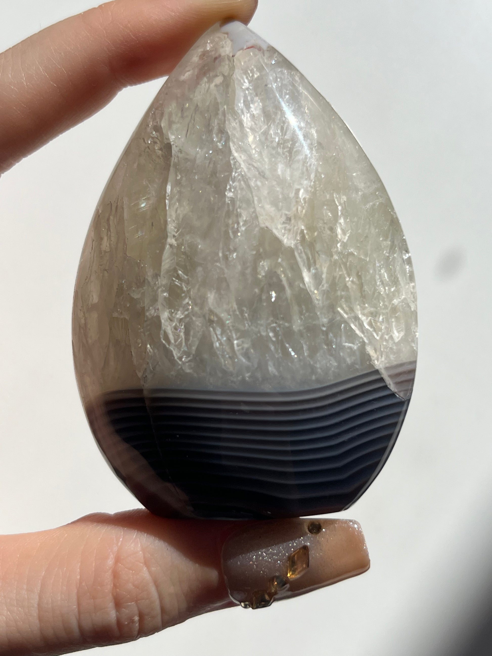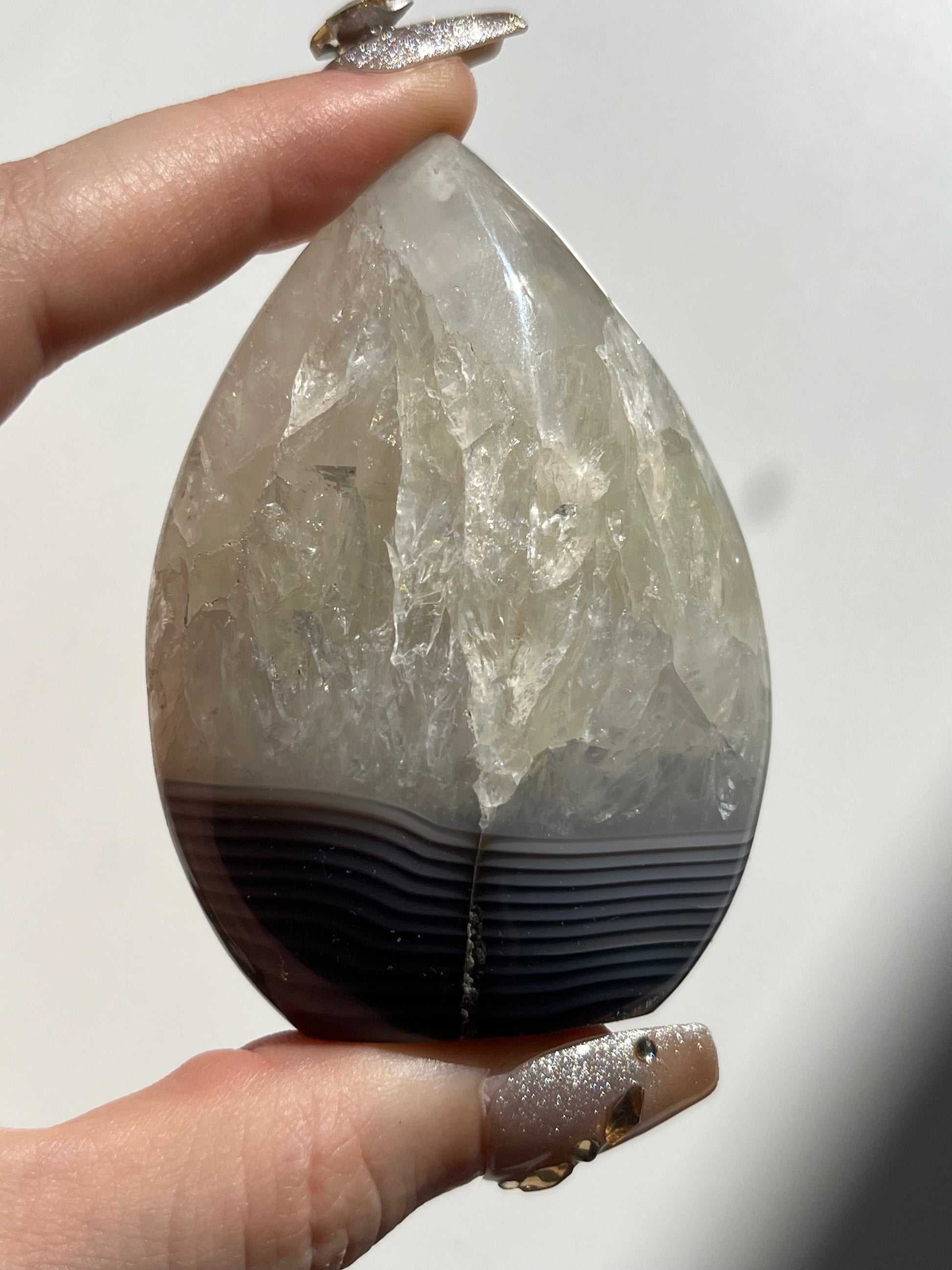 Danau or “Lake” Agate is an intensely soothing agate. With its light purple hues meeting the earthy moss, it is a reminder of how we are to lead our lives - in unison with our watery, spiritual soul & our earthy, physical life.