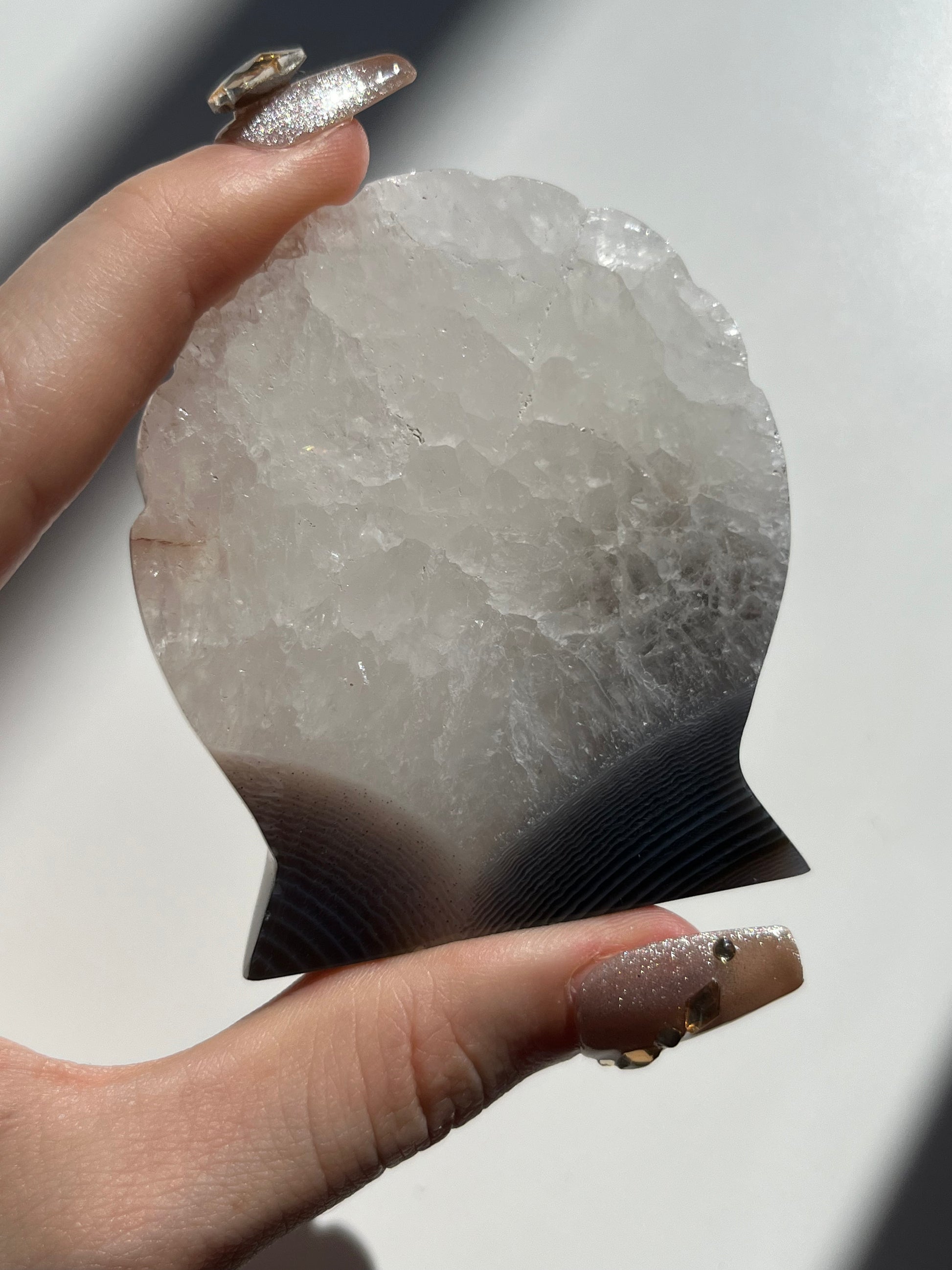 Danau or “Lake” Agate is an intensely soothing agate. With its light purple hues meeting the earthy moss, it is a reminder of how we are to lead our lives - in unison with our watery, spiritual soul & our earthy, physical life.