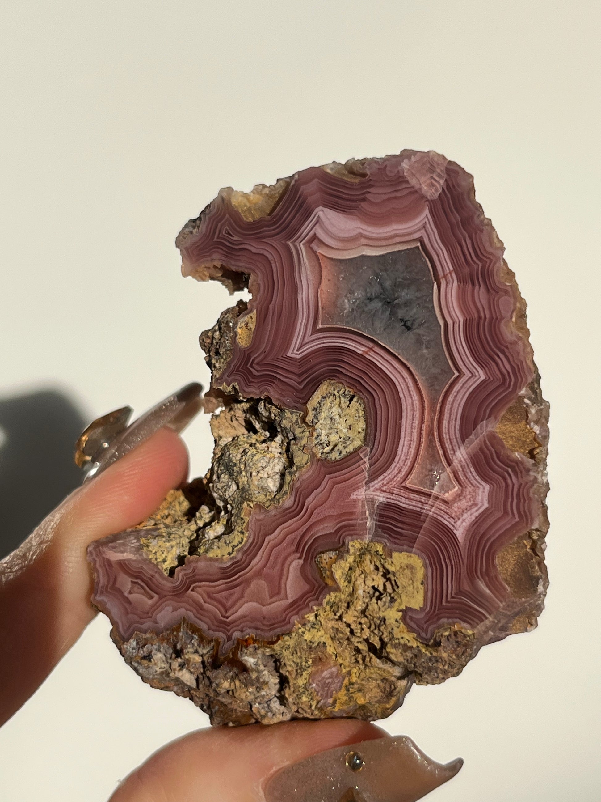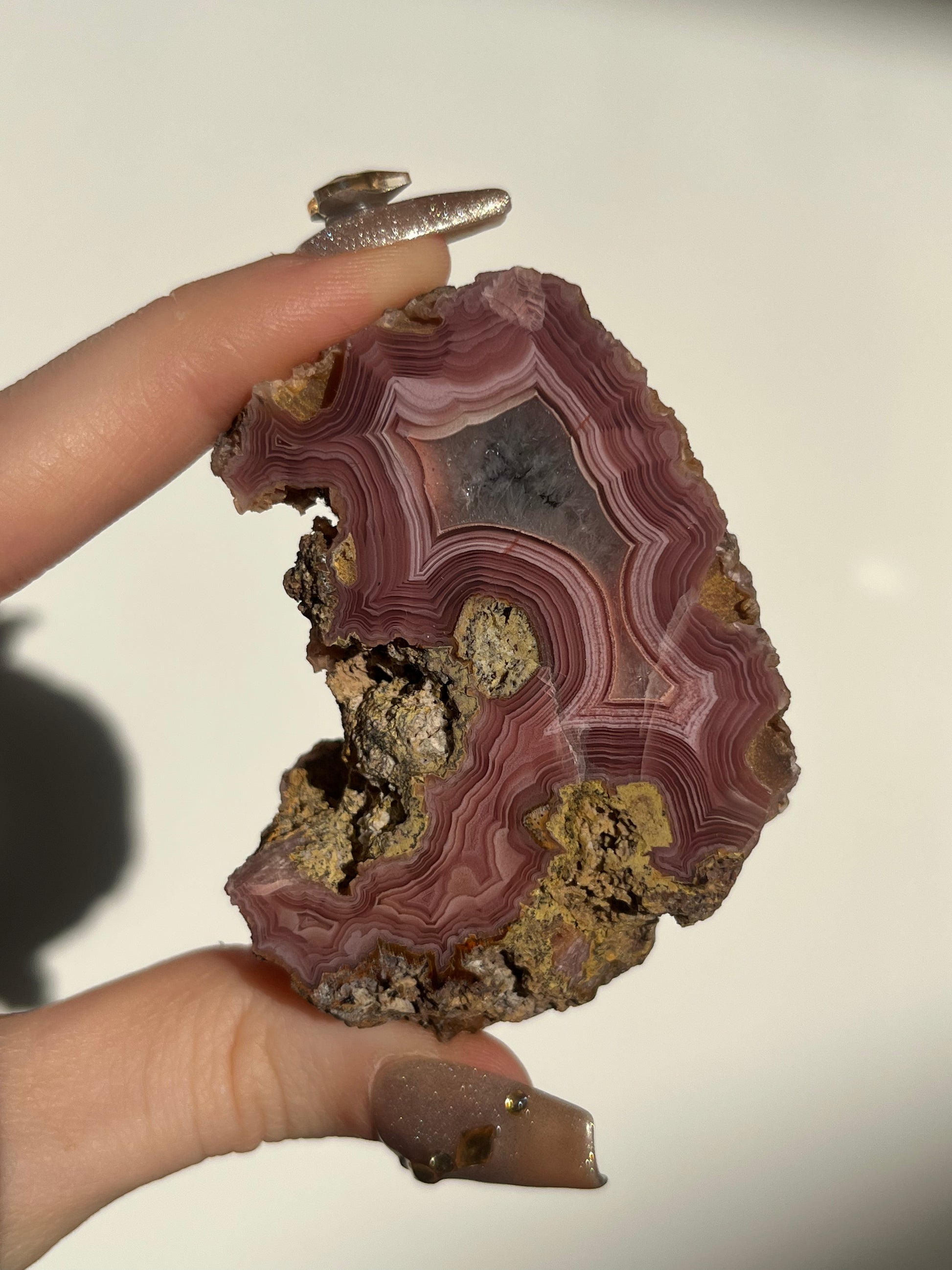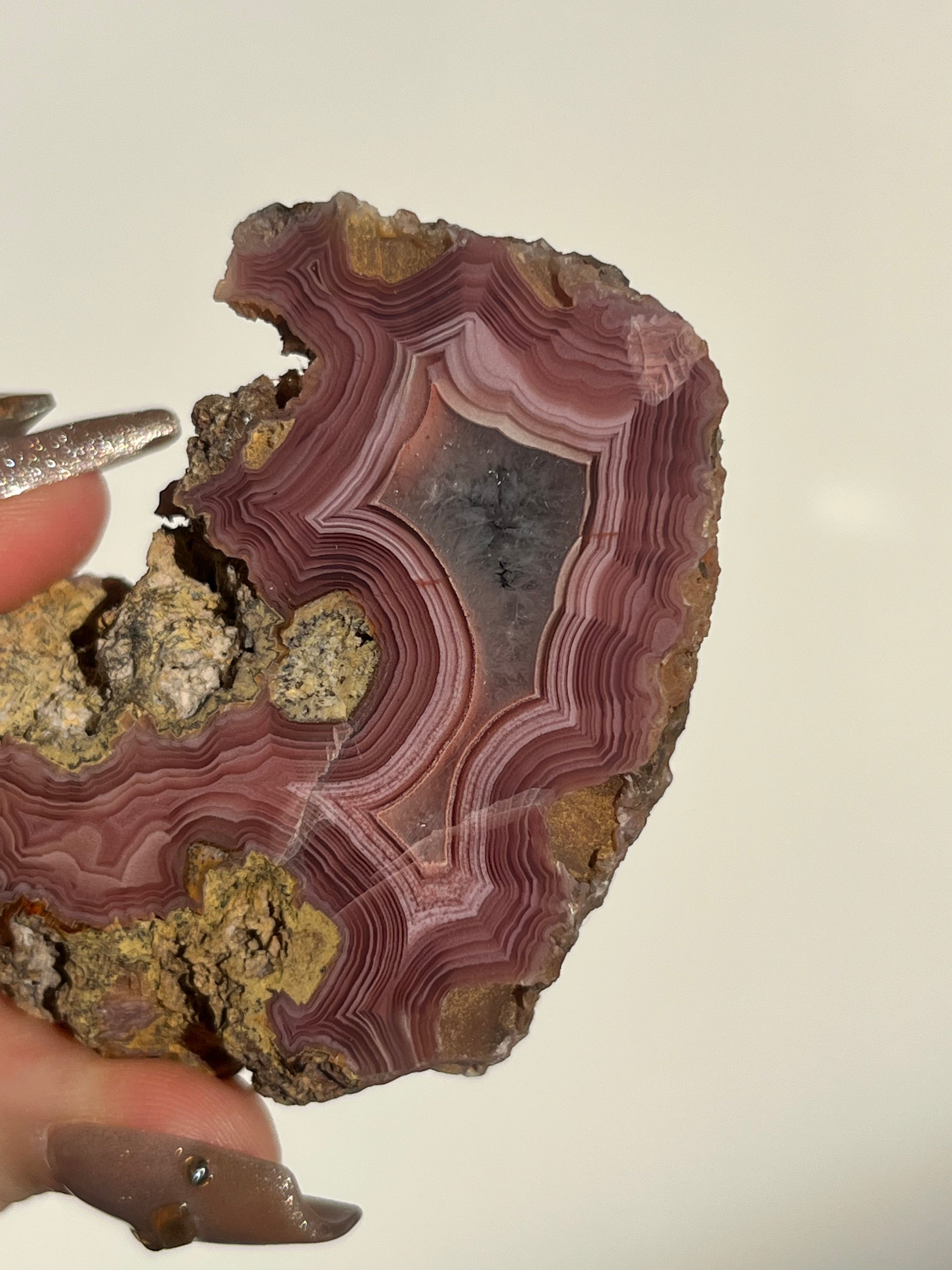 ‘Rosetta’ Dark Pink Laguna Agate Geode with Parallax
