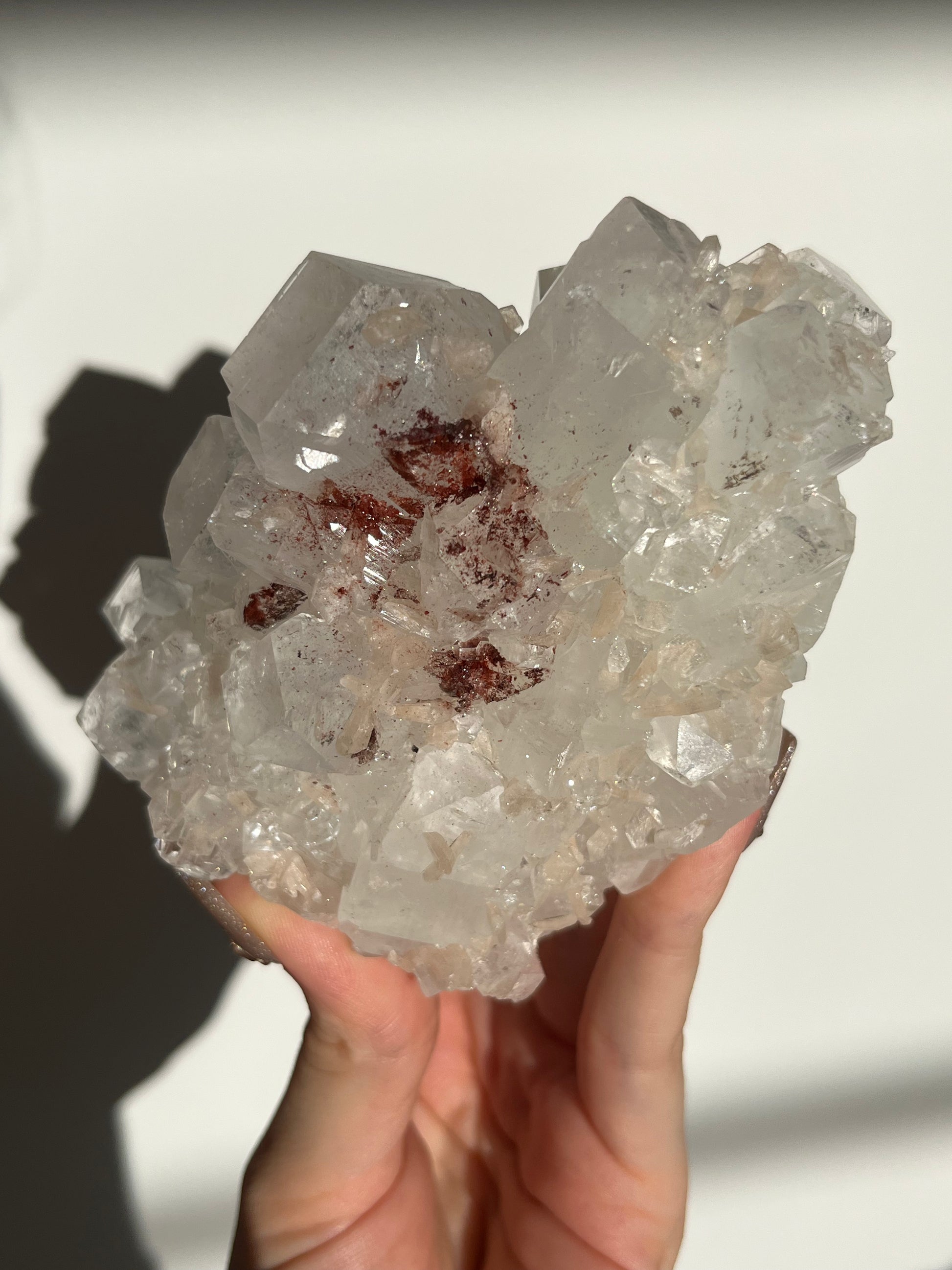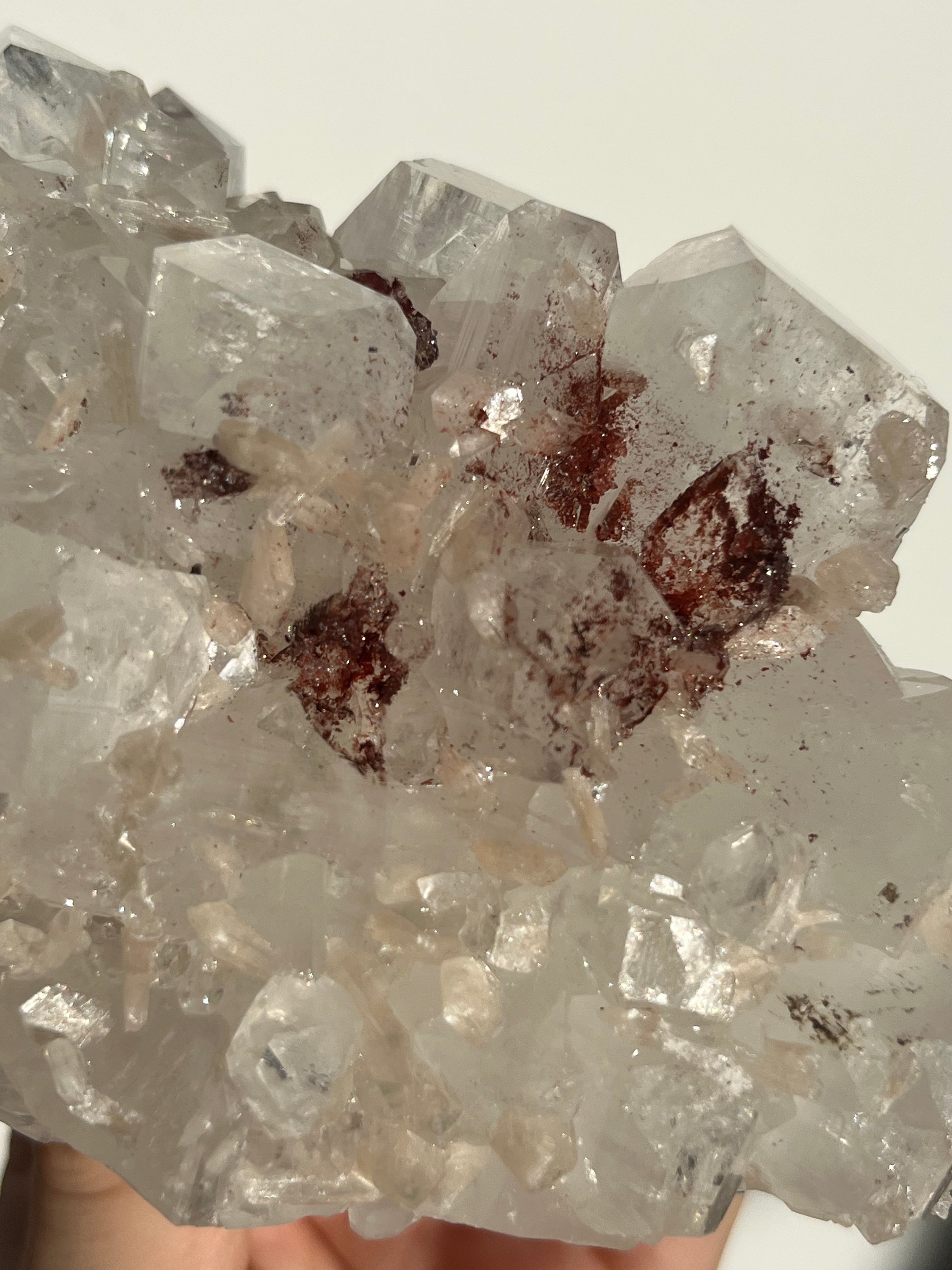 A Grade Diamond Apophyllite with Druzy Red Hematite & Stilbite Cluster #C