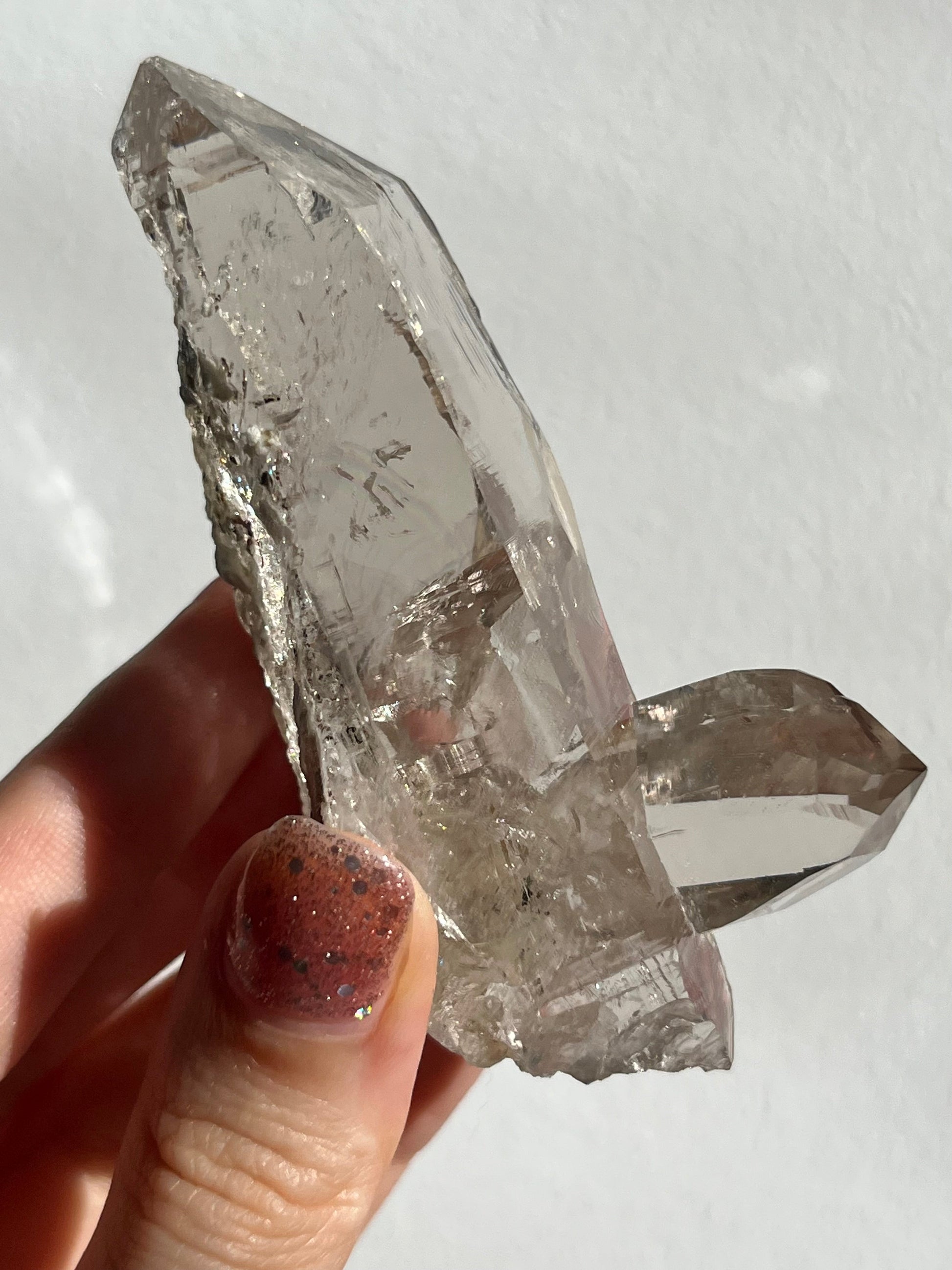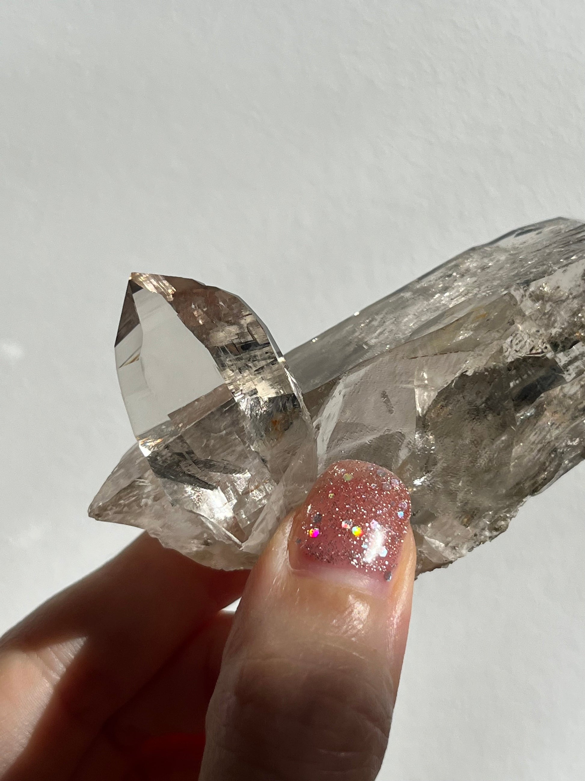 Water Clear Elestial Himalayan Smokey Quartz Cluster w/Siderite, Albite & Spessartine Garnet Inclusion #13 (Perfectly Imperfect)