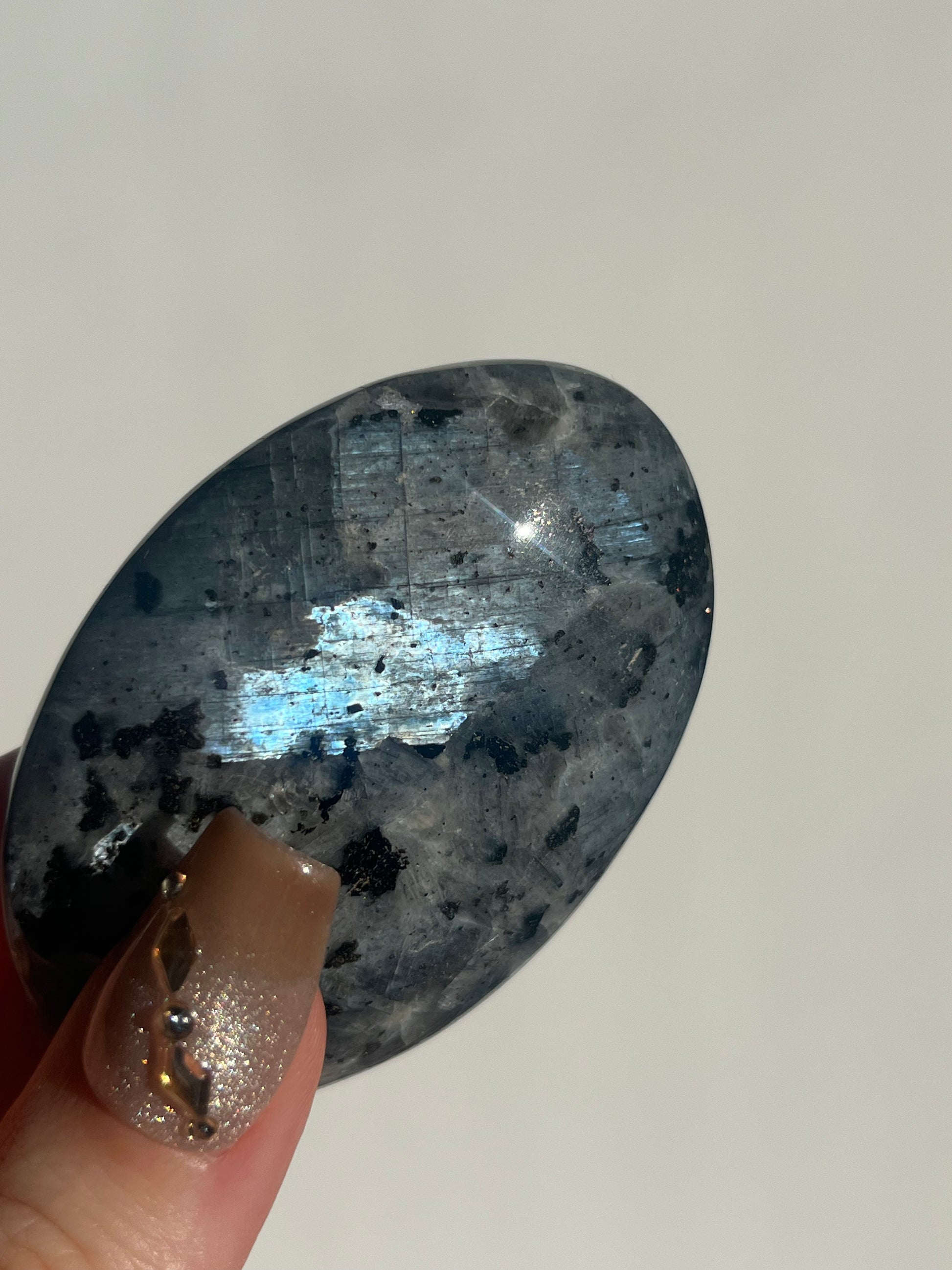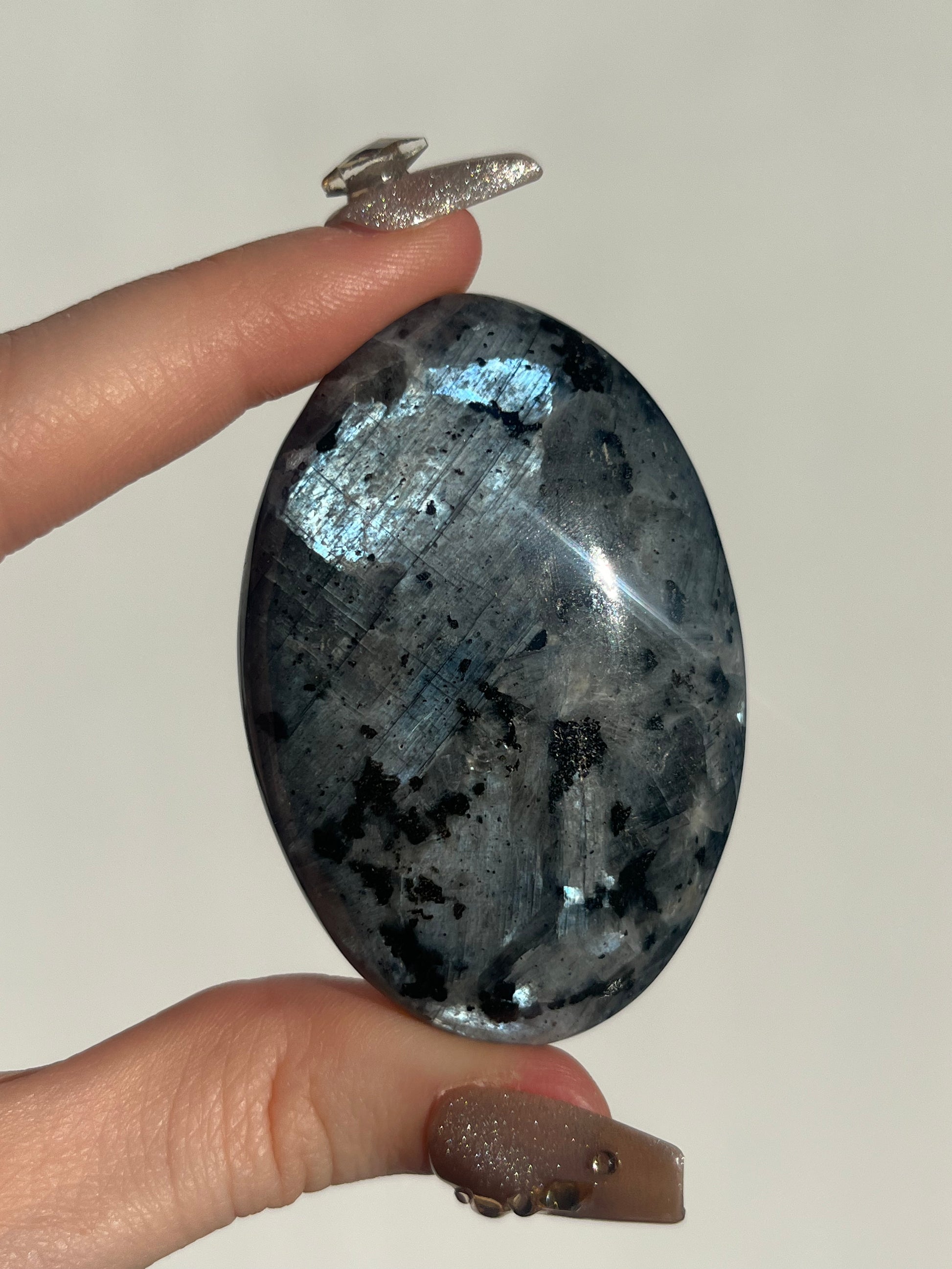 Larvikite is used metaphysically to open one up to new experiences in life & take bold chances. In tough situations, Larvikite promotes clarity & decisive action all the whole anchoring you to the grounding energy of the Earth.