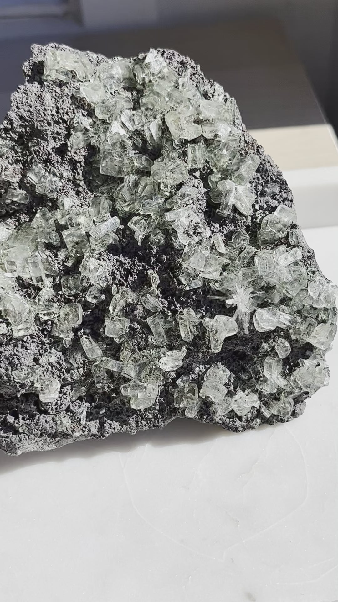 单独的绿色鱼鱼眼石并不是一种稀有的晶体。然而,当与冰骨石喷雾剂结合使用时,我们正在处理一些极其罕见的标本。印度鱼眼石矿中的此类标本数量有限,这使得这种晶体组合不仅是一个罕见的发现,而且是一个非常令人兴奋的发现。