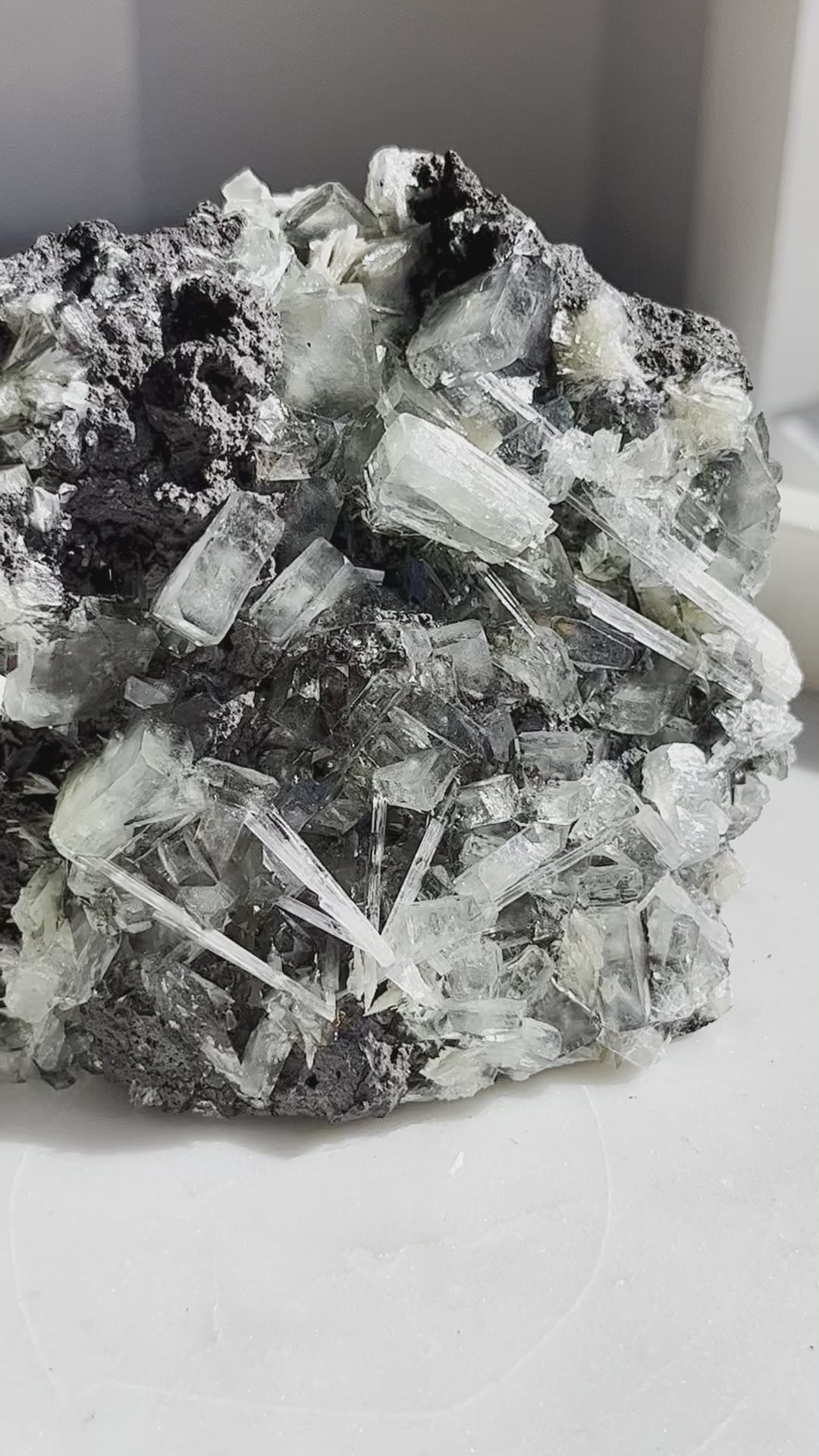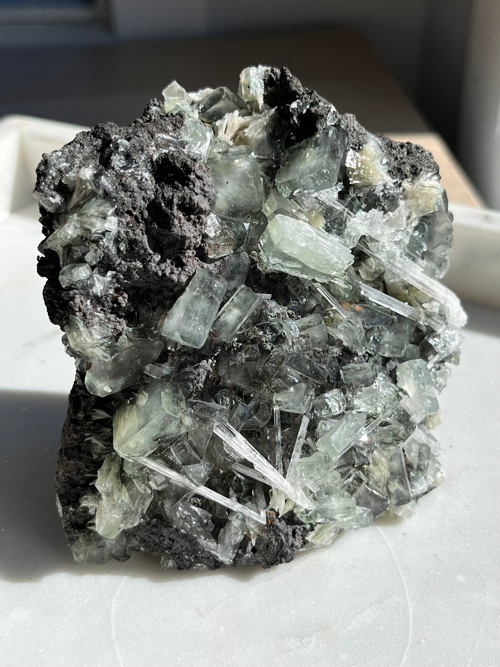 单独的绿色鱼鱼眼石并不是一种稀有的晶体。然而,当与冰骨石喷雾剂结合使用时,我们正在处理一些极其罕见的标本。印度鱼眼石矿中的此类标本数量有限,这使得这种晶体组合不仅是一个罕见的发现,而且是一个非常令人兴奋的发现。