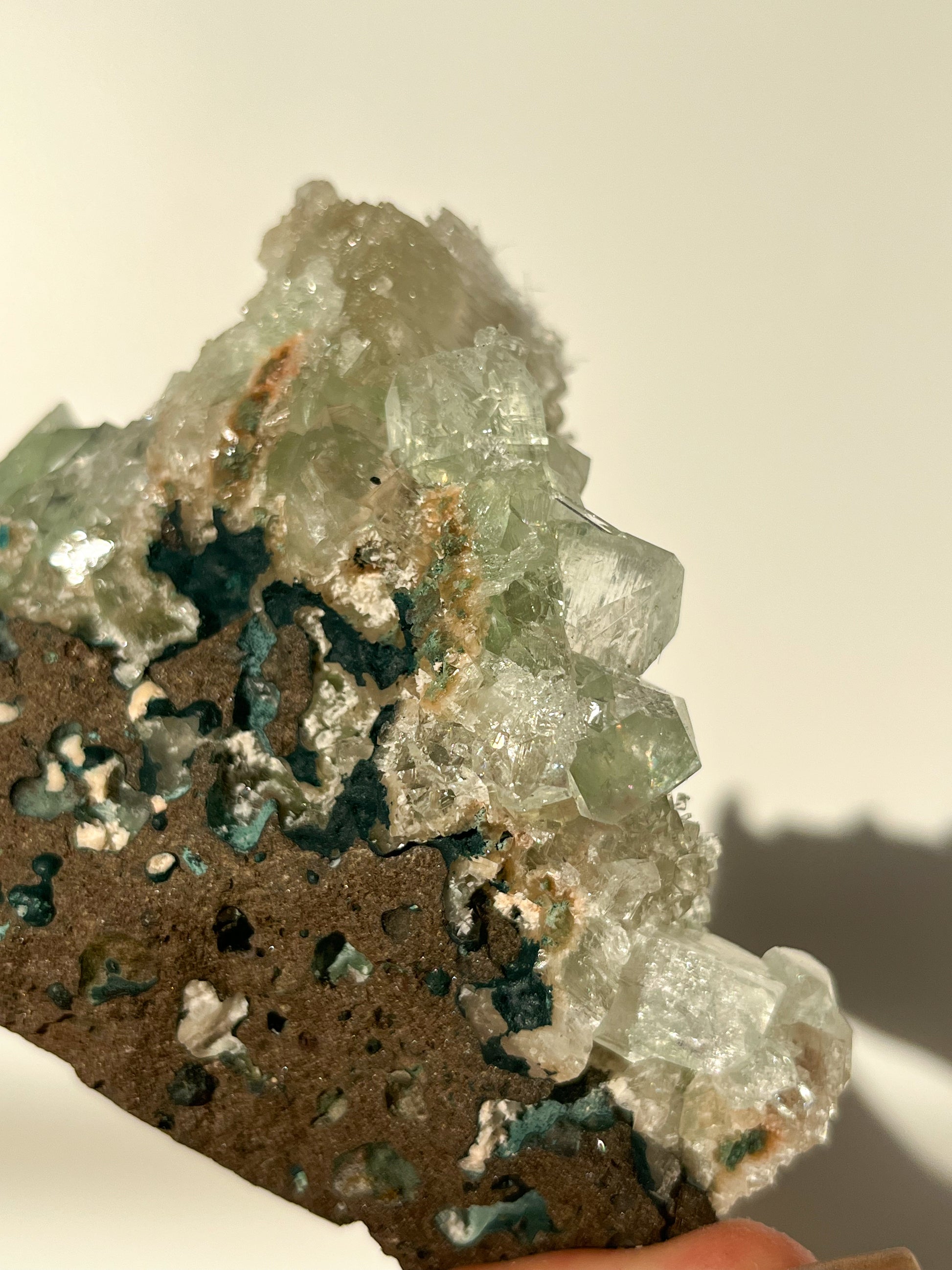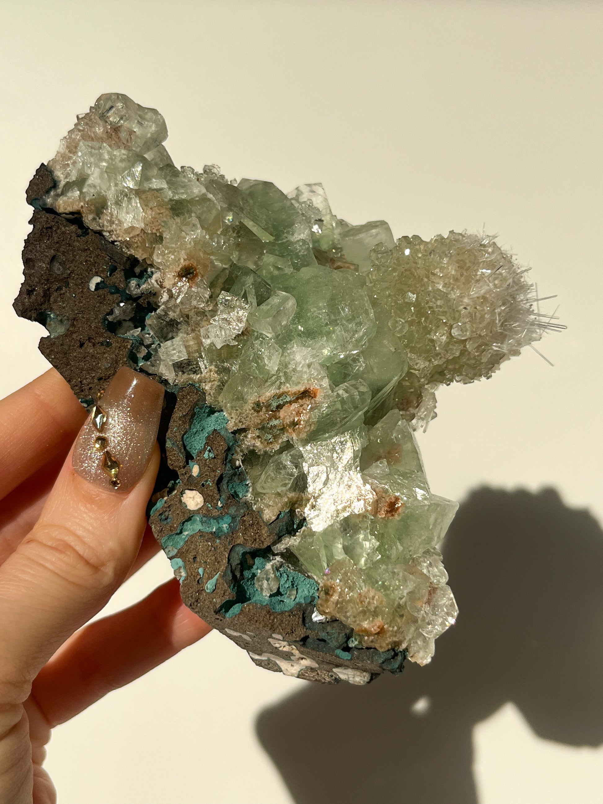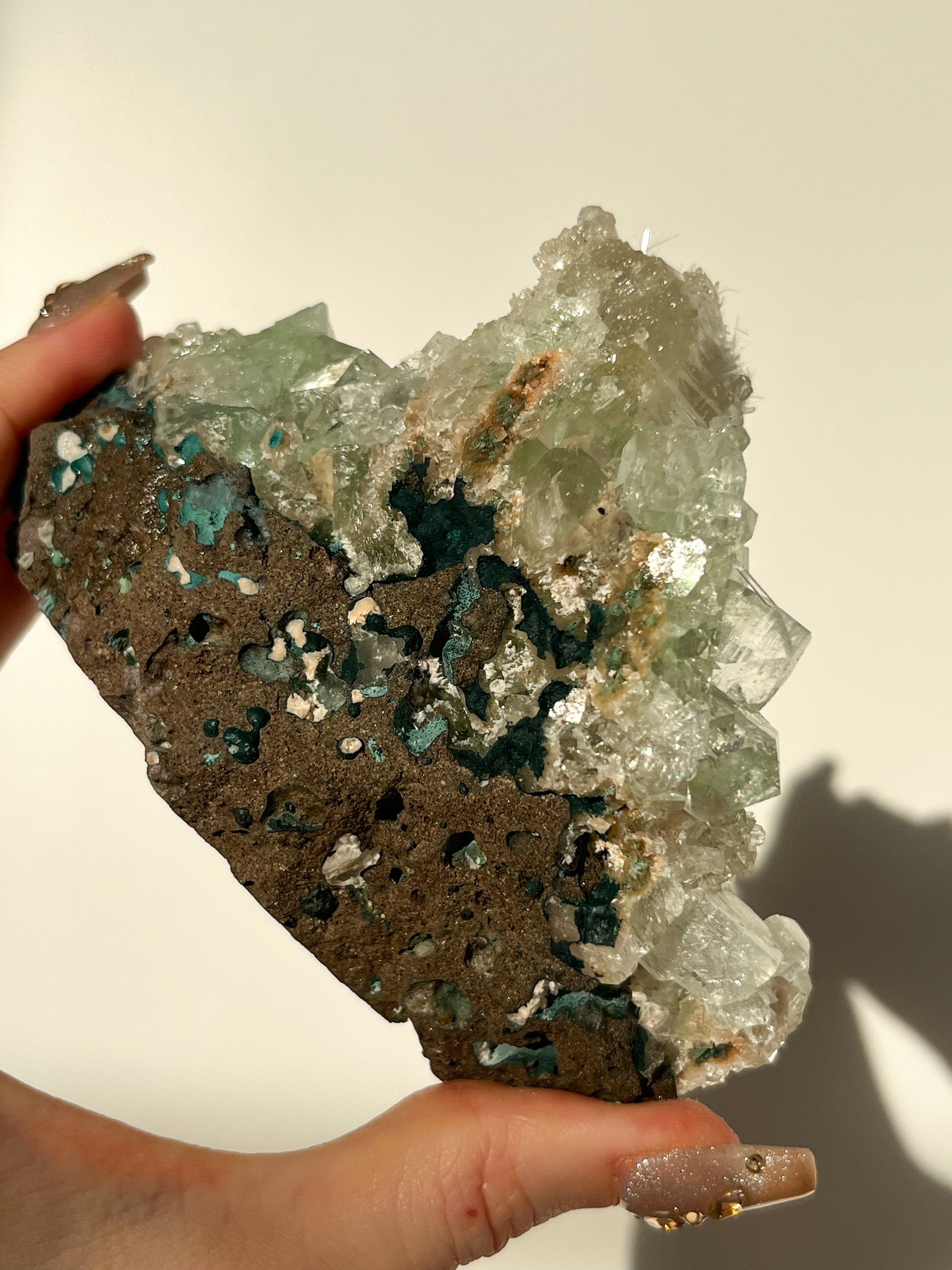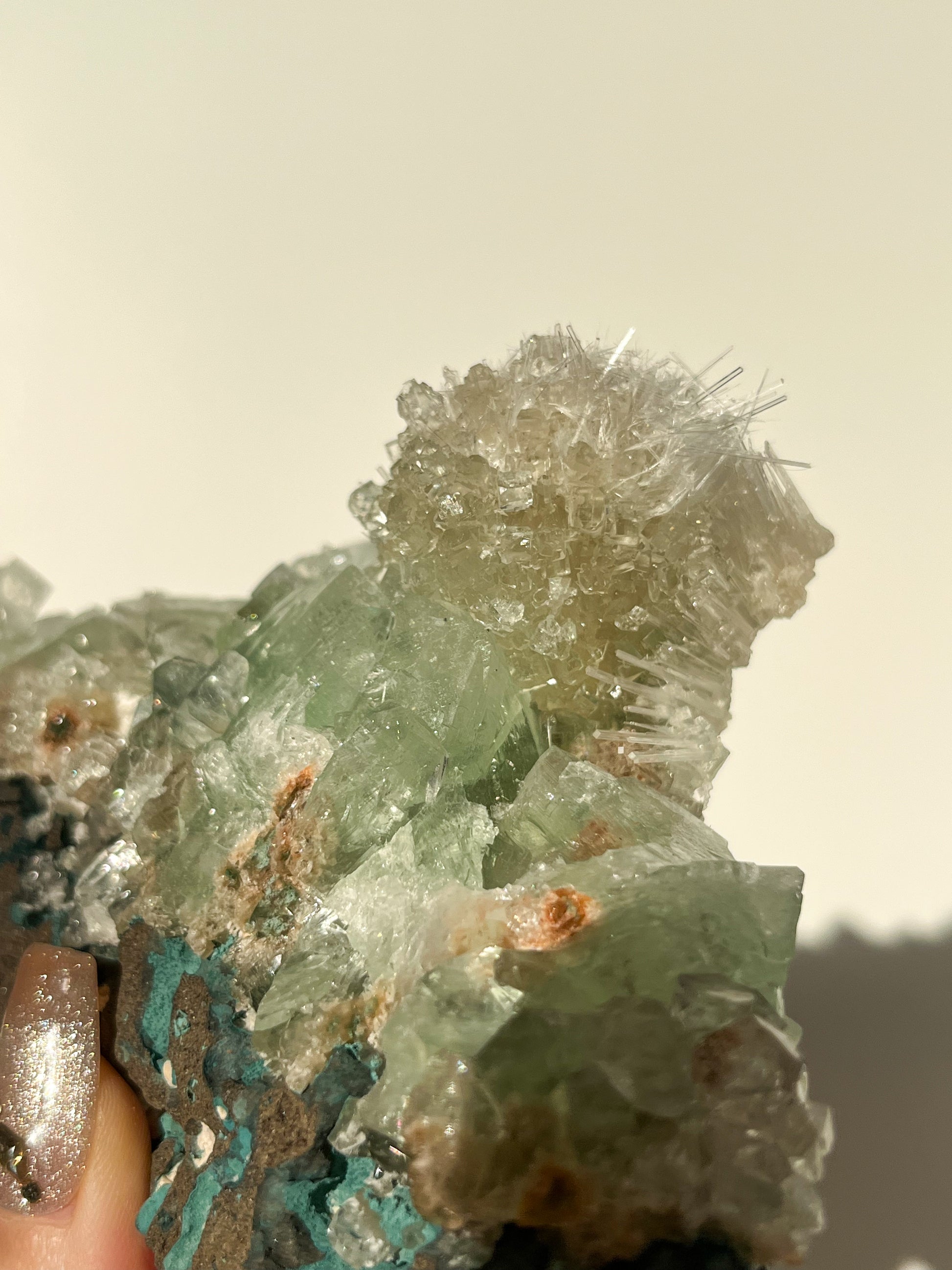 This find of Green Apophyllite, Thomsonite, Mesolite & Calcite specimens are a recent find in 2024 from the Apophyllite mines of India. This latest mineral discovery is from only one find. Making this desirable crystal combination not only rare, but a very exciting one.