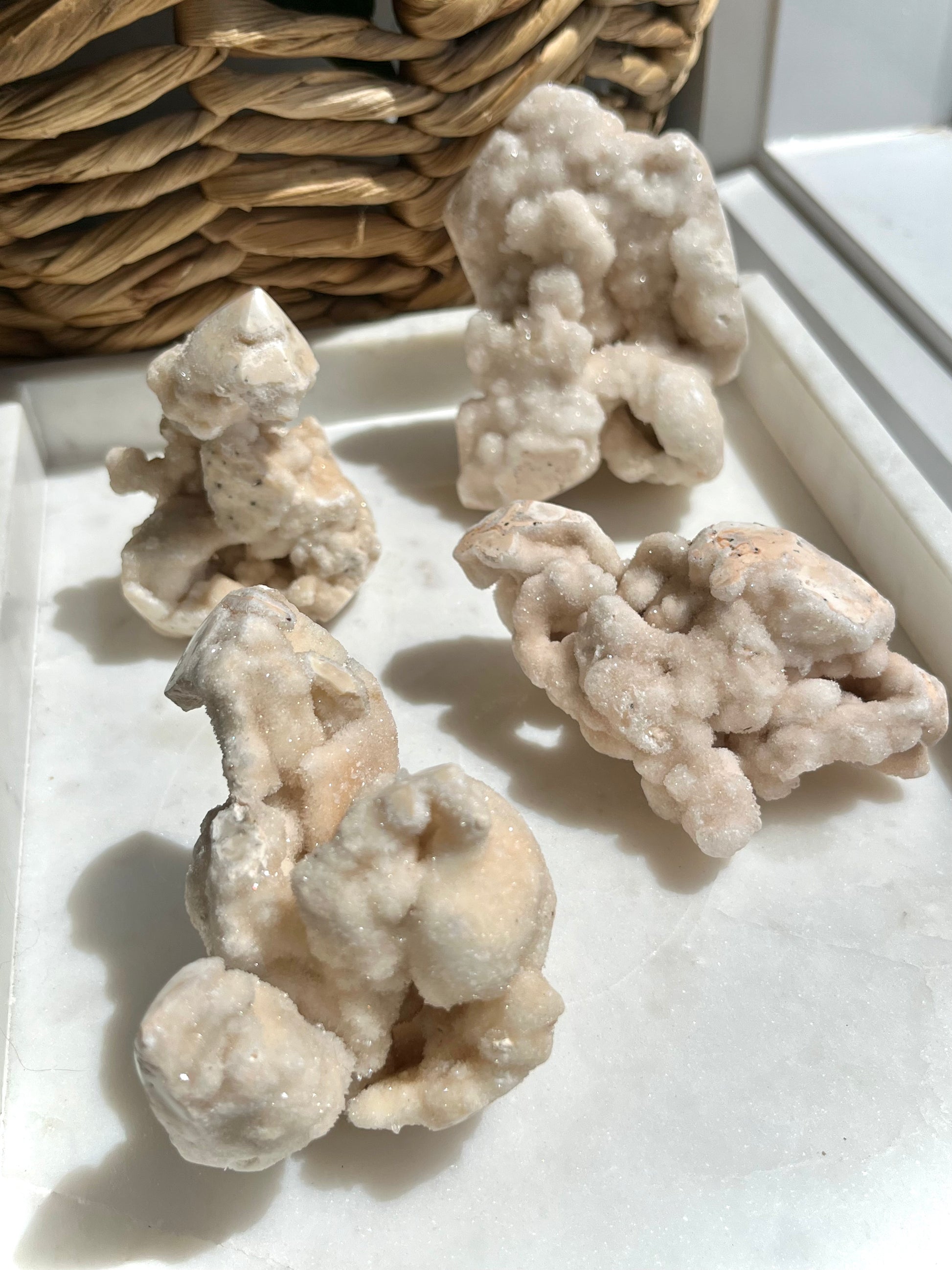 玉髓簇上的印尼德鲁兹石英(直觉选择)
