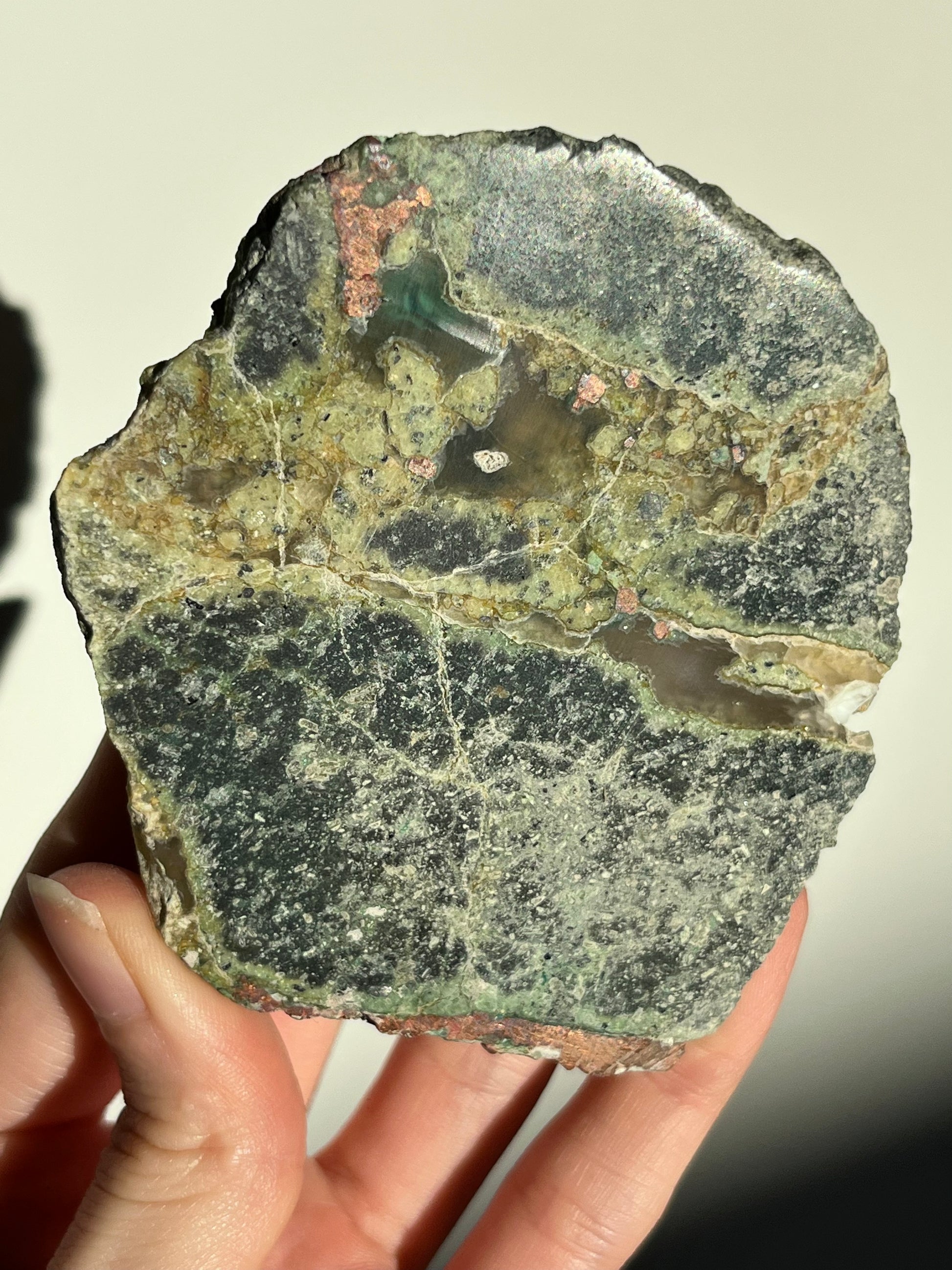 玉髓标本 #26 中的天然铜和硅孔雀石