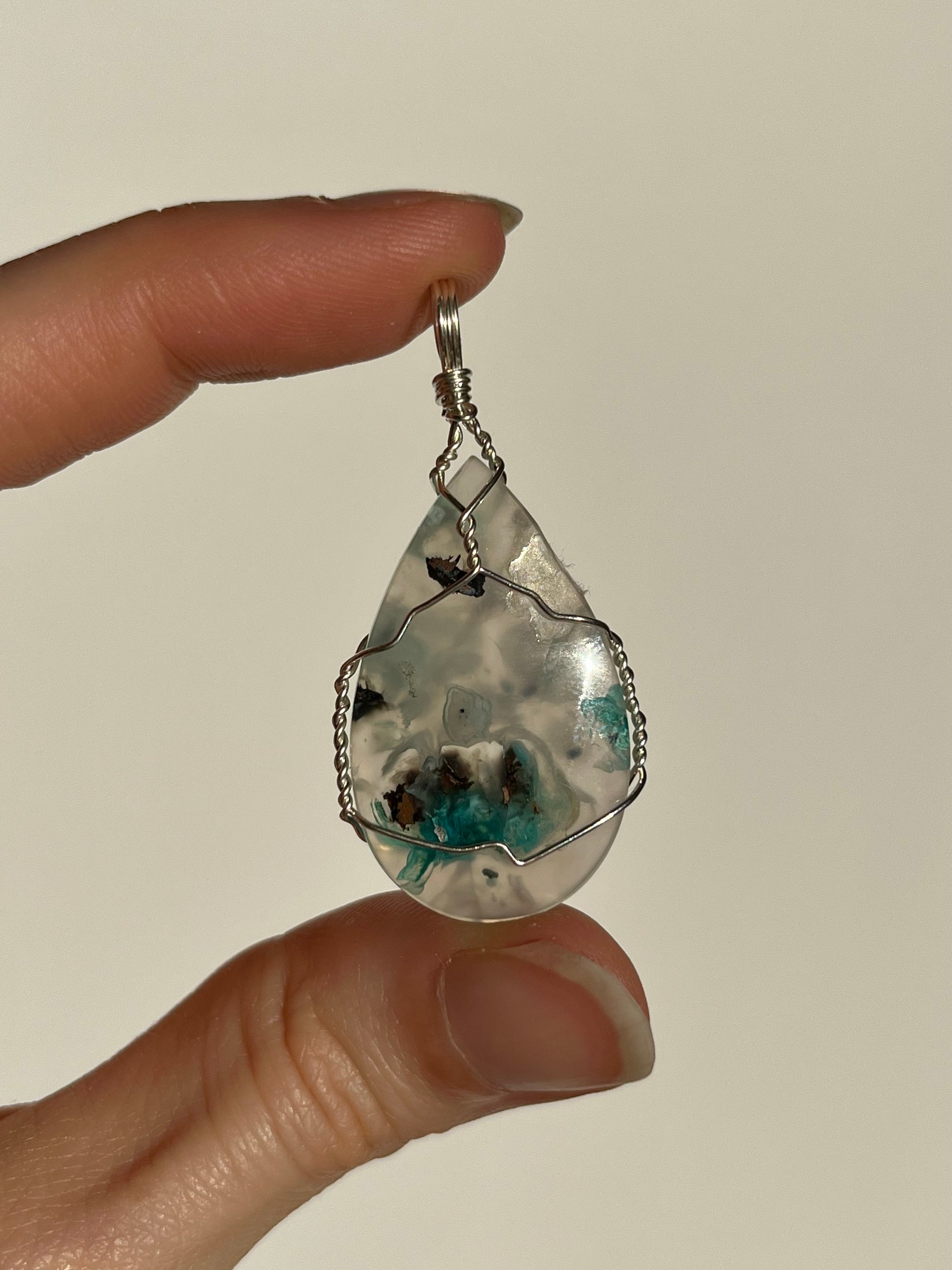 天然铜和硅孔雀石玉髓绕线吊坠(925 纯银)