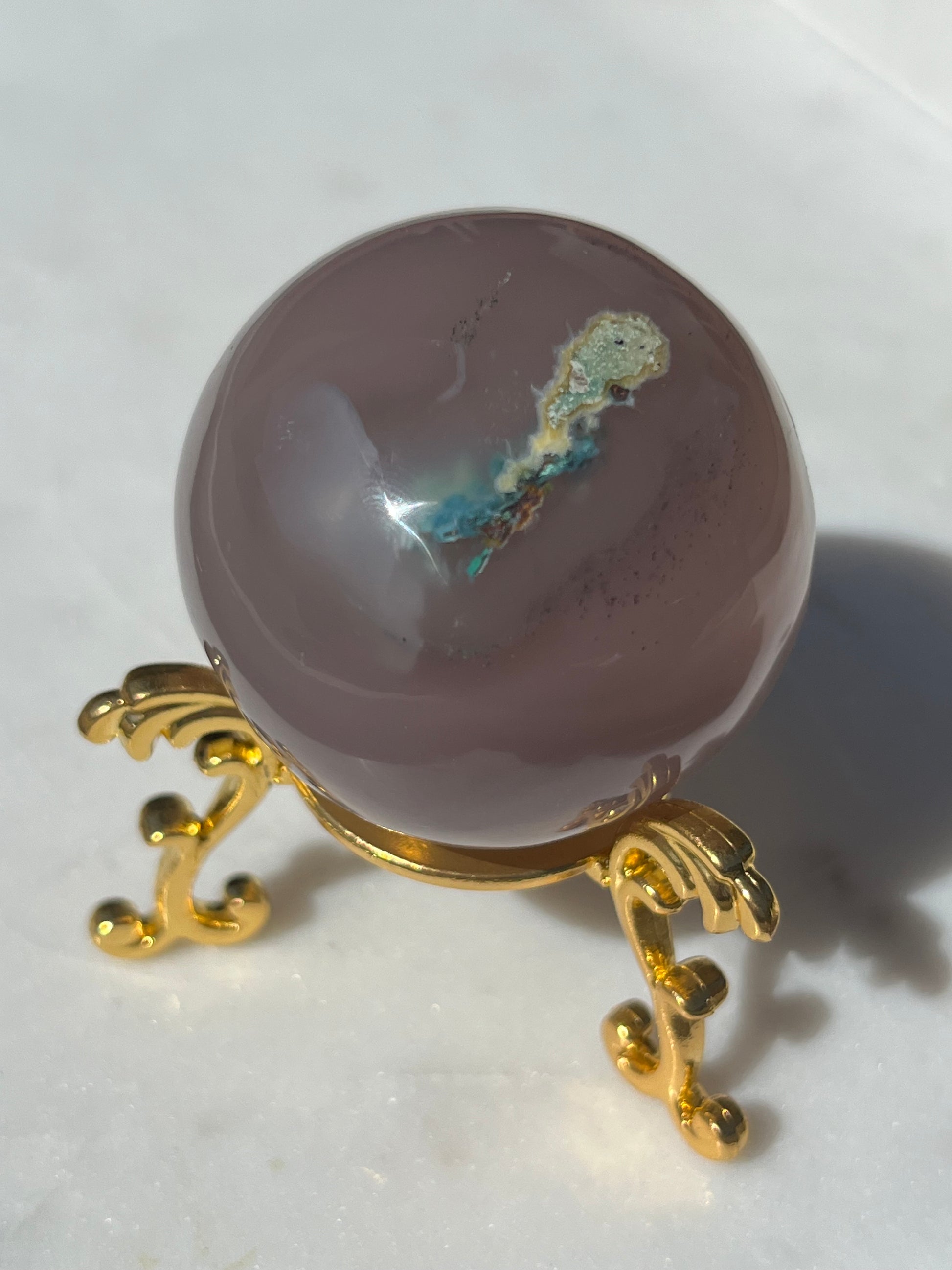 One-of-a-Kind Native Copper & Chrysocolla in Purple Chalcedony Sphere & Stand