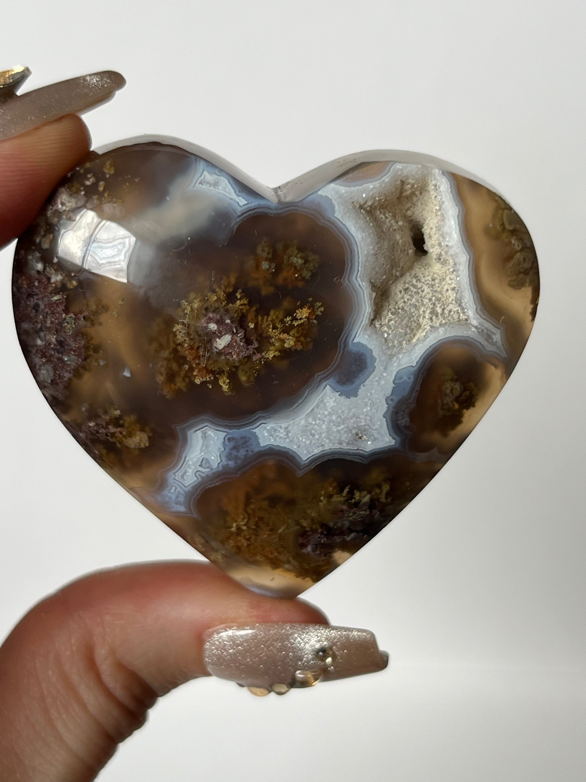 Druzy Nebula Agate Flatback Heart with Blue Chalcedony I
