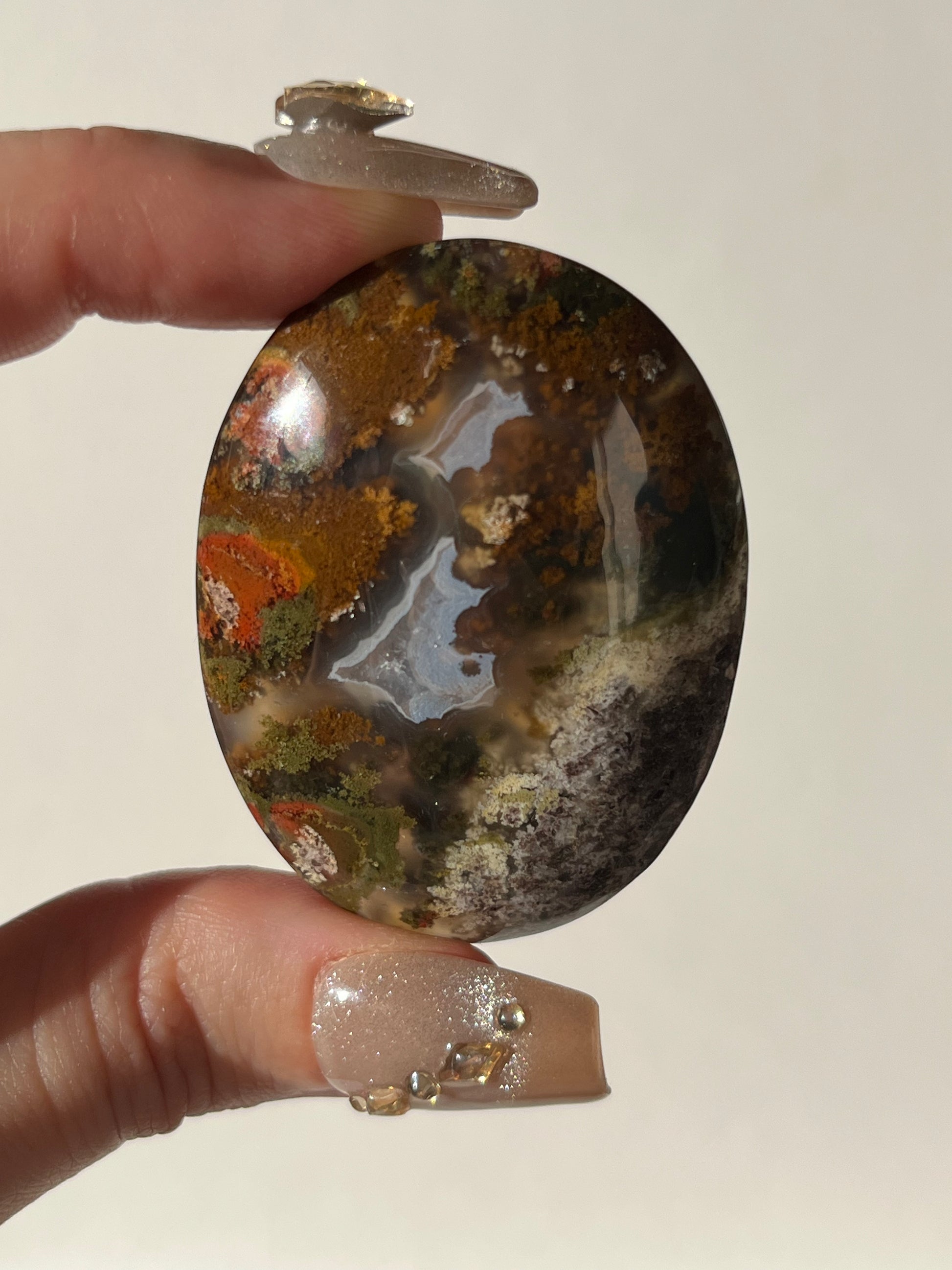 Nebula Agate Palmstone with Red Moss Inclusions L