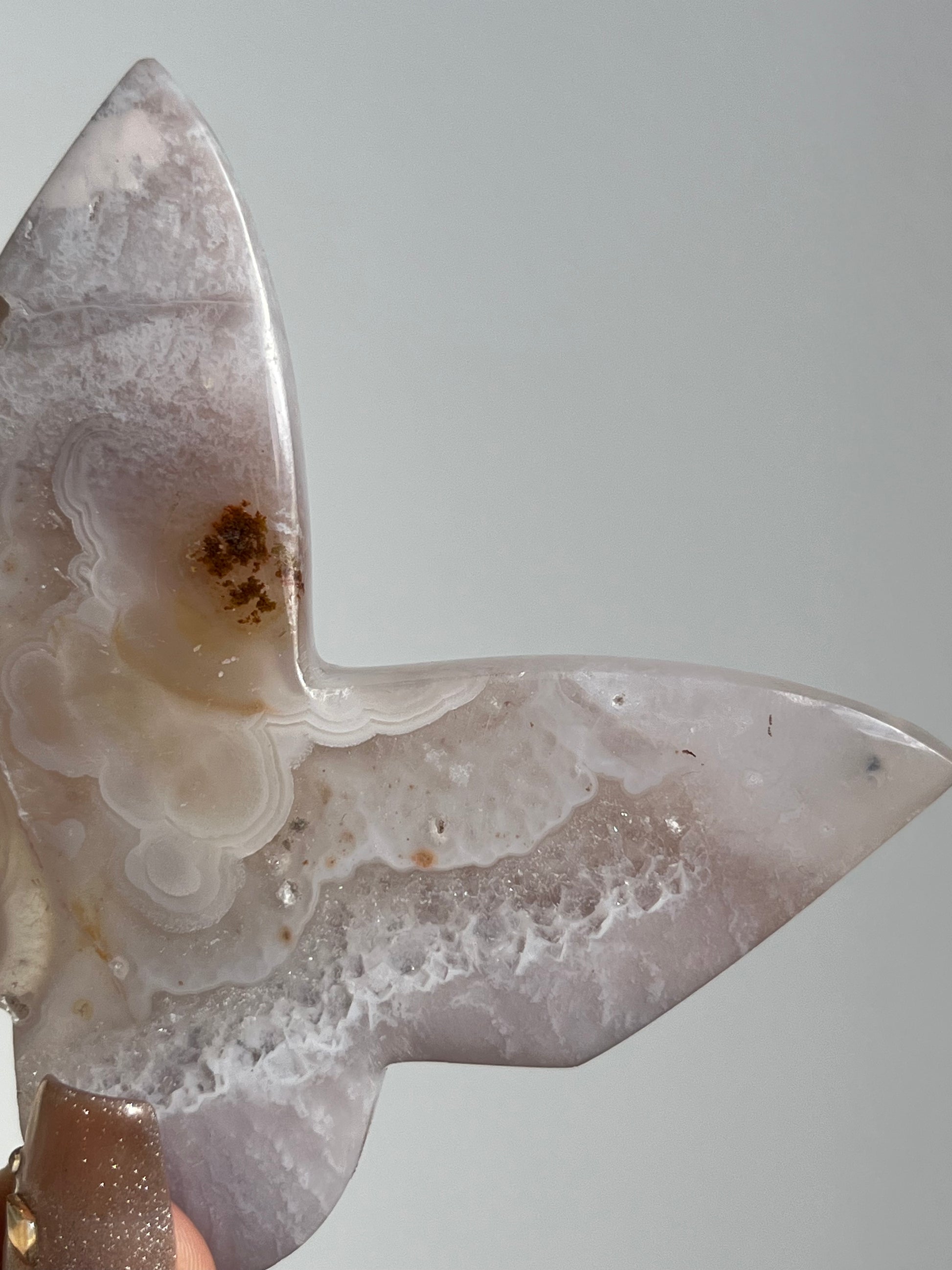 Nebula Agate with Scenic Moss 2D Butterfly Carving