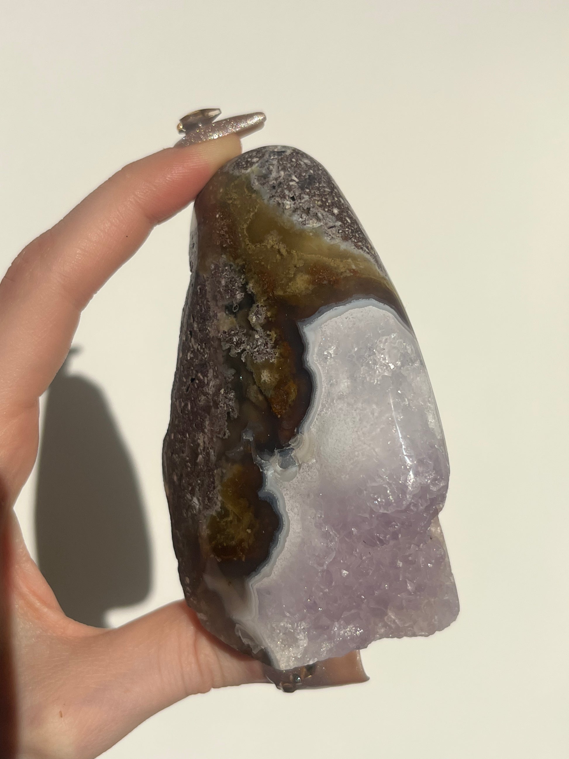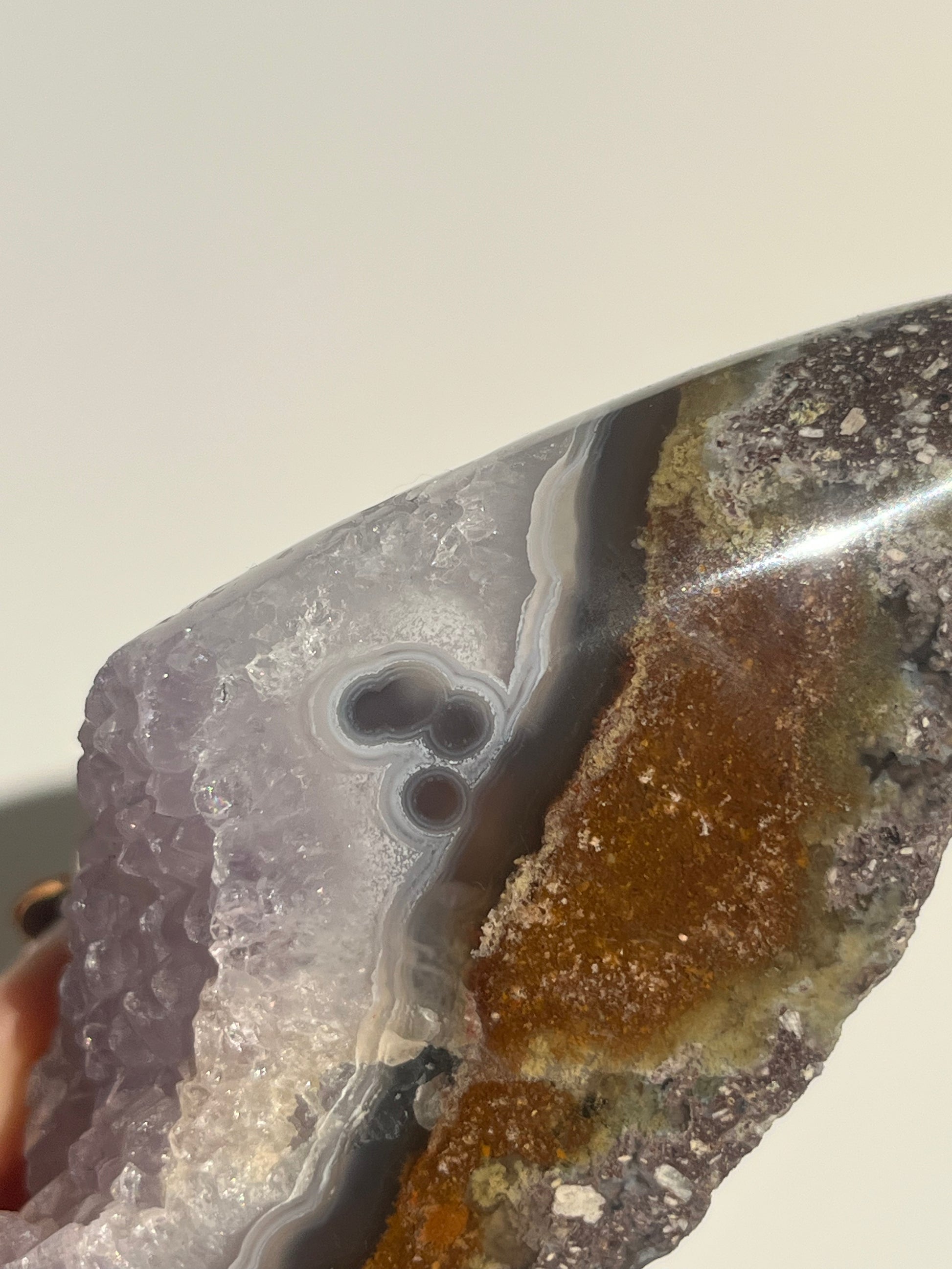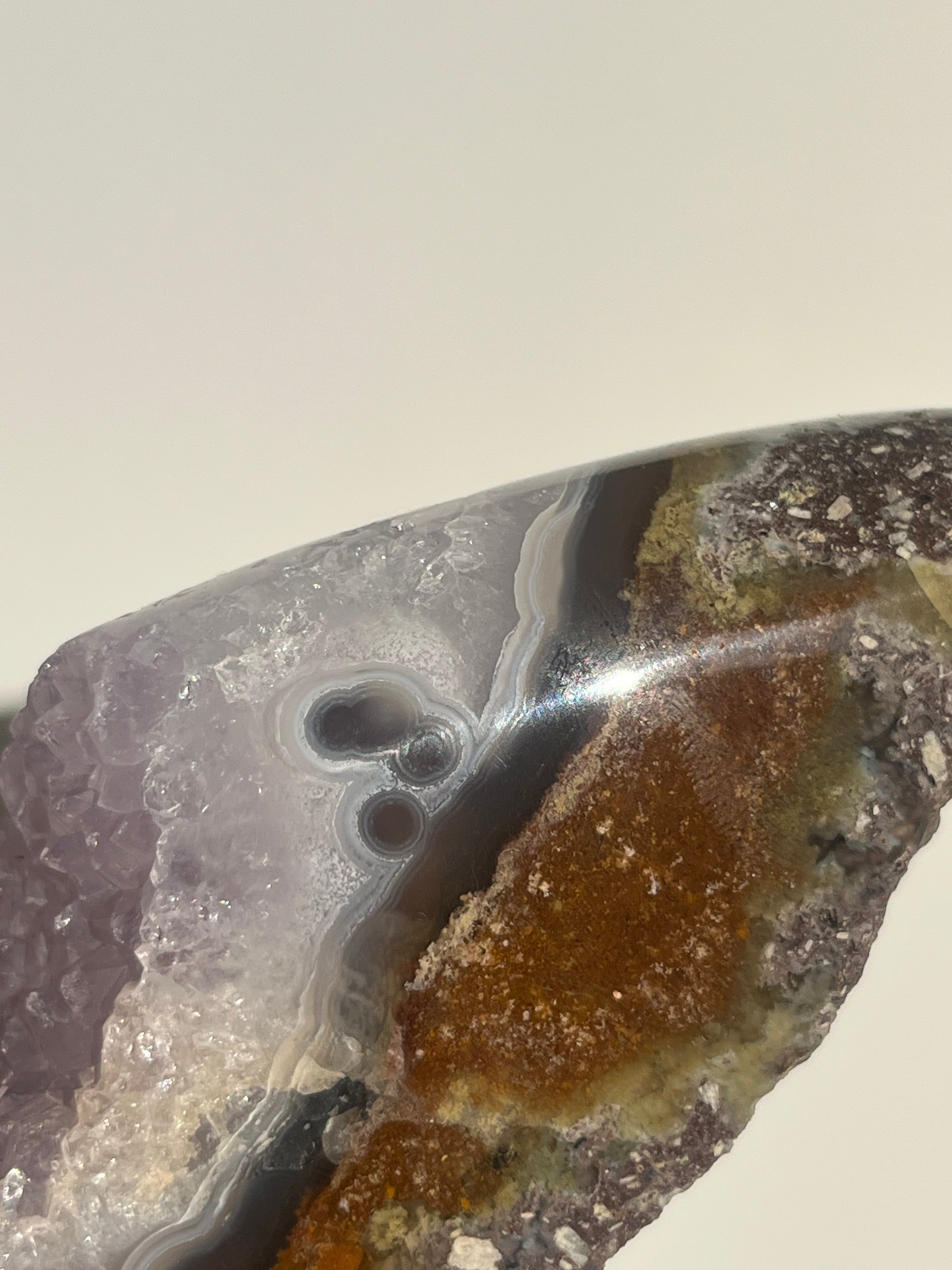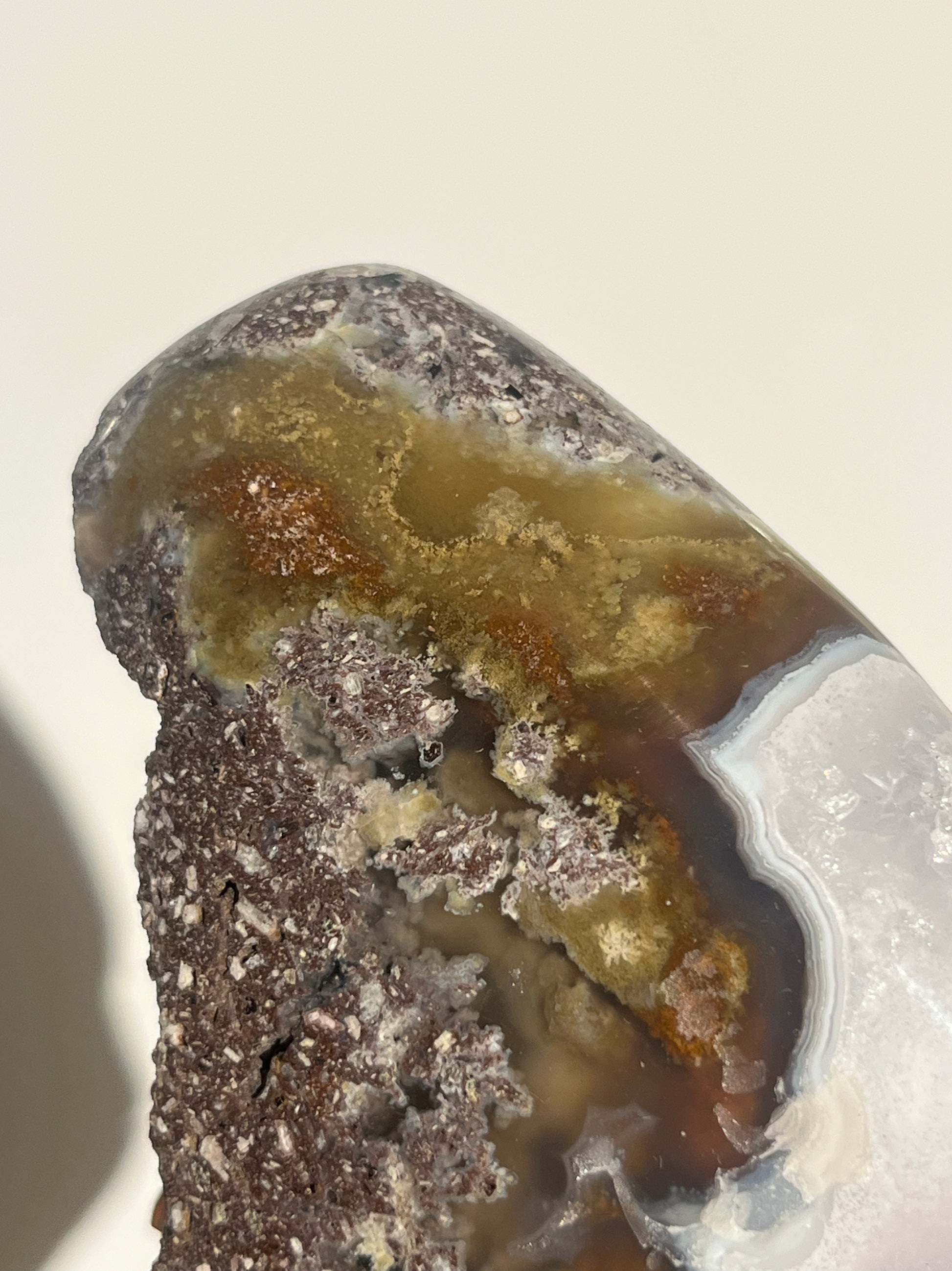 ‘Seraphique’ Nebula Agate with Scenic Moss and Amethyst Semi Polished Freeform B