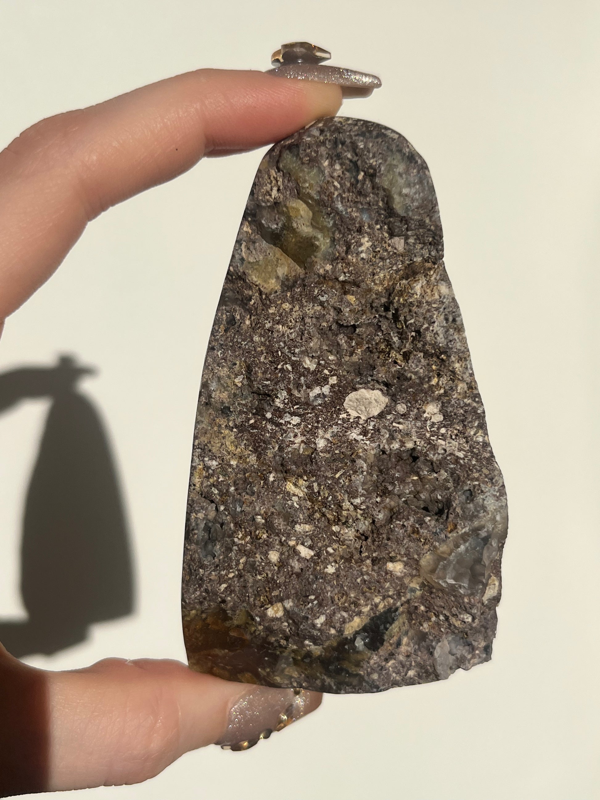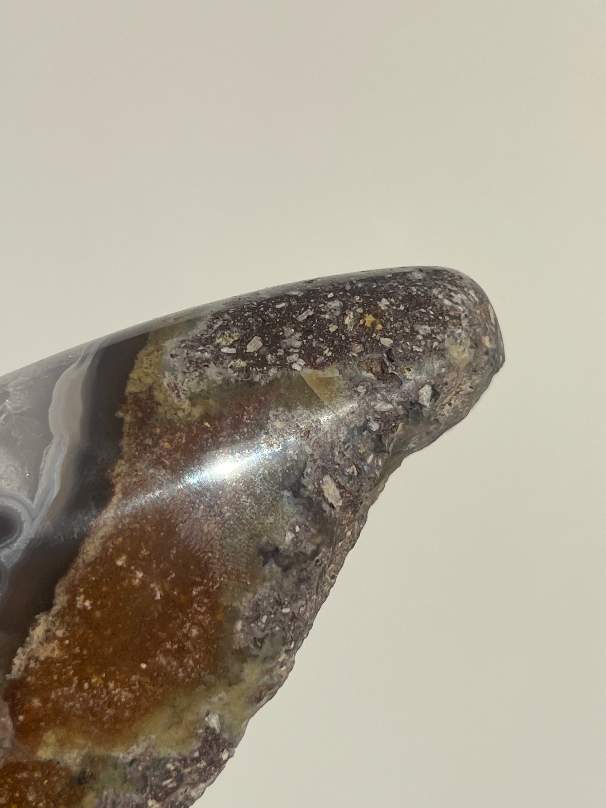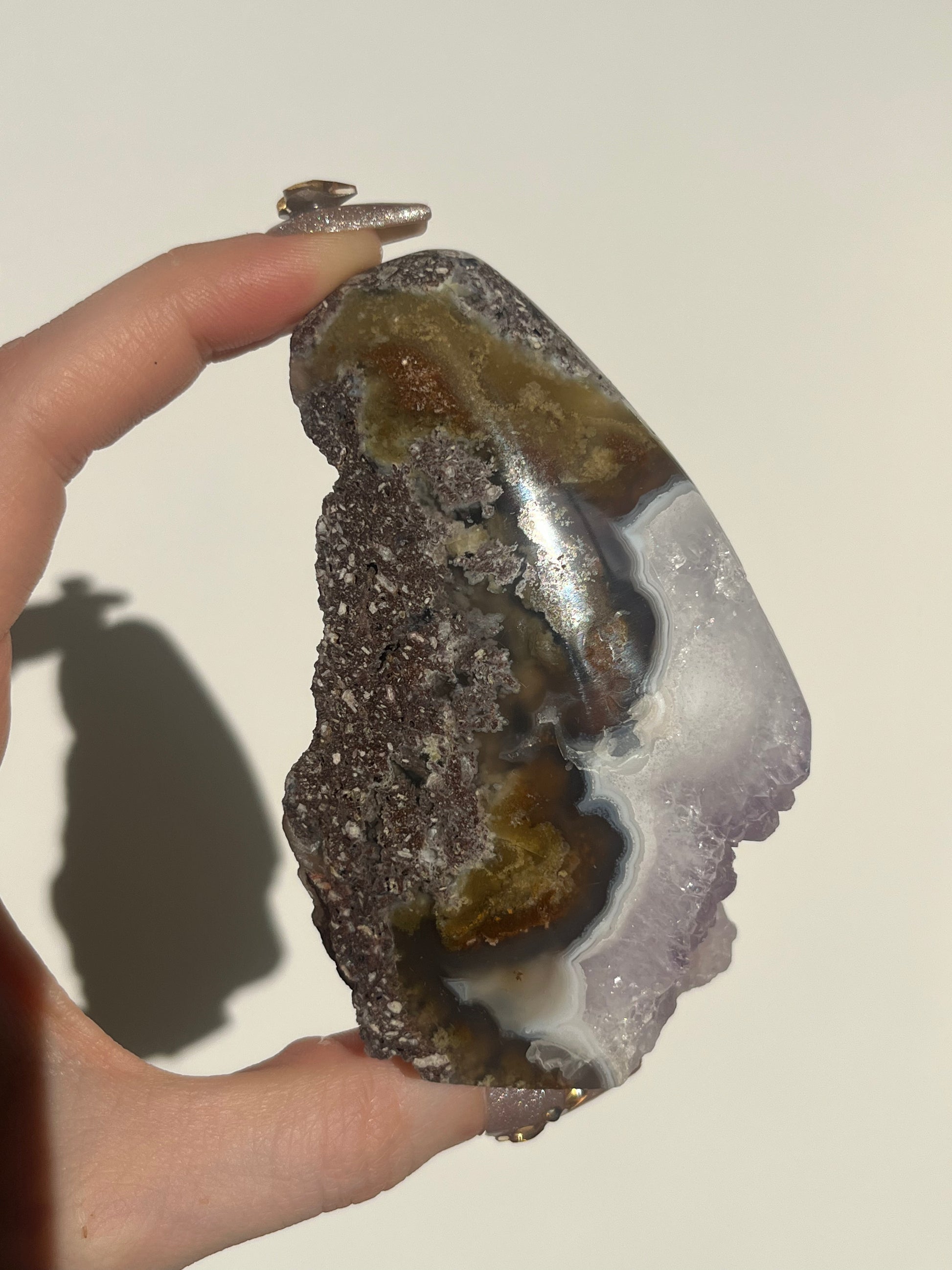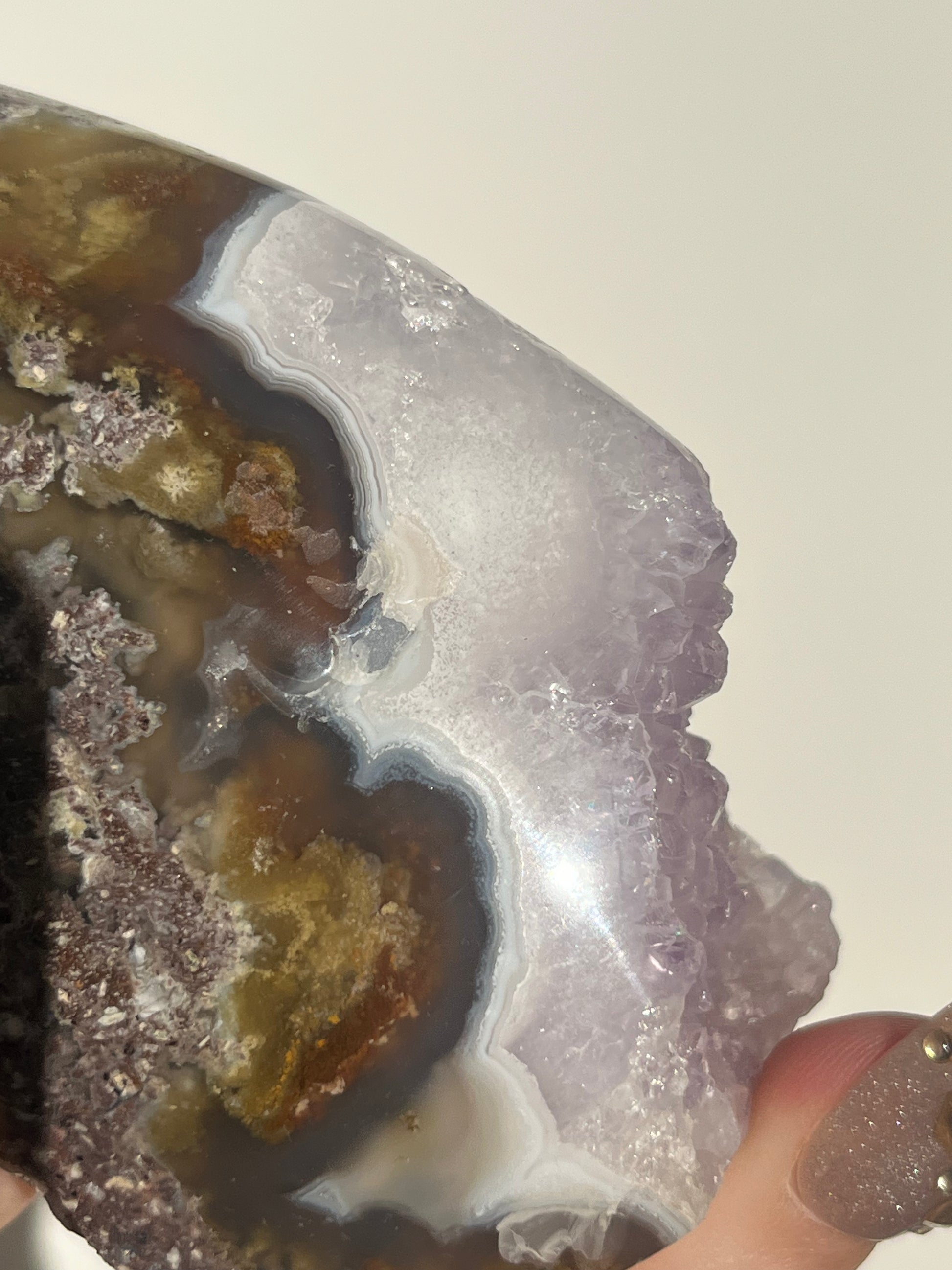‘Seraphique’ Nebula Agate with Scenic Moss and Amethyst Semi Polished Freeform B