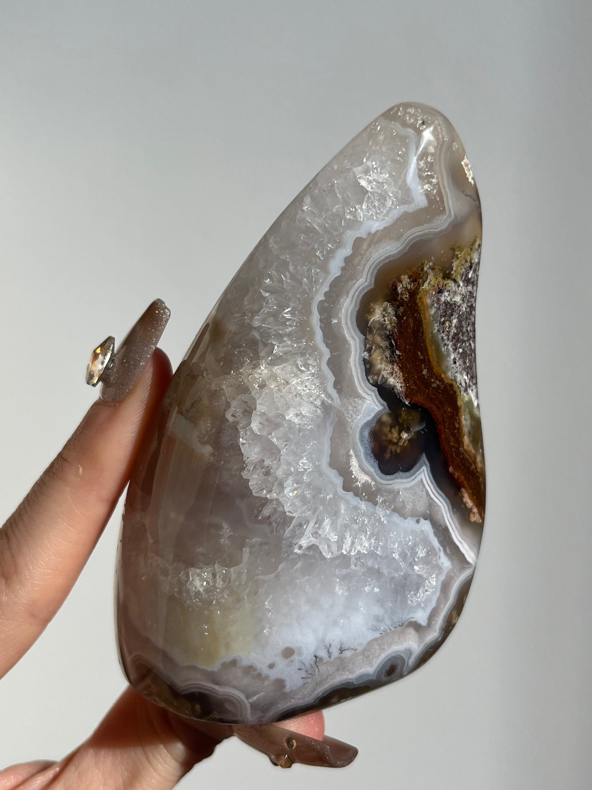 Nebula Agate introduces calm into your energetic field. In this calm state, you can self introspect in order to find out what it is that you really desire. With a regulated nervous system, you open yourself up to new possibilities and feel safe to explore your heart’s true passions.