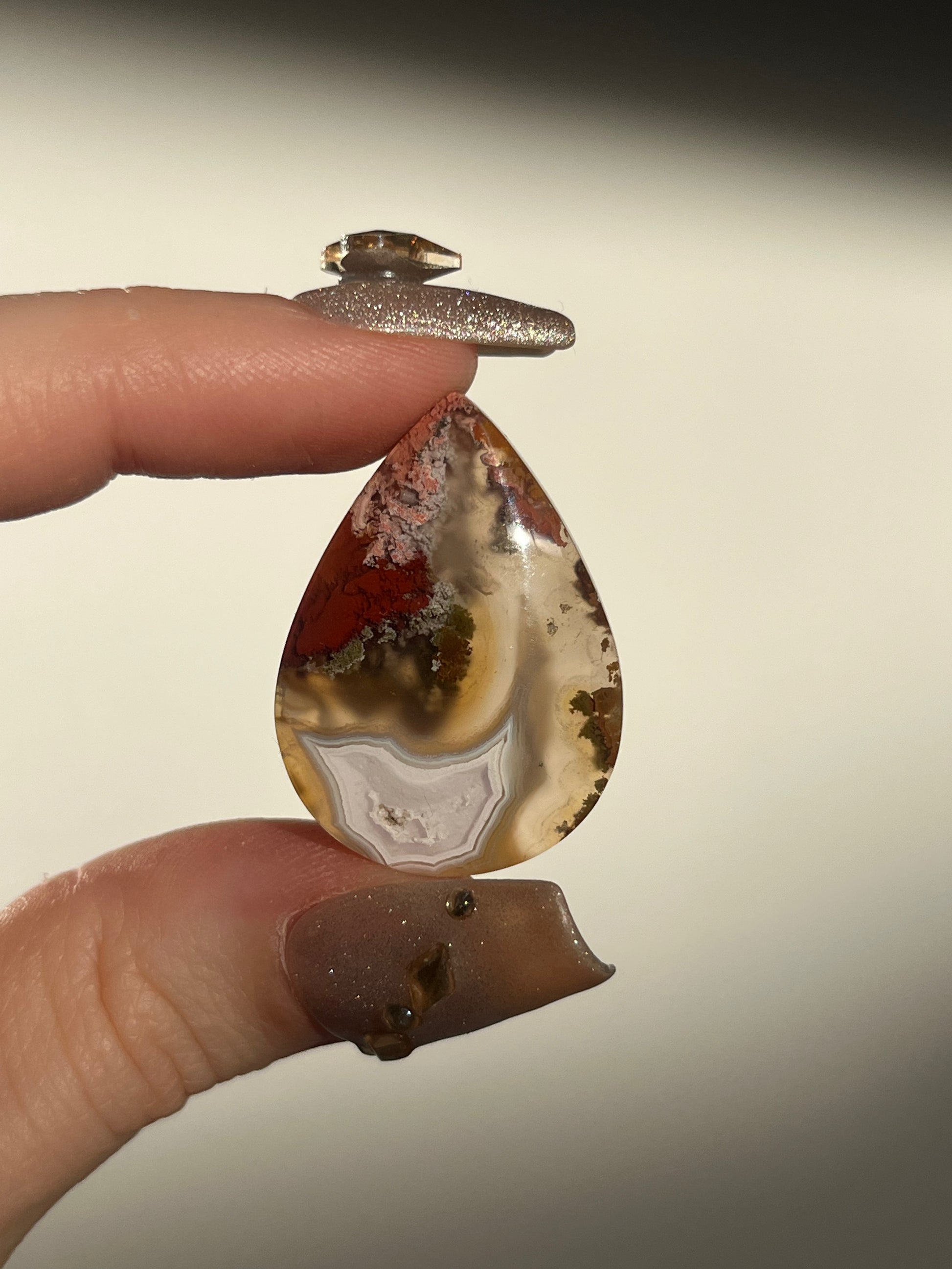 Nebula Agate with Scenic Moss Teardrop Cabochon (You Choose)
