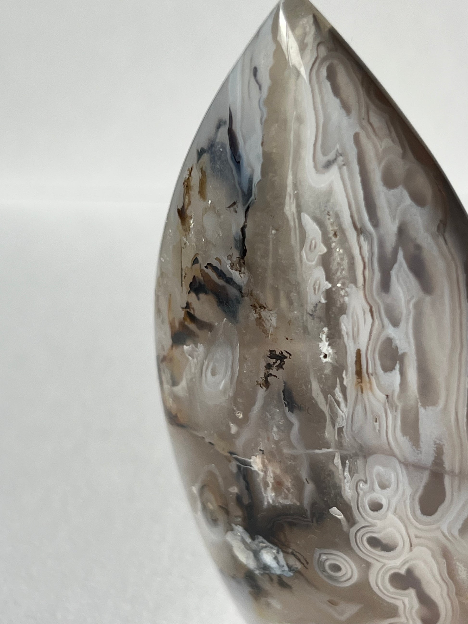 Orbicular Nebula Agate Flame with Dendritic Inclusions C