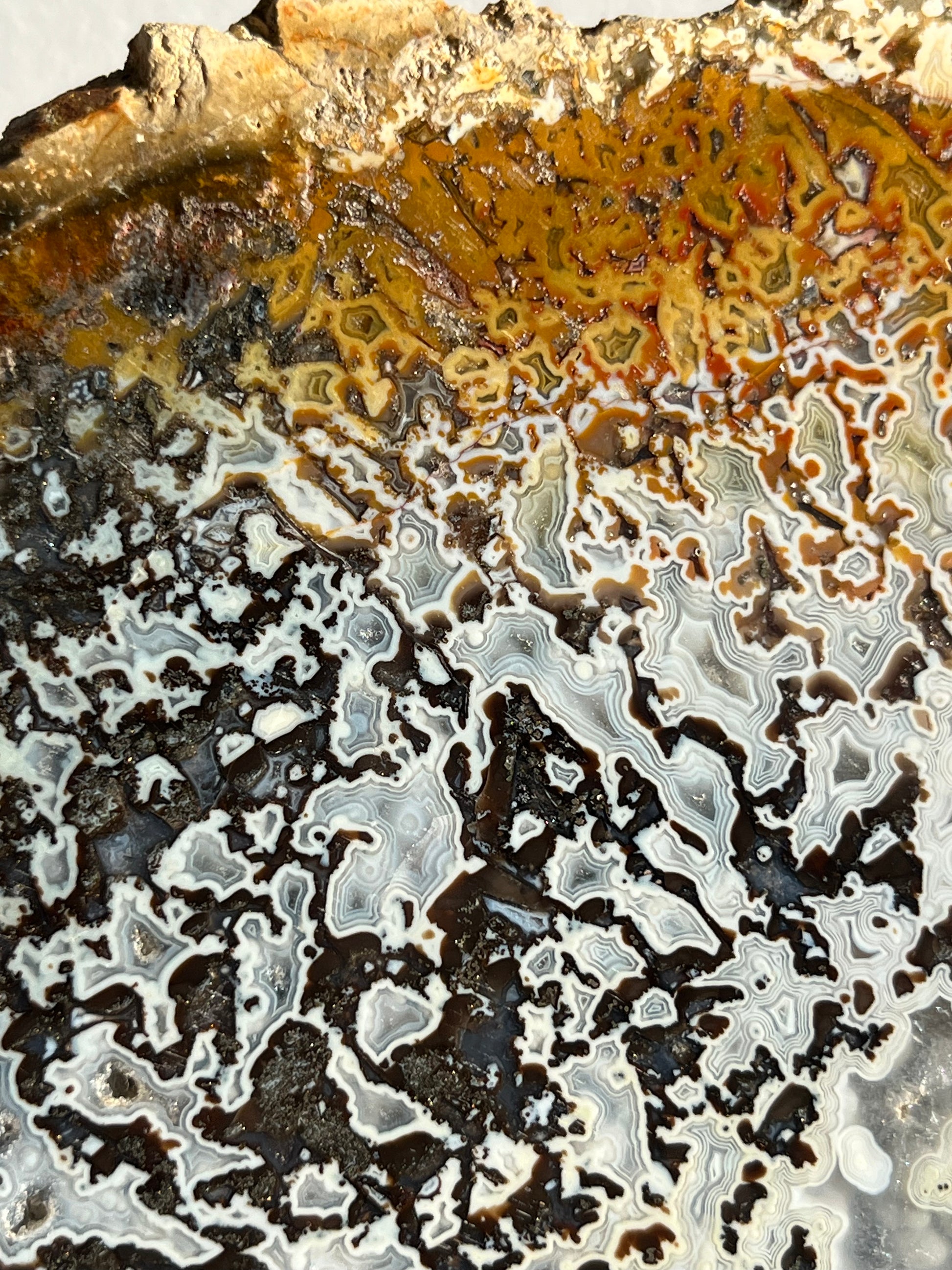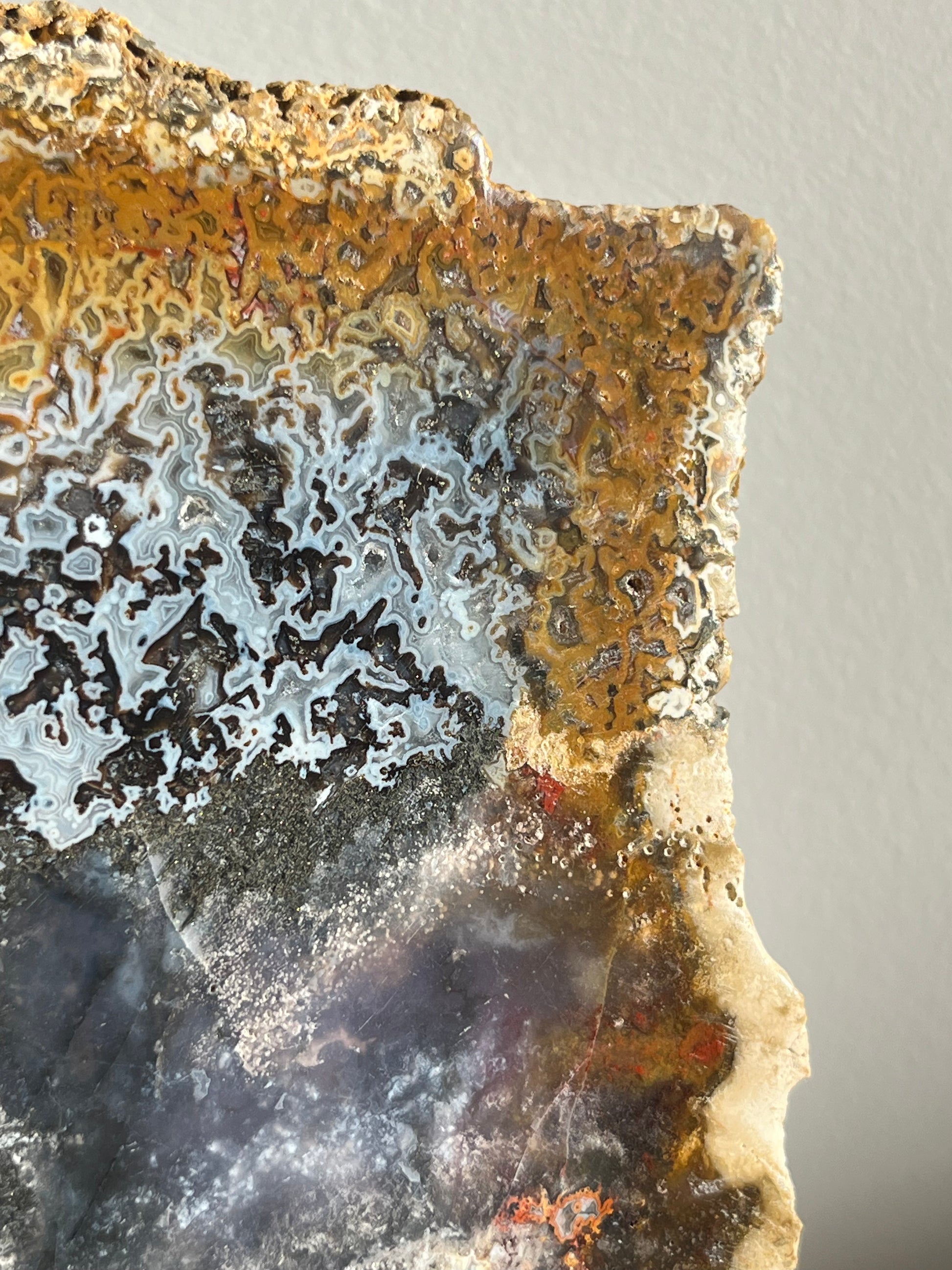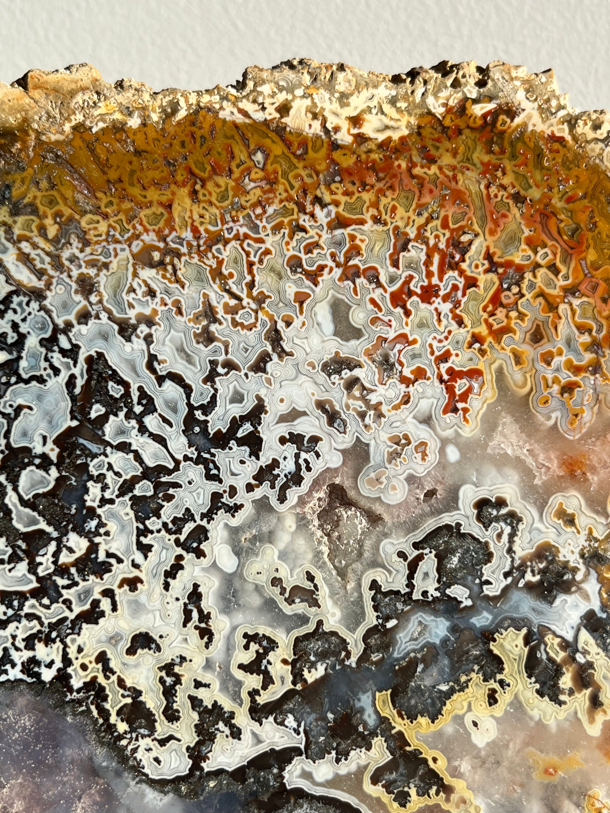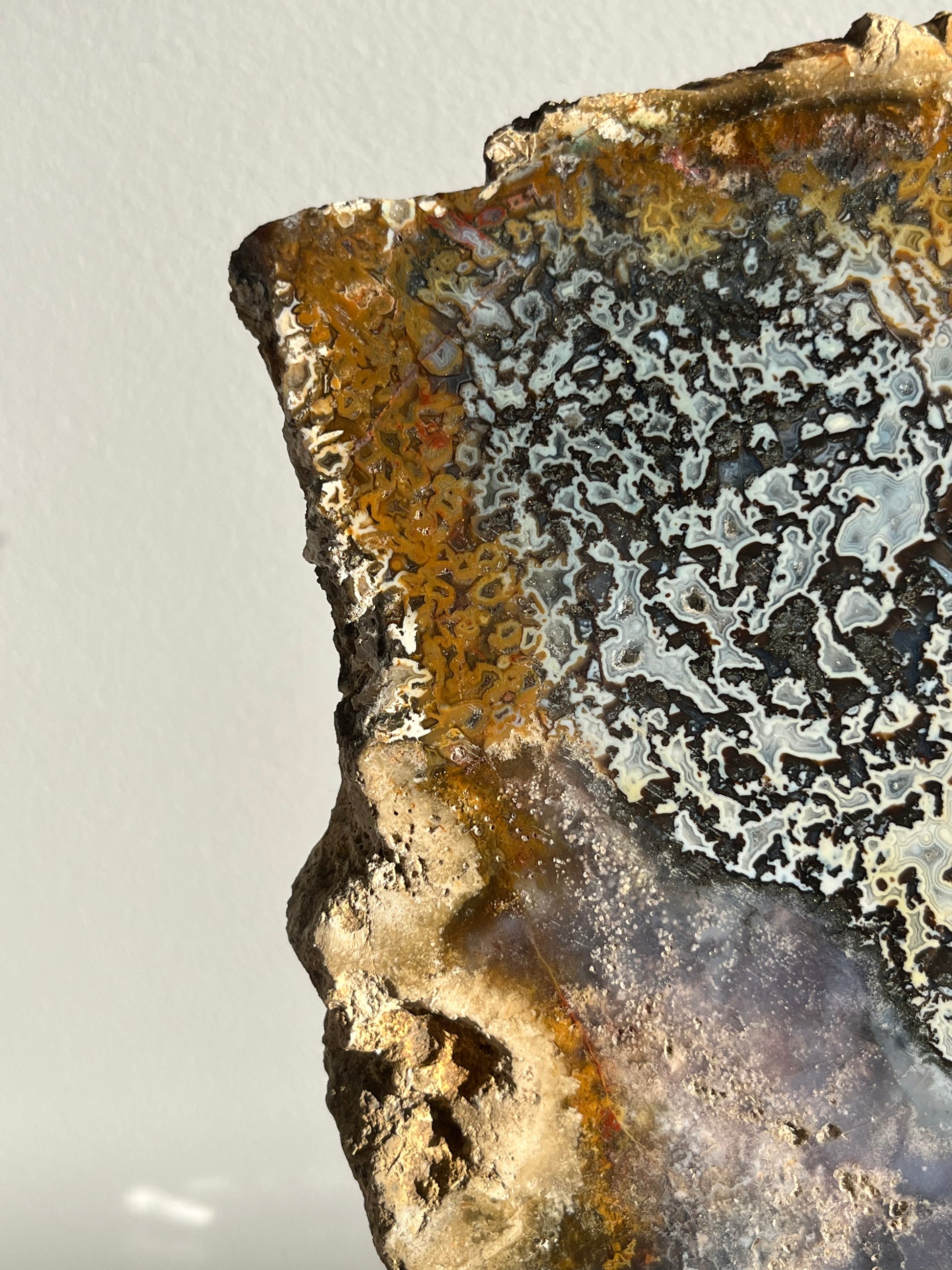 Agatised Petrified Wood with Marcasite, Face Agate Patterns and Parallax Effect Slab A