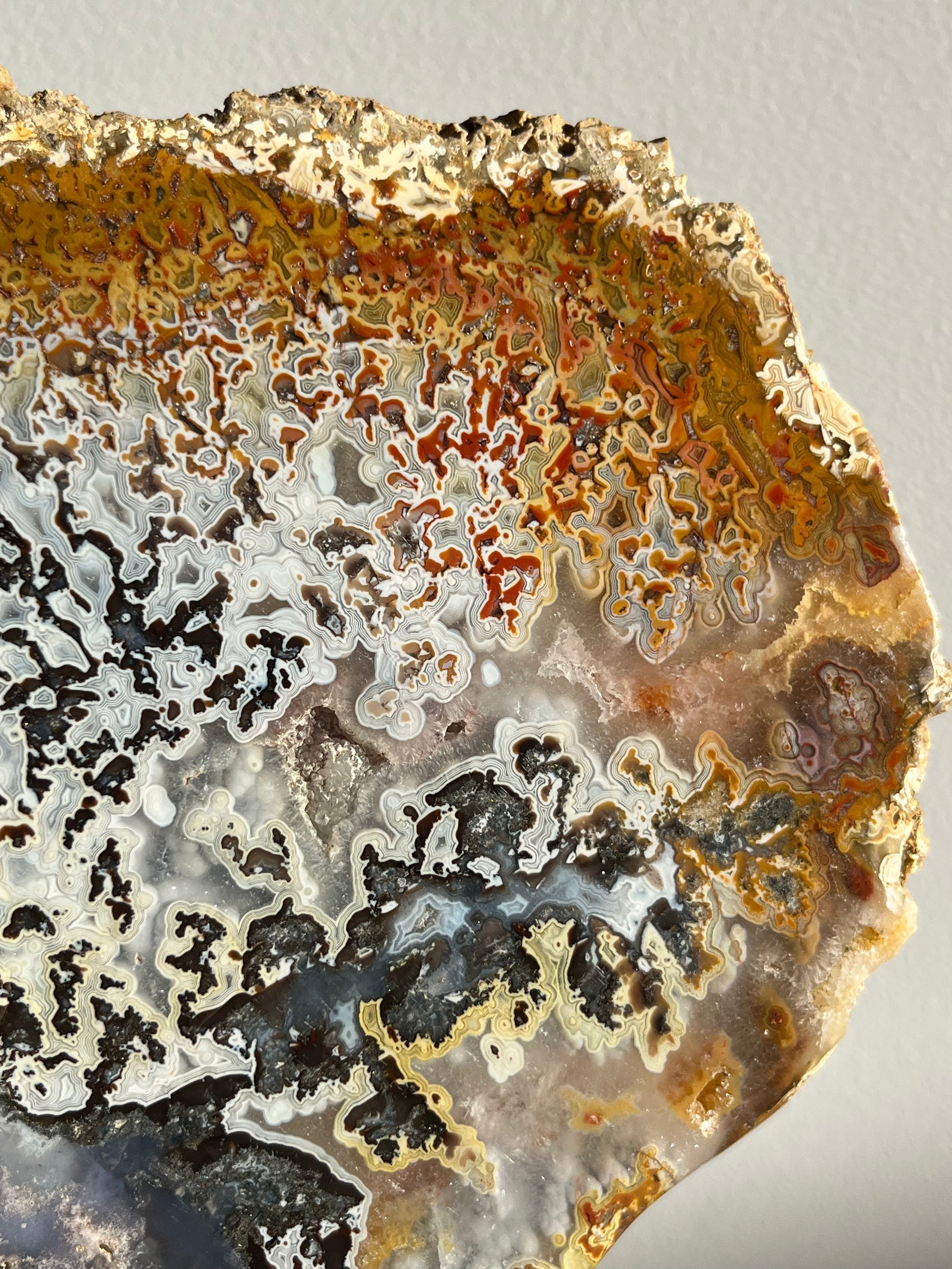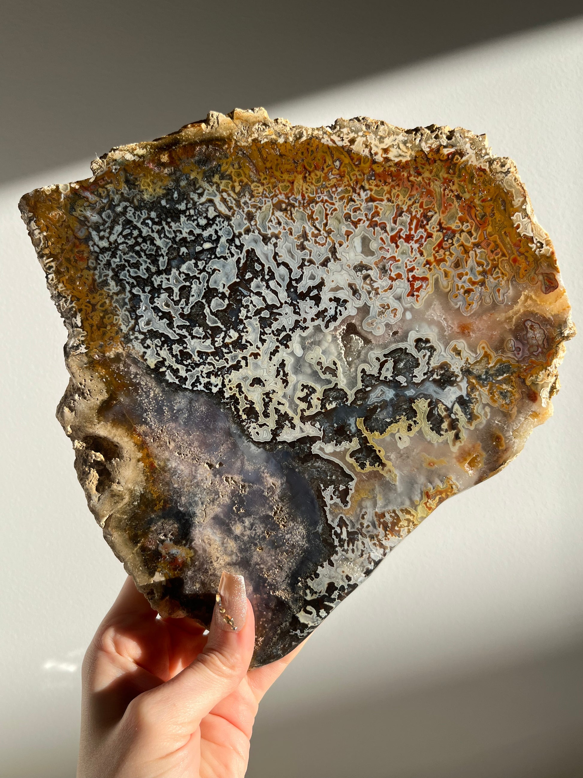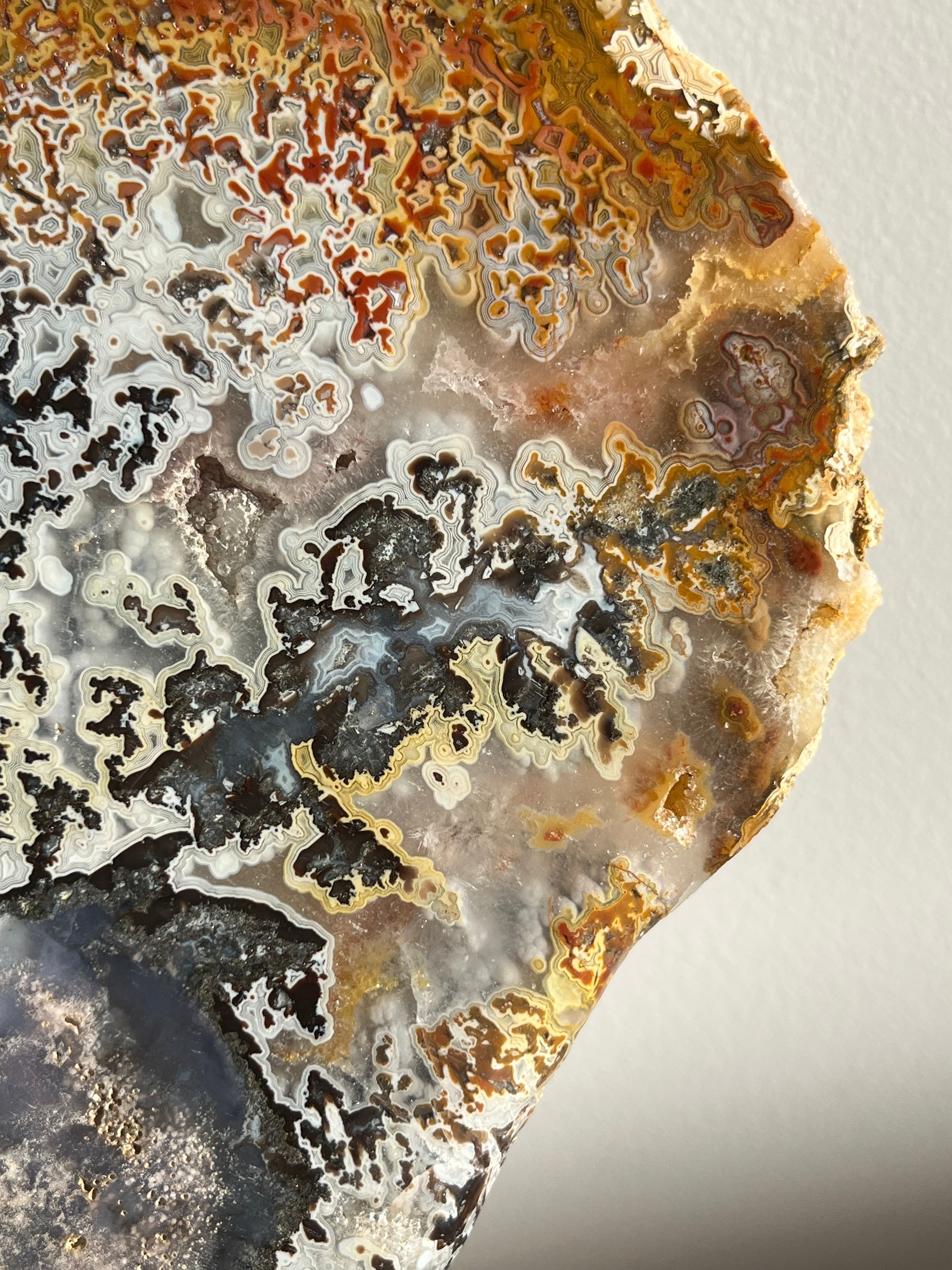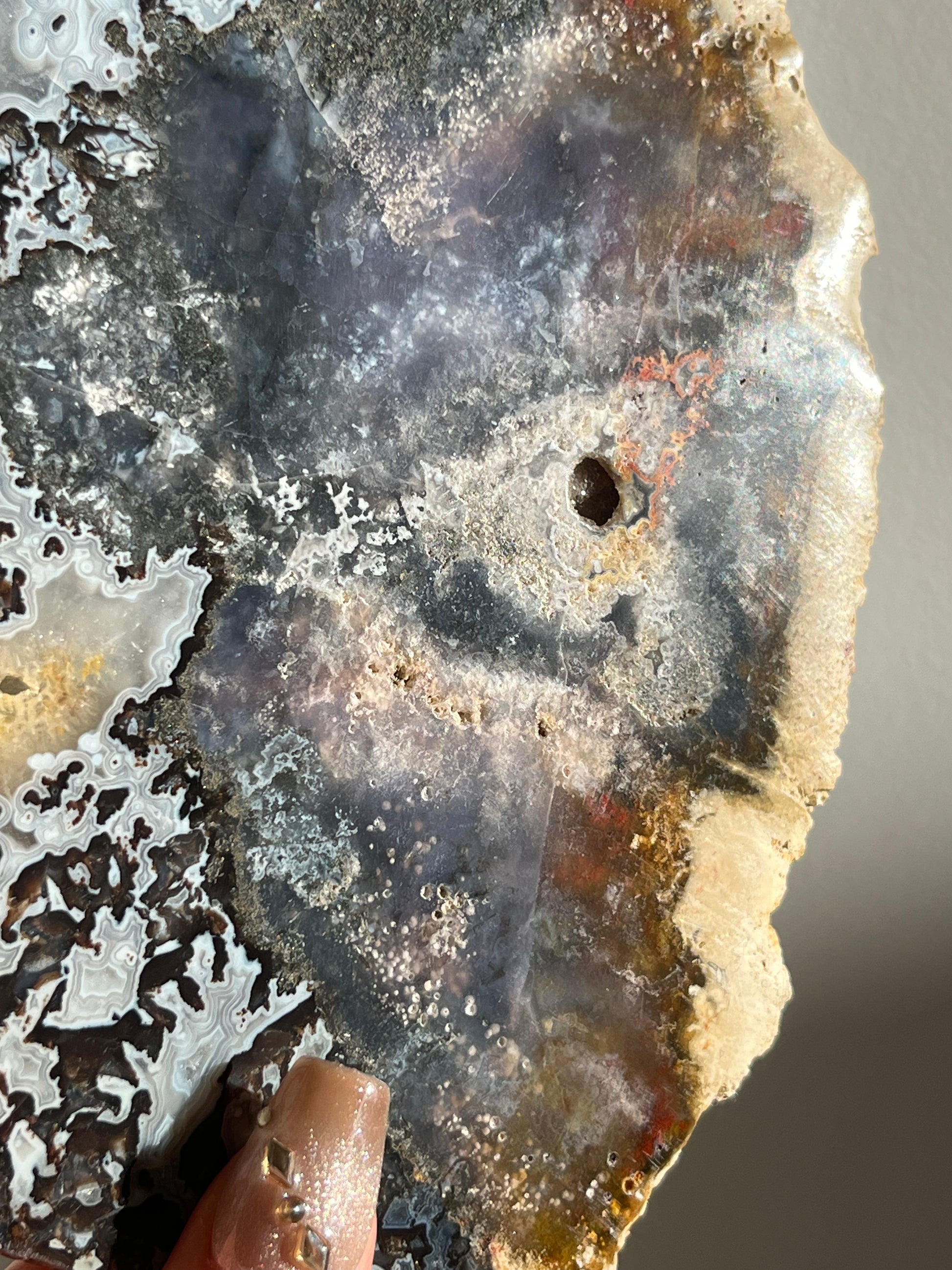 Agatised Petrified Wood with Marcasite, Face Agate Patterns and Parallax Effect Slab A