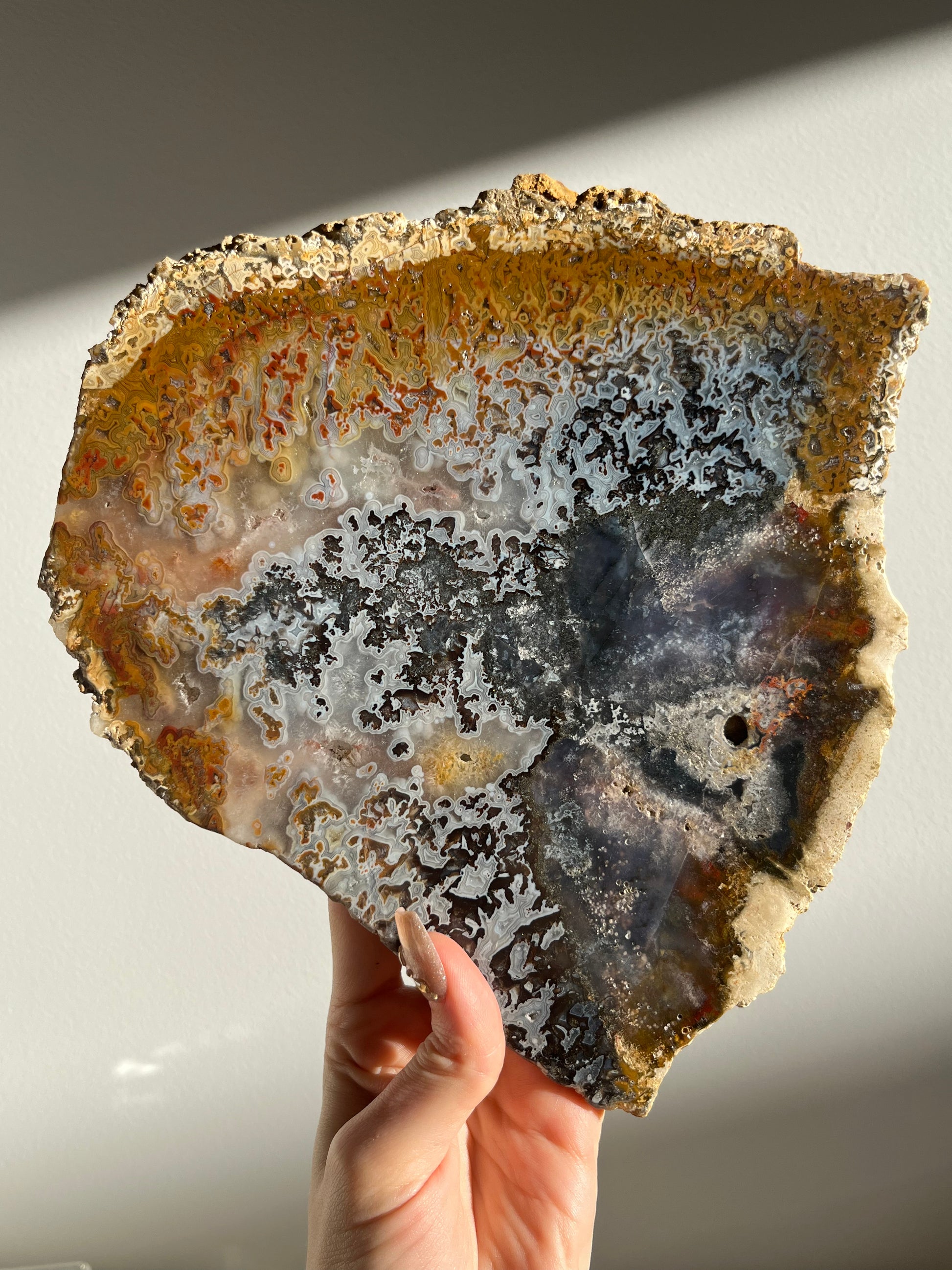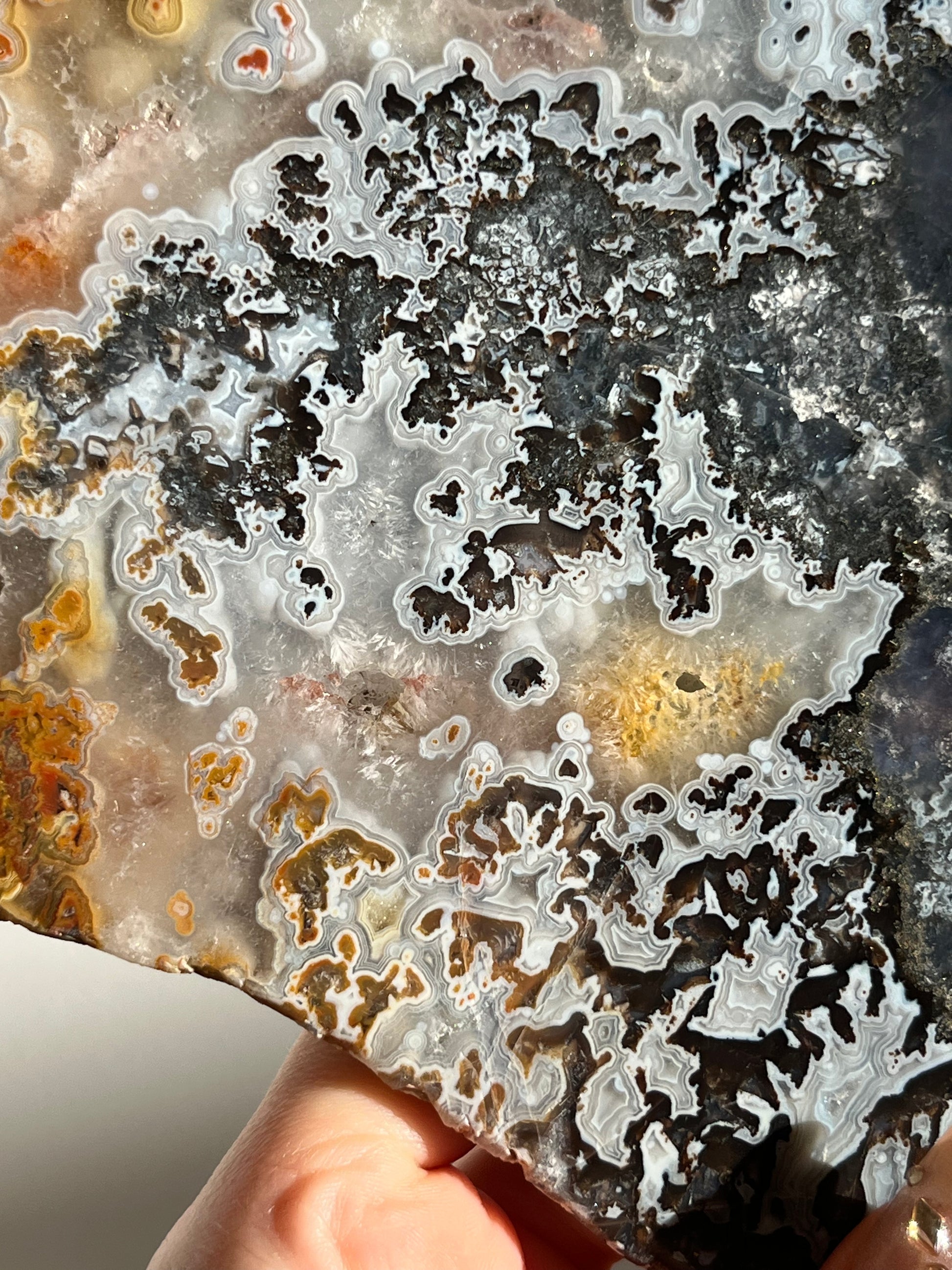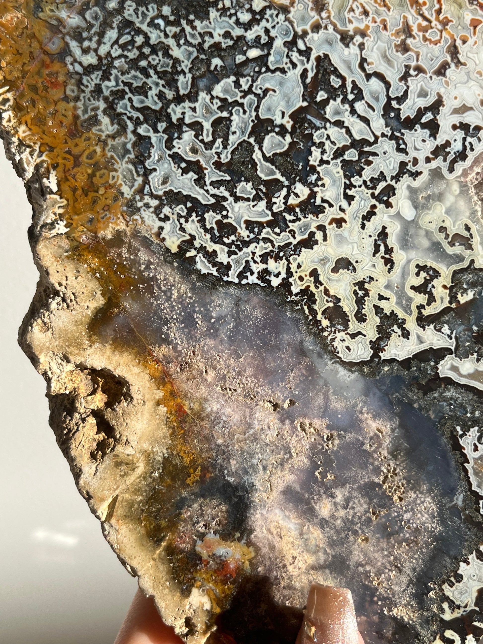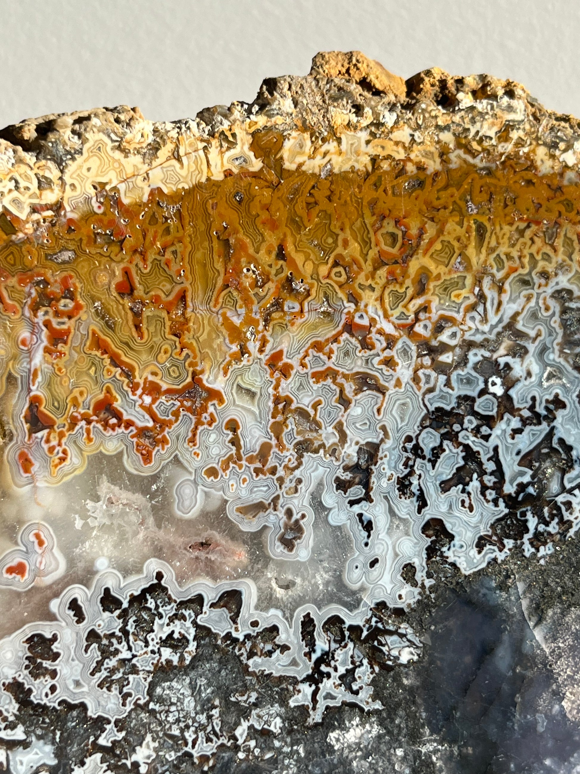 Agatised Petrified Wood with Marcasite, Face Agate Patterns and Parallax Effect Slab A