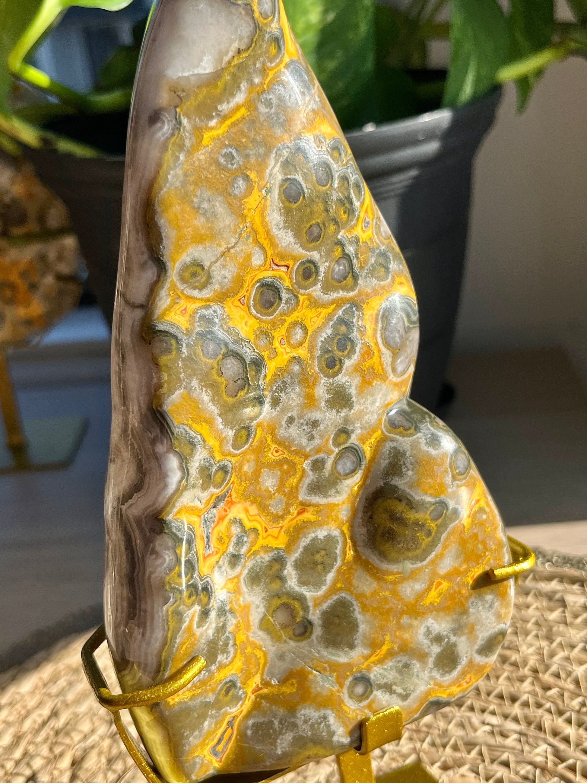 7 号展位上罕见的圆形大黄蜂碧玉抛光自由形状