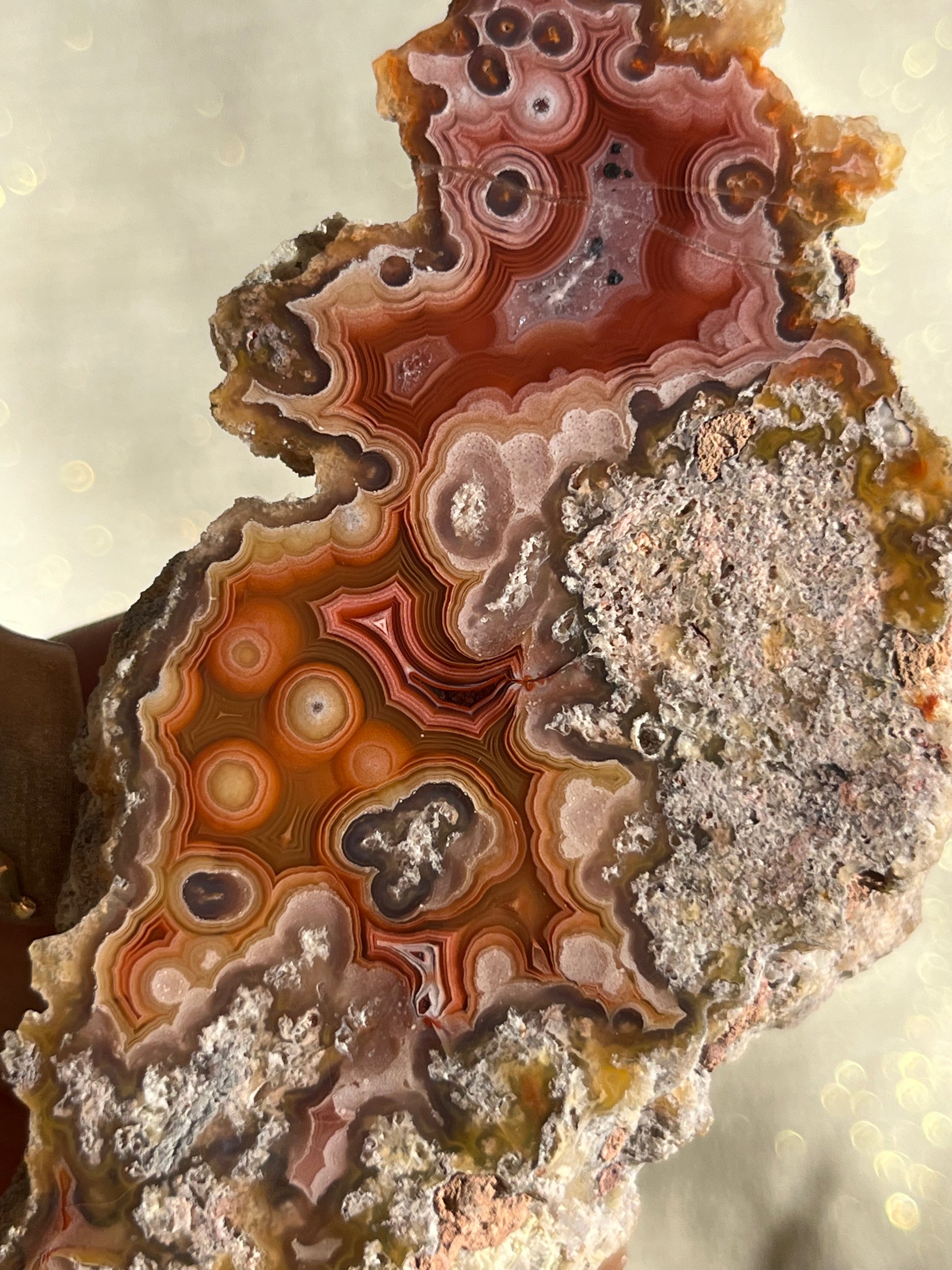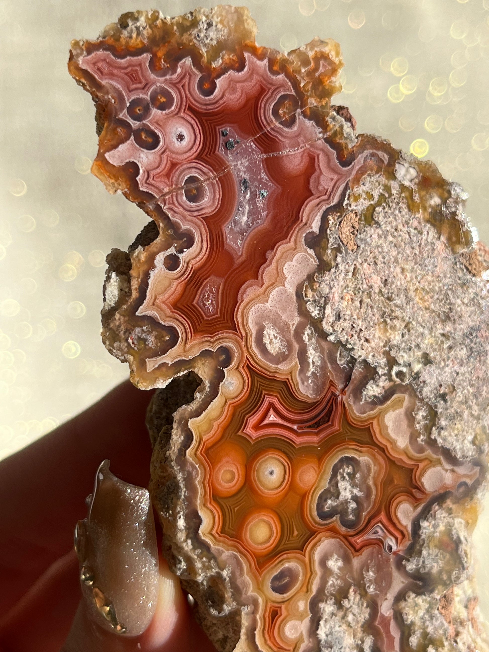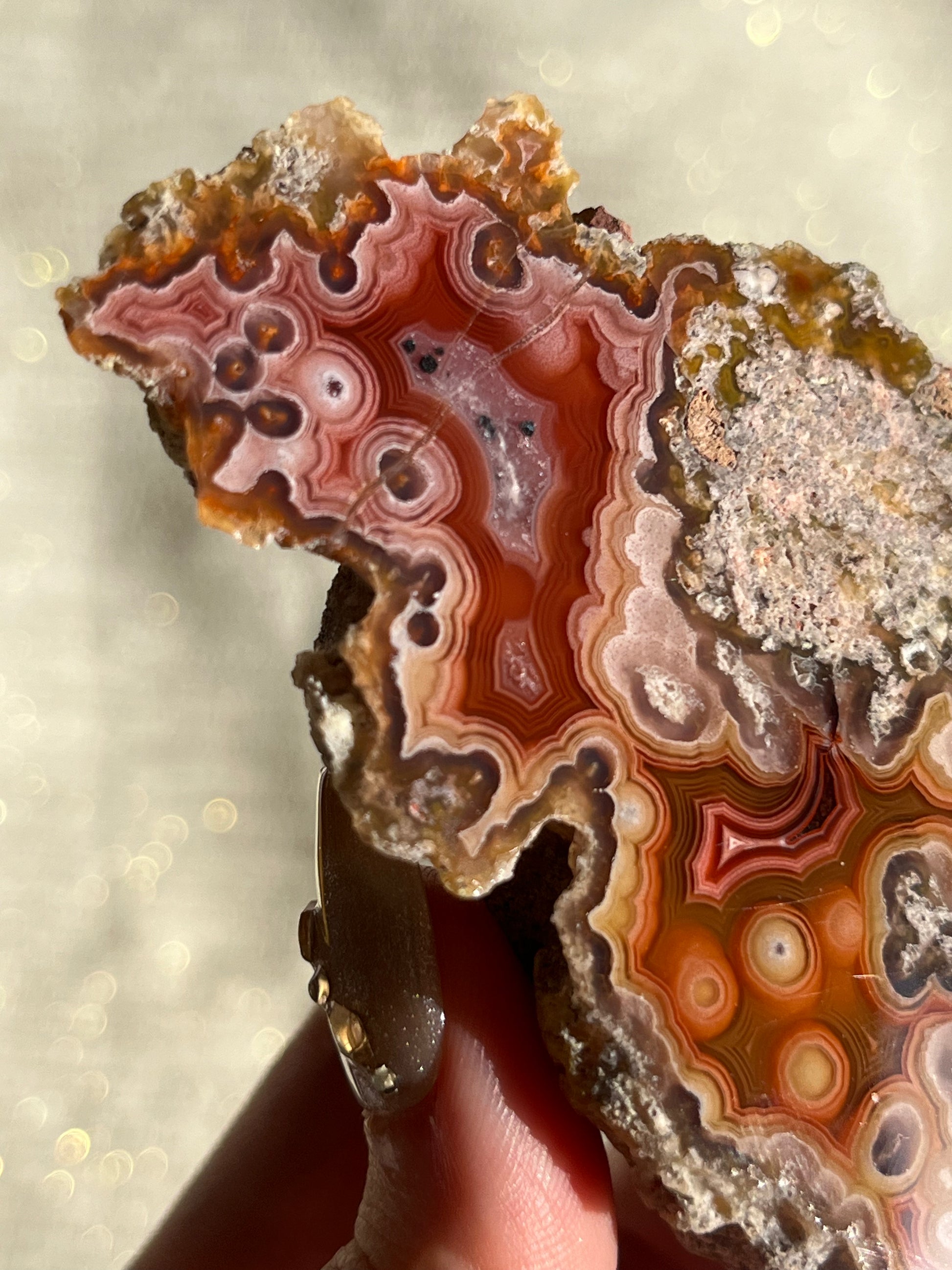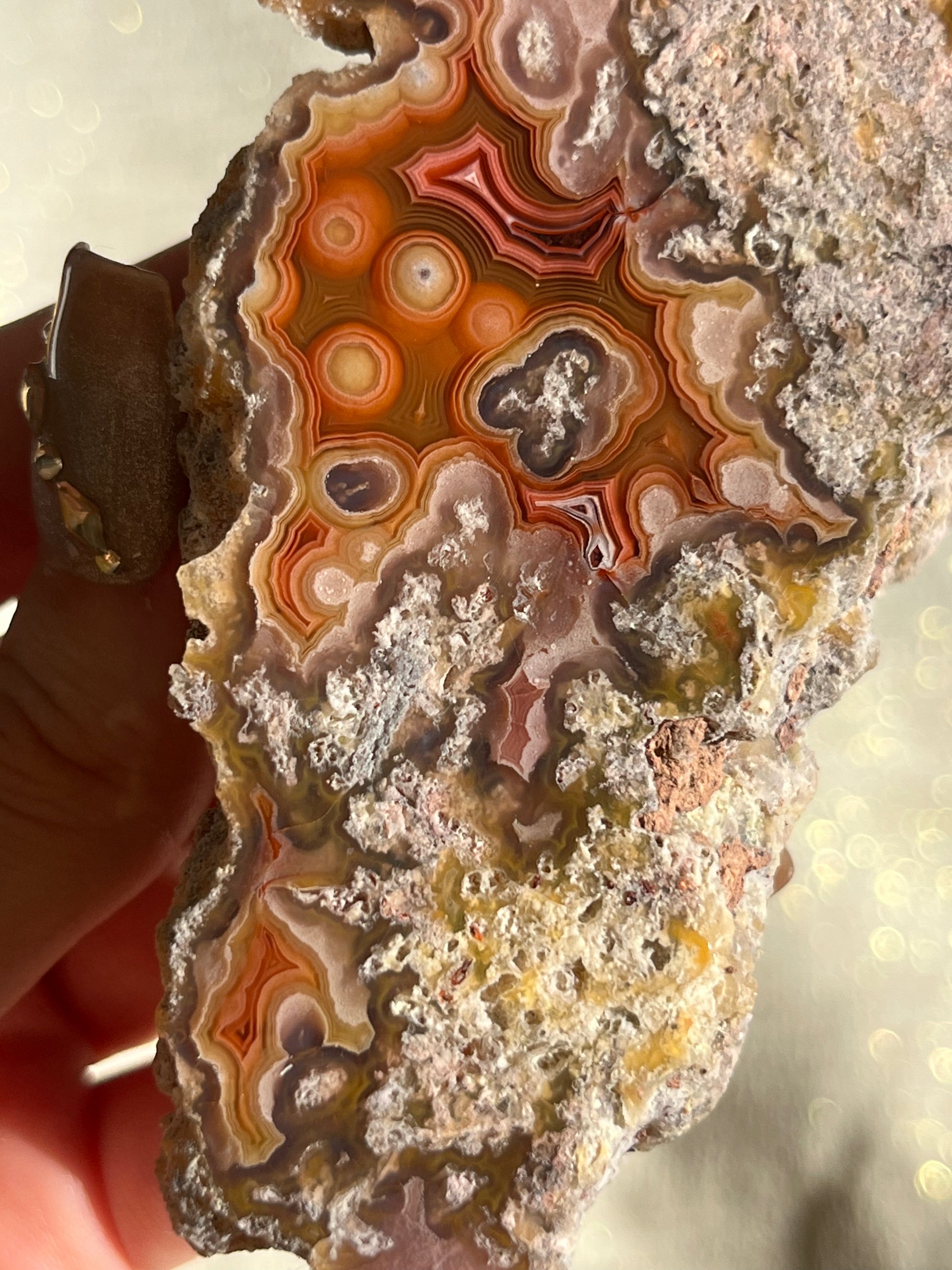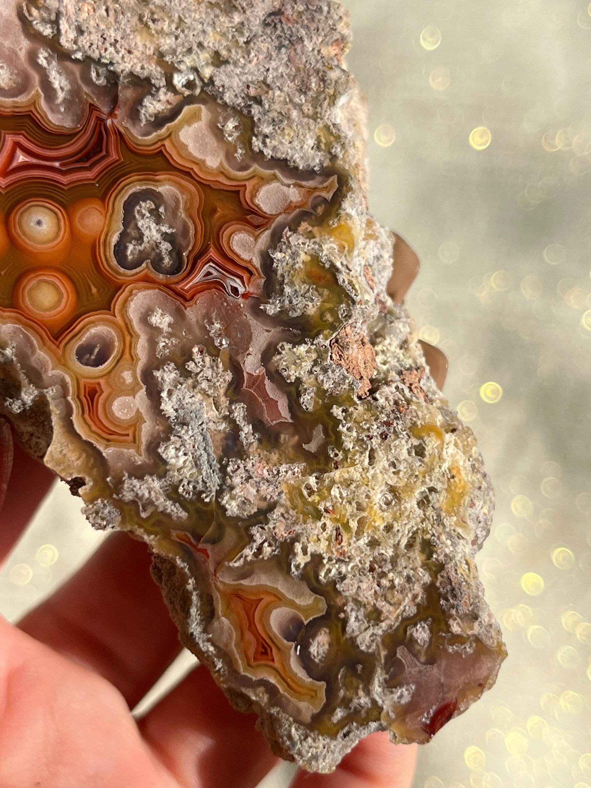 They are considered to be the most colourful banded agates in the world. Their exquisite, banded chalcedony patterns range from lace to orbicular.