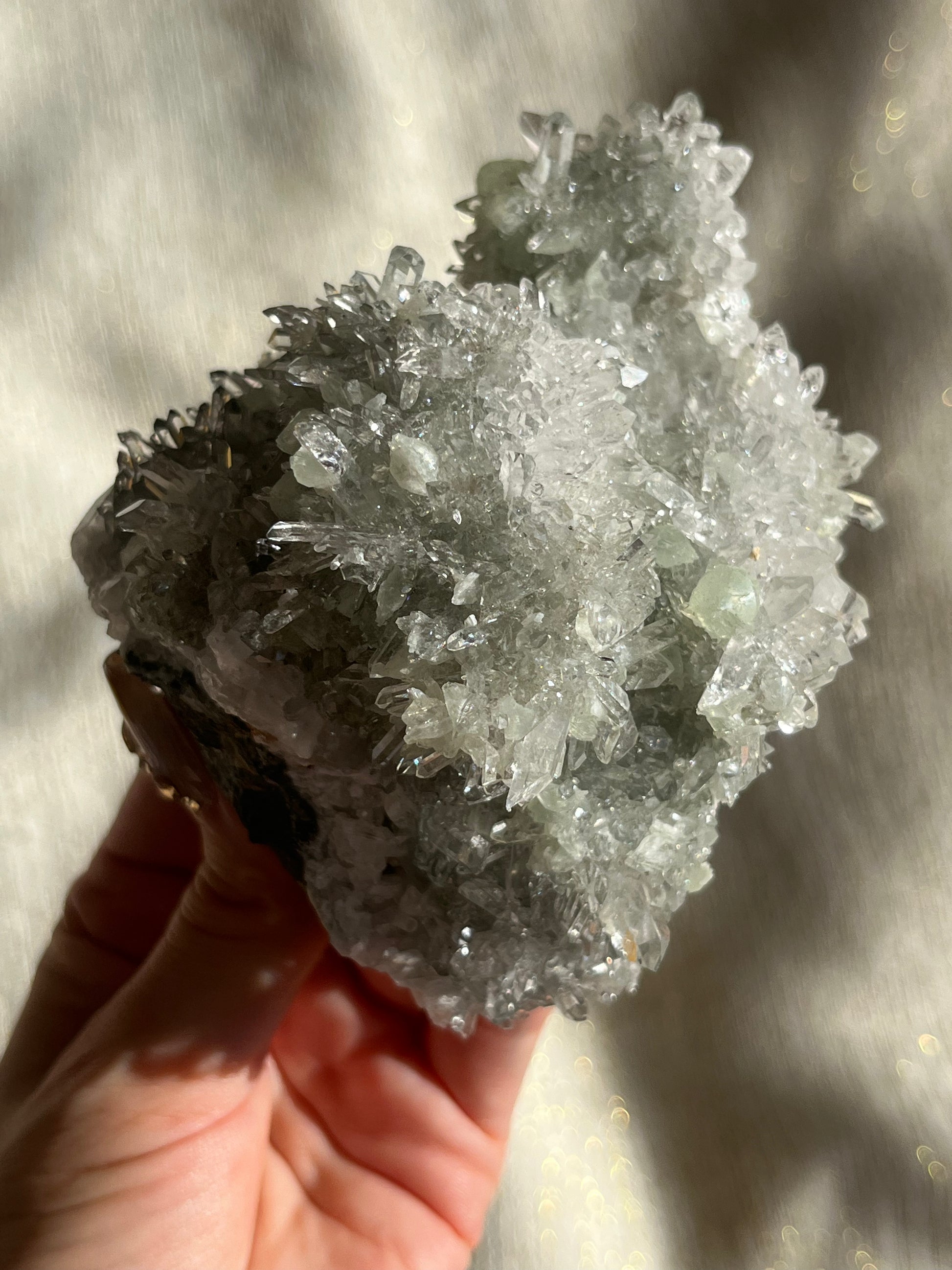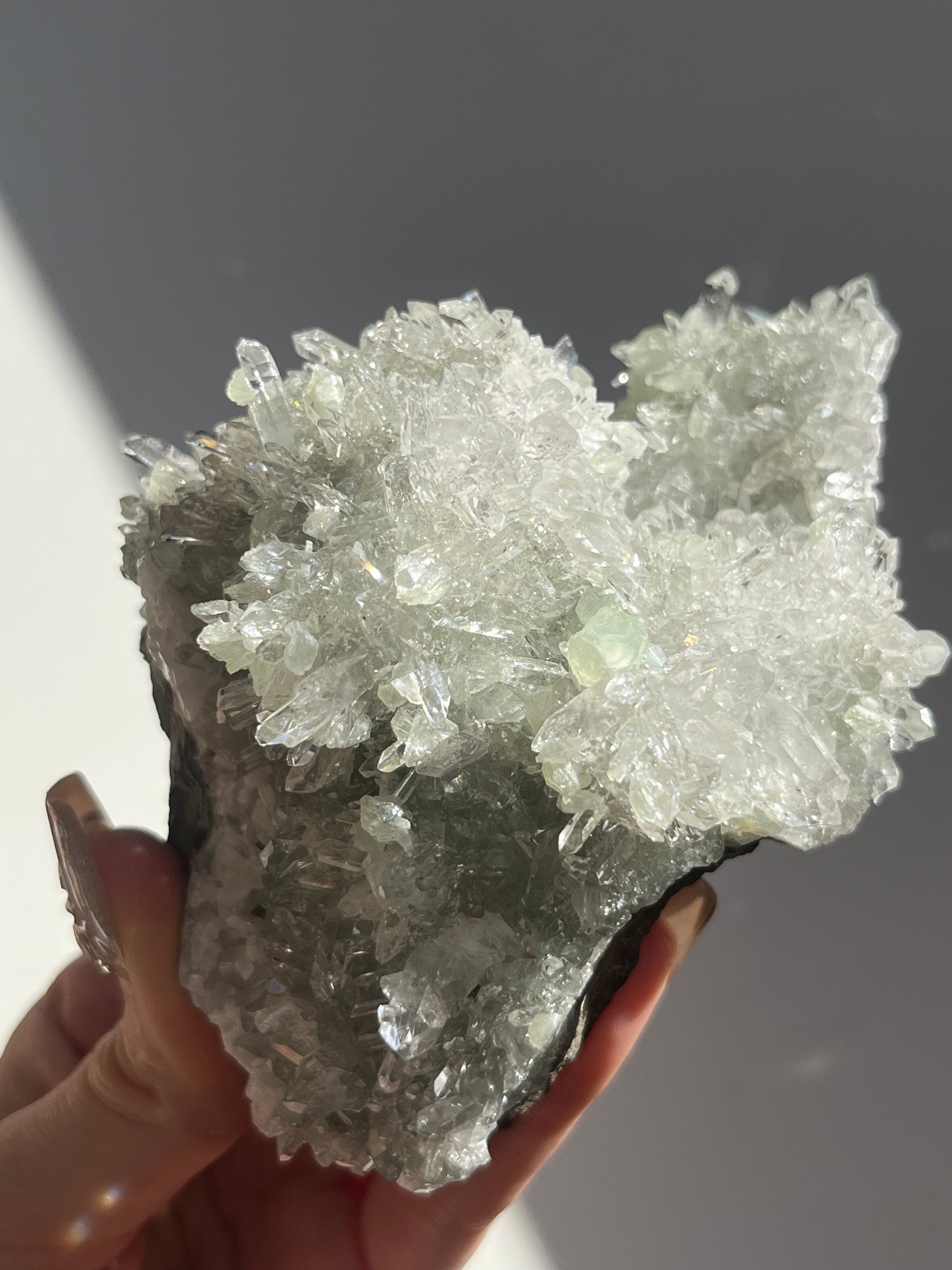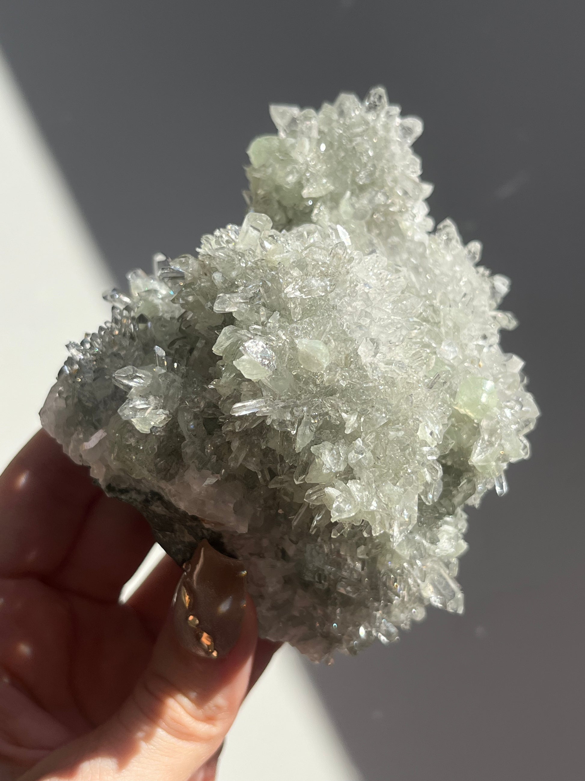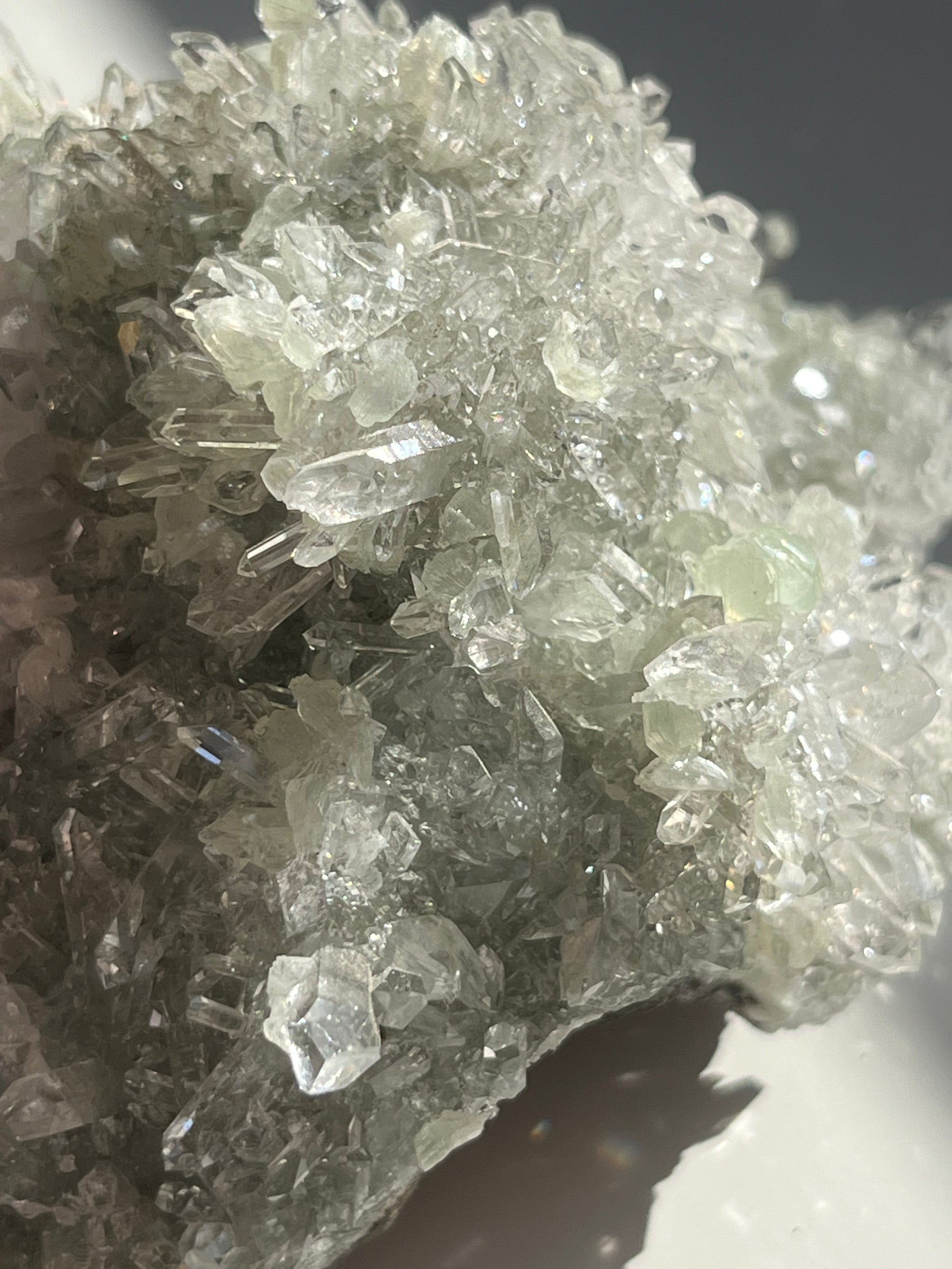Starburst Quartz Cluster with Botryoidal Prehnite & Calcite (Collector’s Choice)