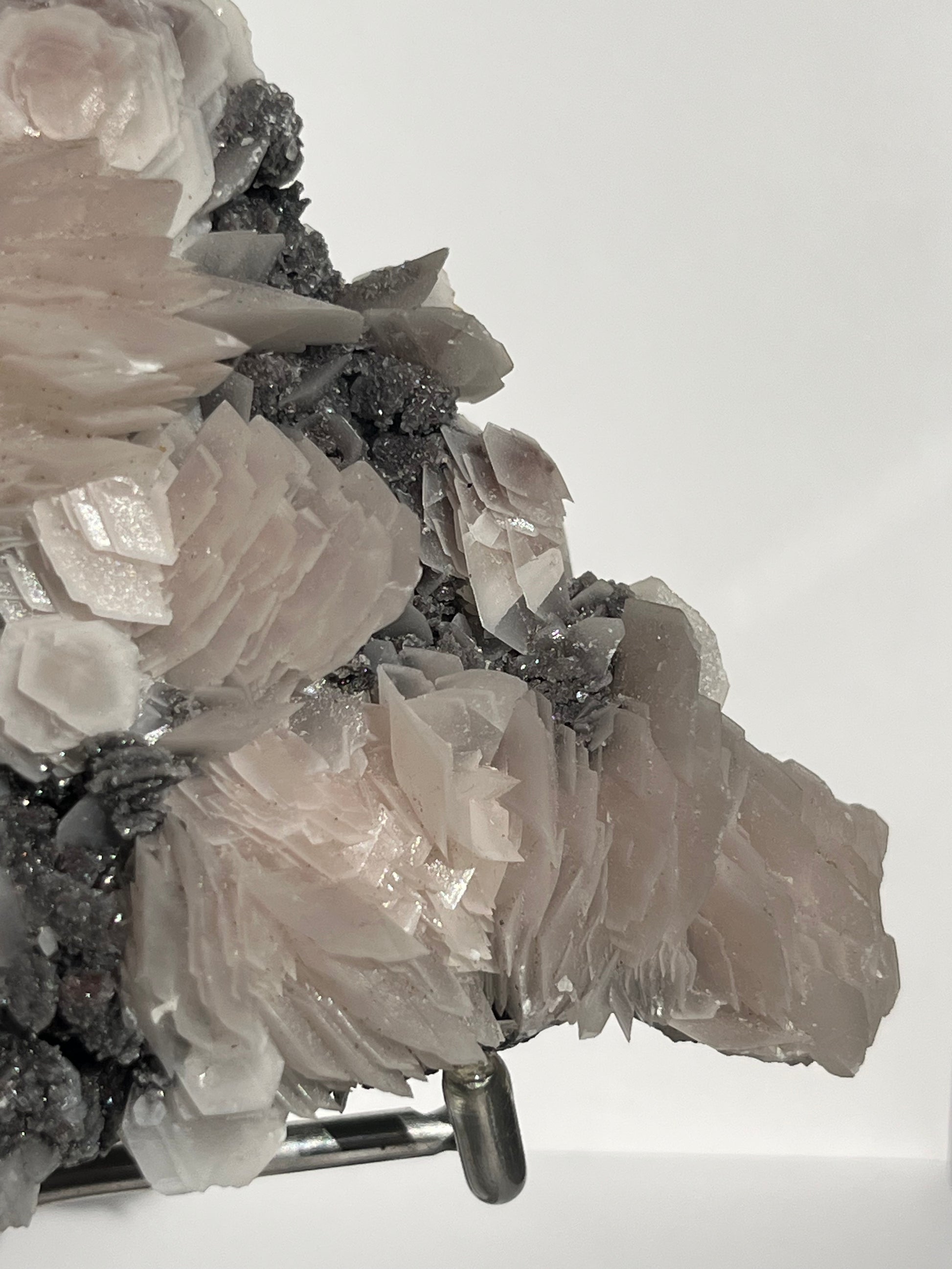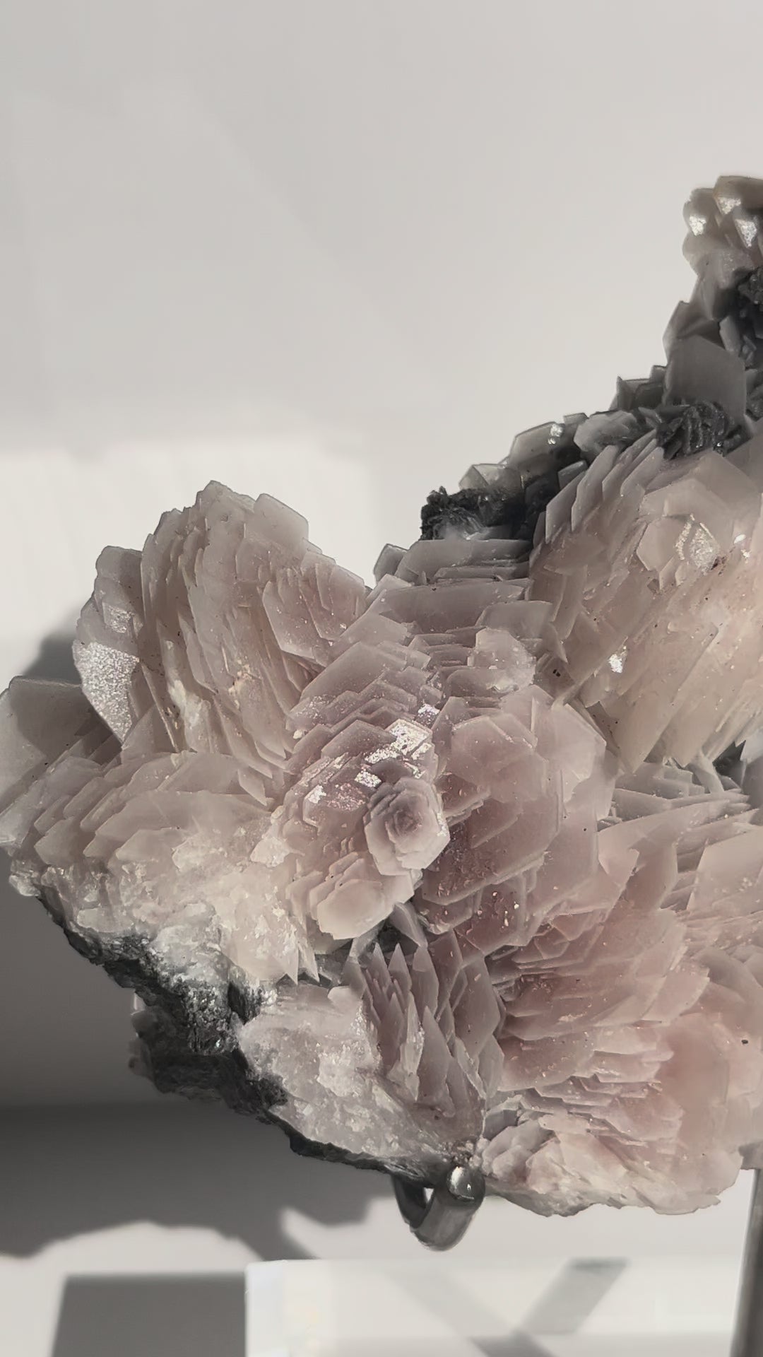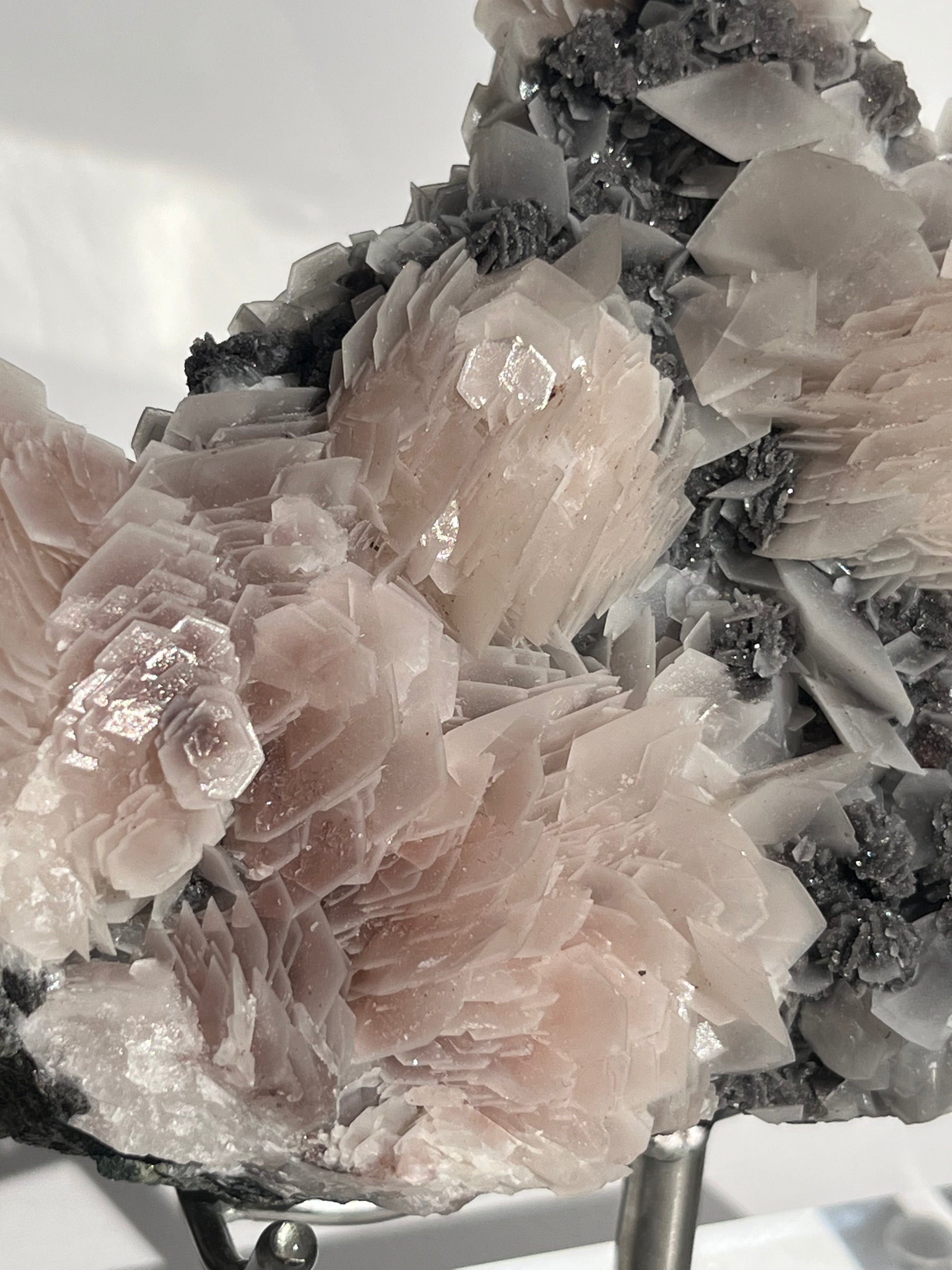 "The Queen of the Night" Pink Sakura Blossom Calcite on Quartz Coated Matrix Specimen with Custom Stand (Collector' Choice)