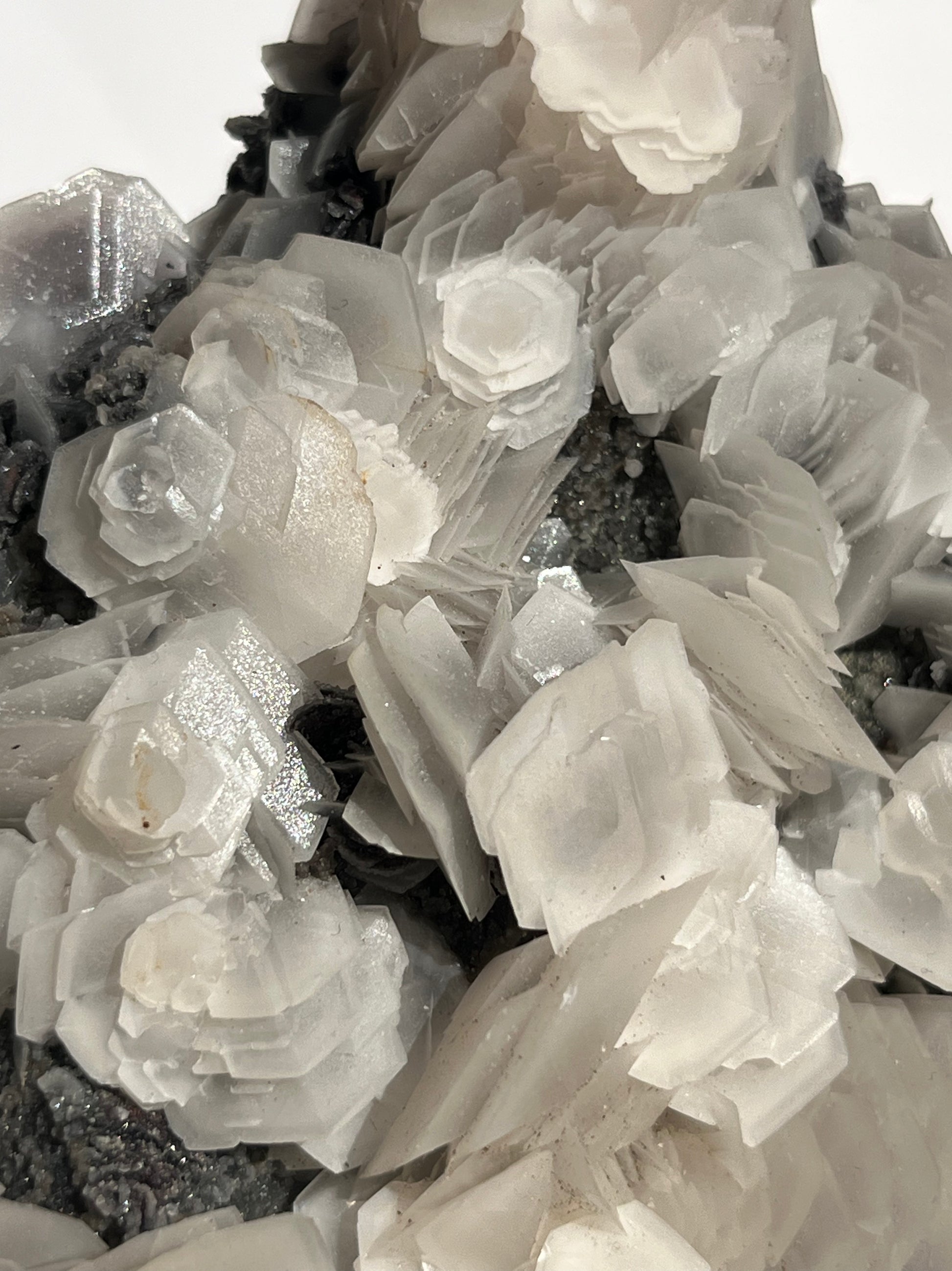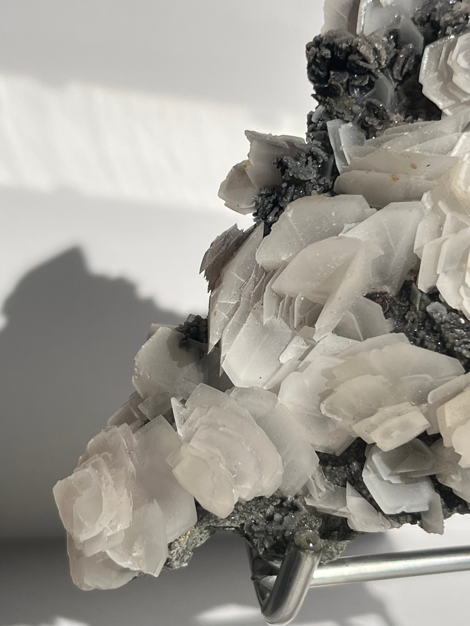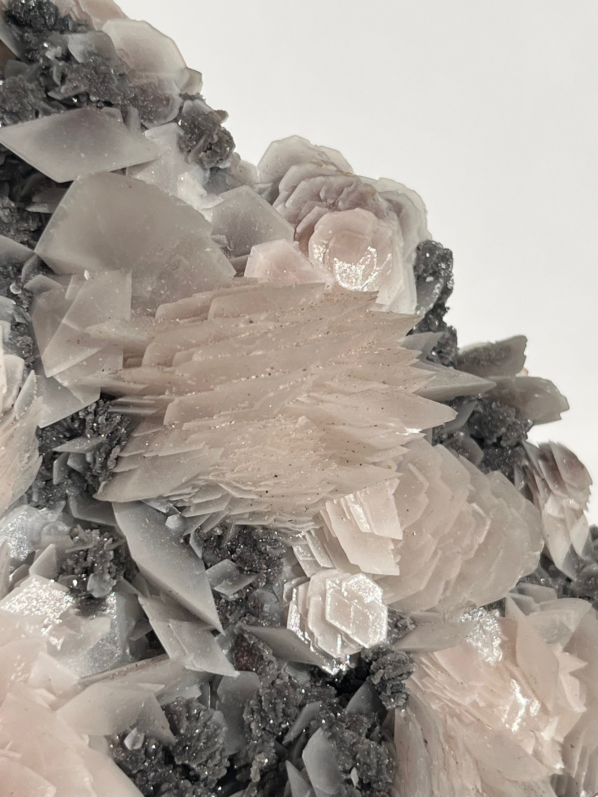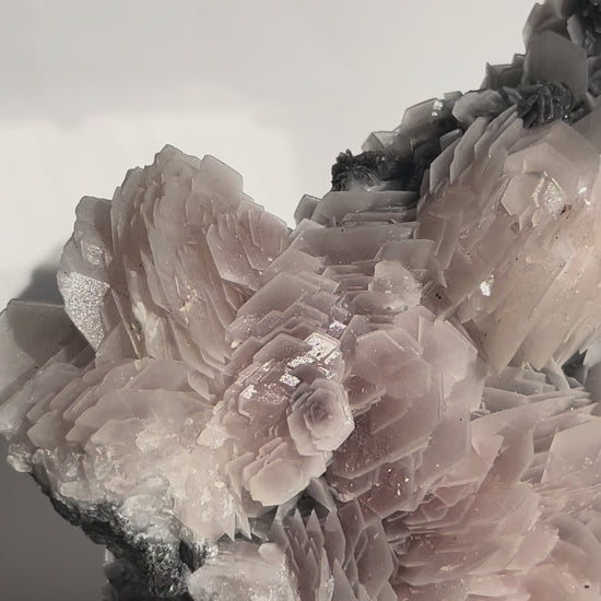 "The Queen of the Night" Pink Sakura Blossom Calcite on Quartz Coated Matrix Specimen with Custom Stand (Collector' Choice)