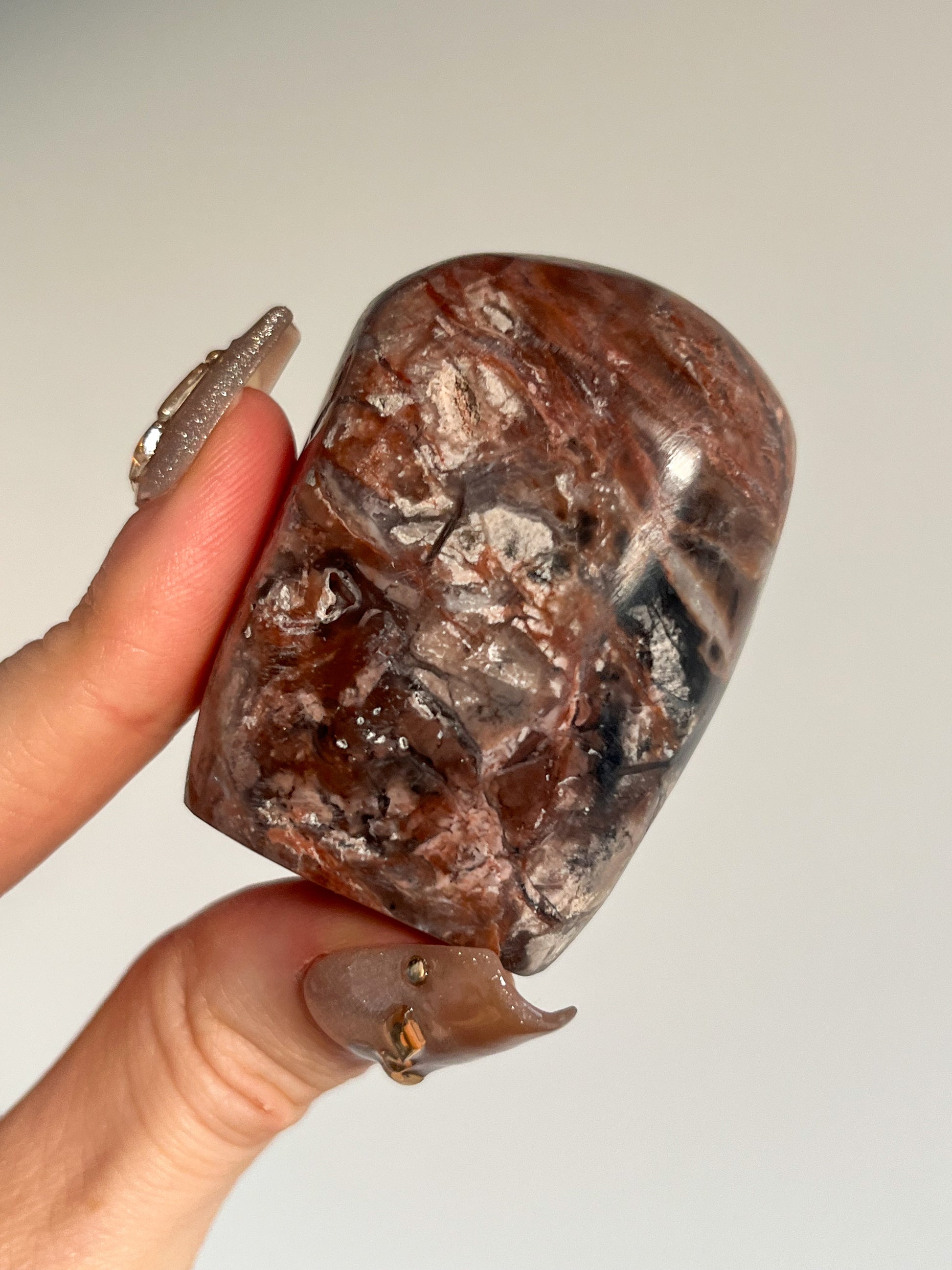 Tiffany Stone is a complex mineral rock that contains fluorite as well as a range of other minerals such as opal, quartz, chalcedony, bertrandite, calcite, dolomite and others.