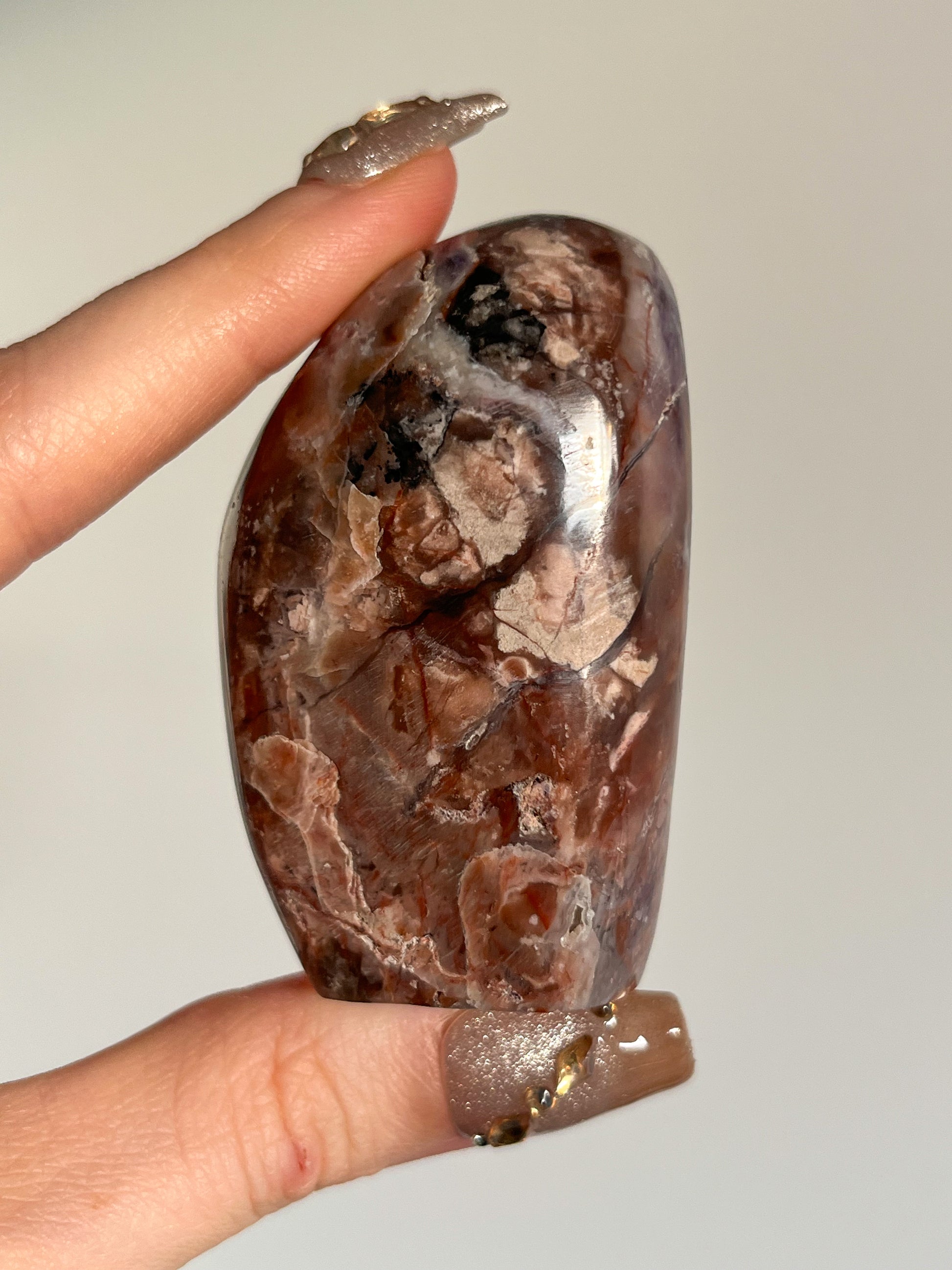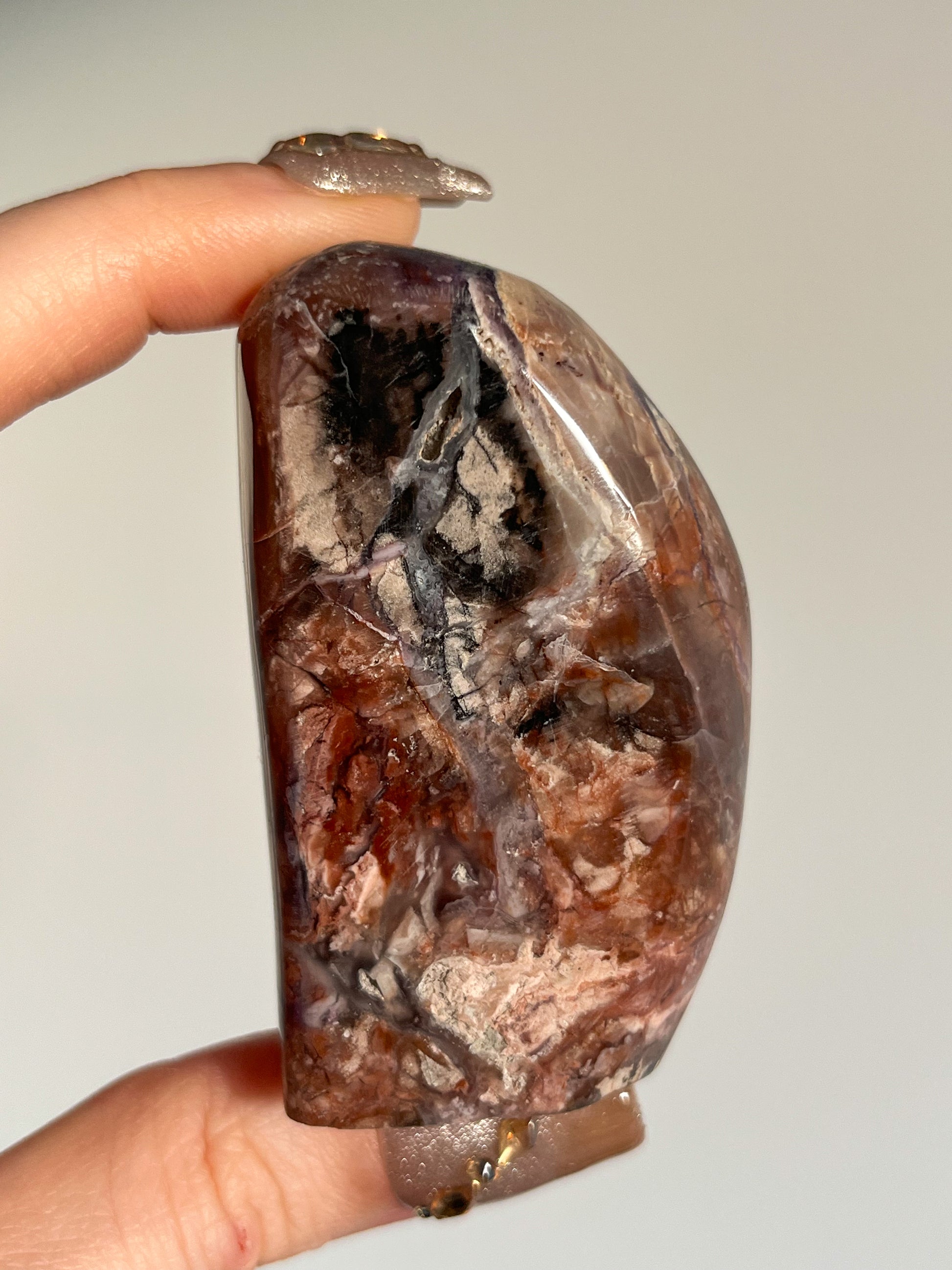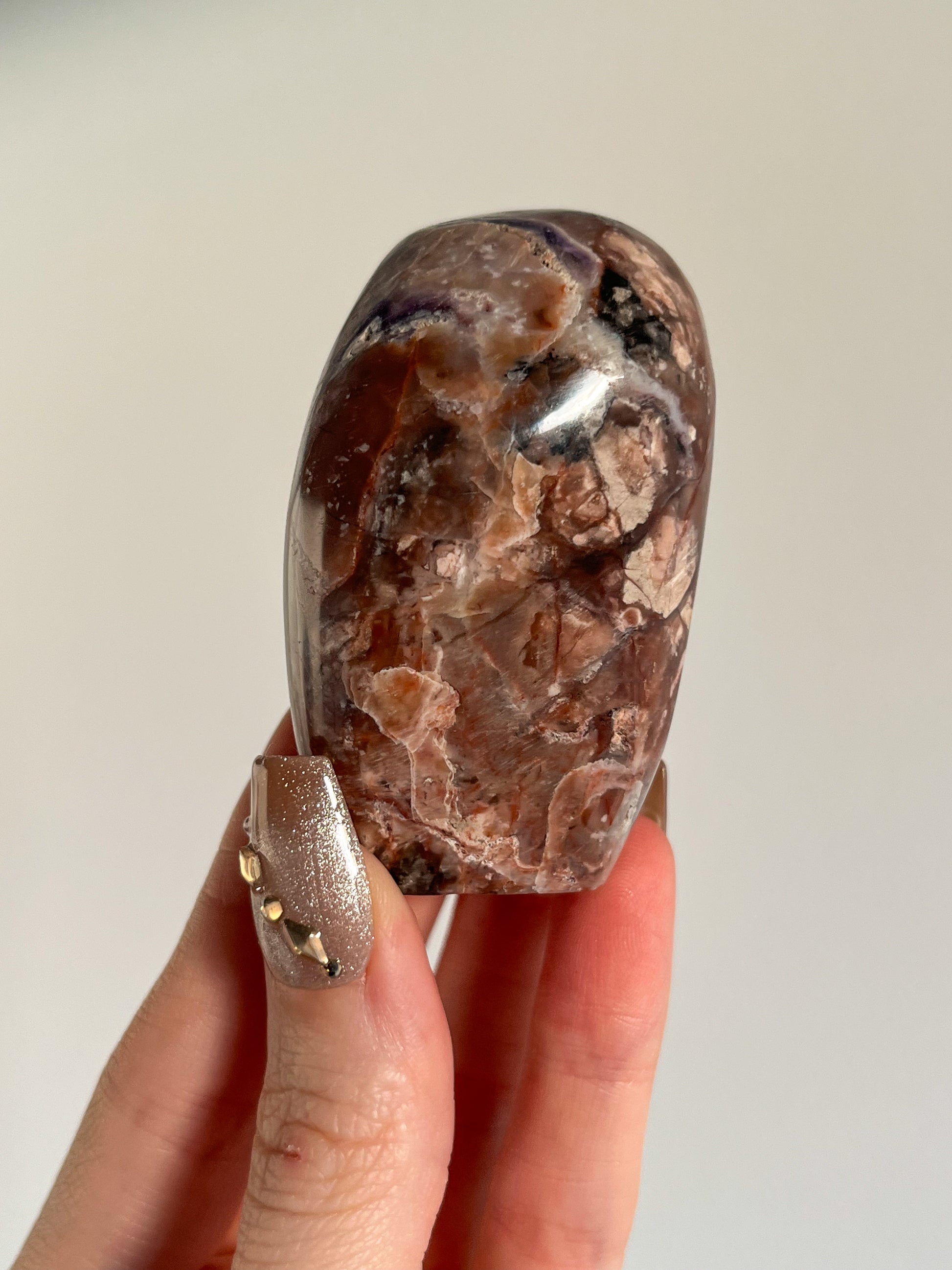 Tiffany Stone is a complex mineral rock that contains fluorite as well as a range of other minerals such as opal, quartz, chalcedony, bertrandite, calcite, dolomite and others.