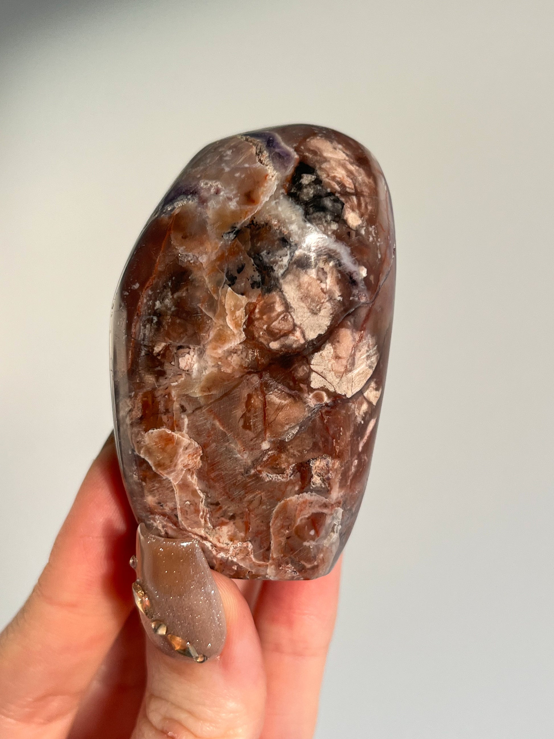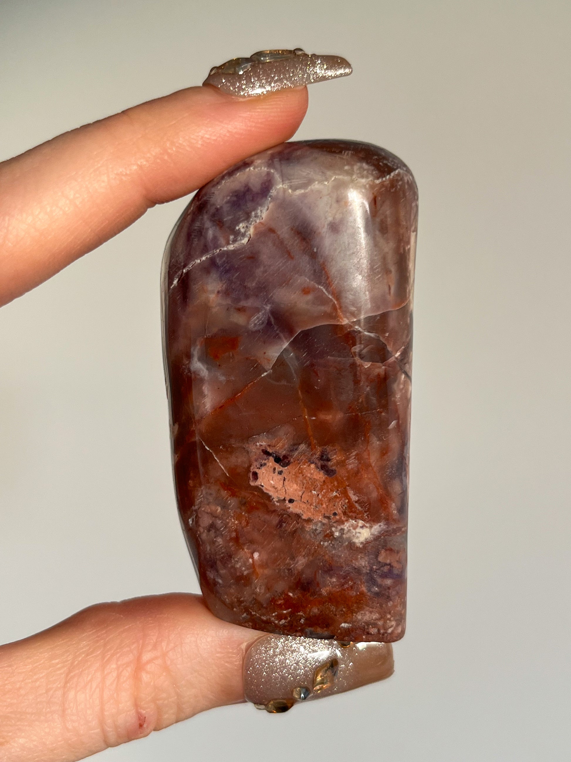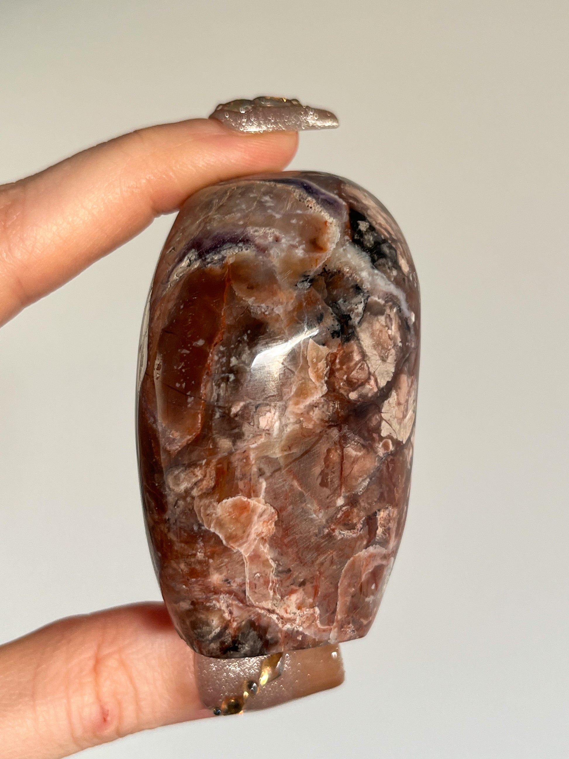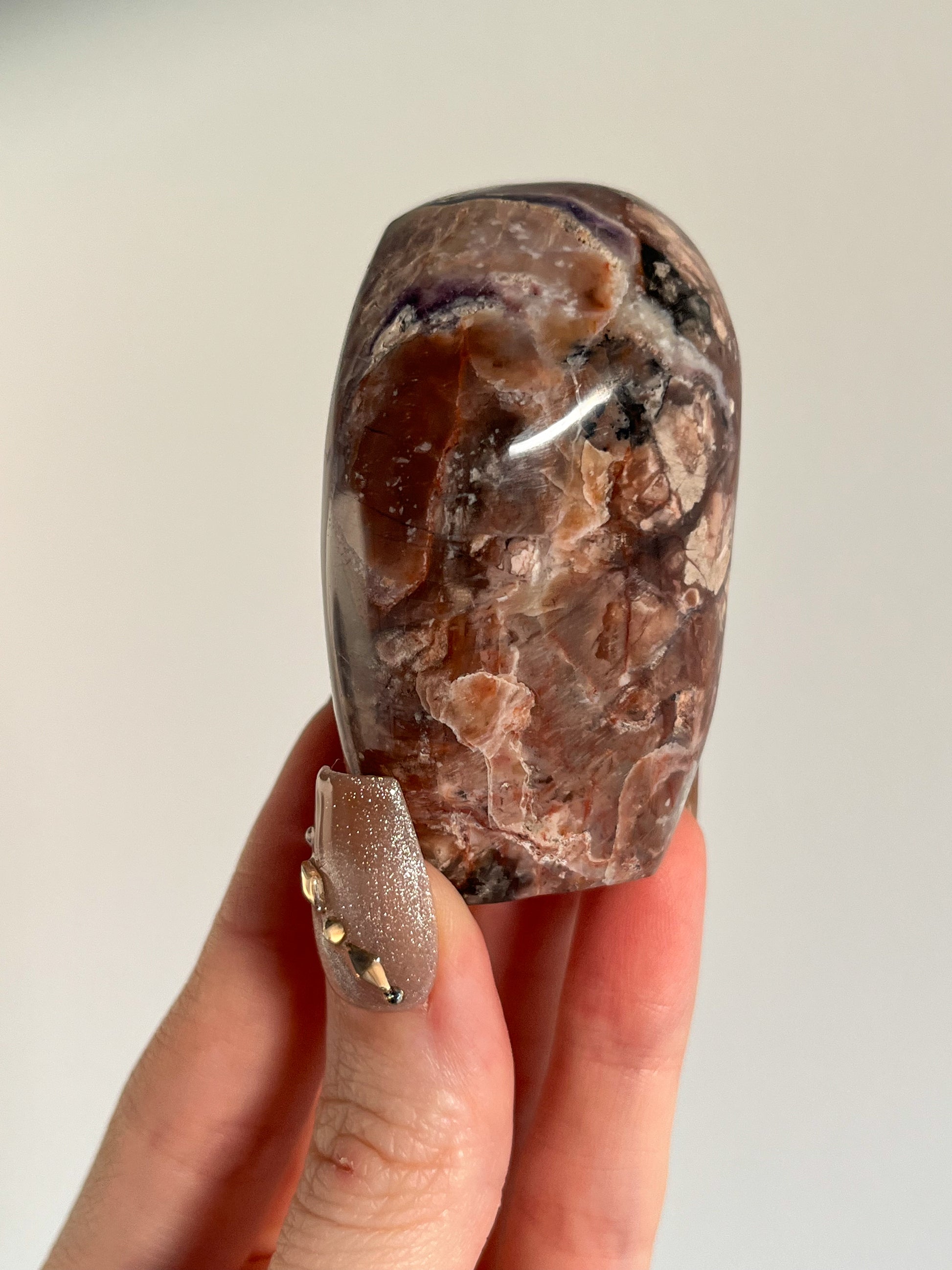 Tiffany Stone is a complex mineral rock that contains fluorite as well as a range of other minerals such as opal, quartz, chalcedony, bertrandite, calcite, dolomite and others.
