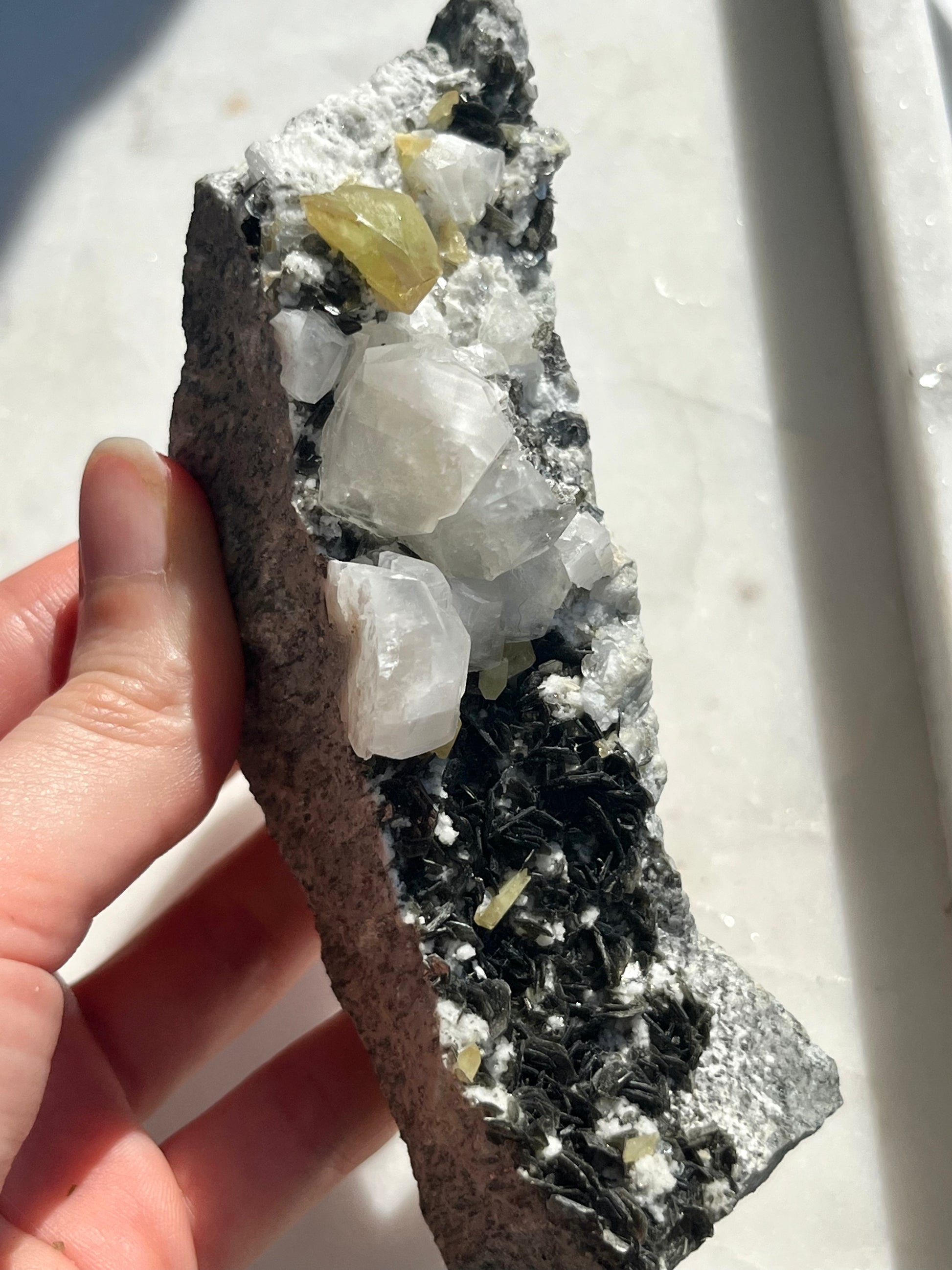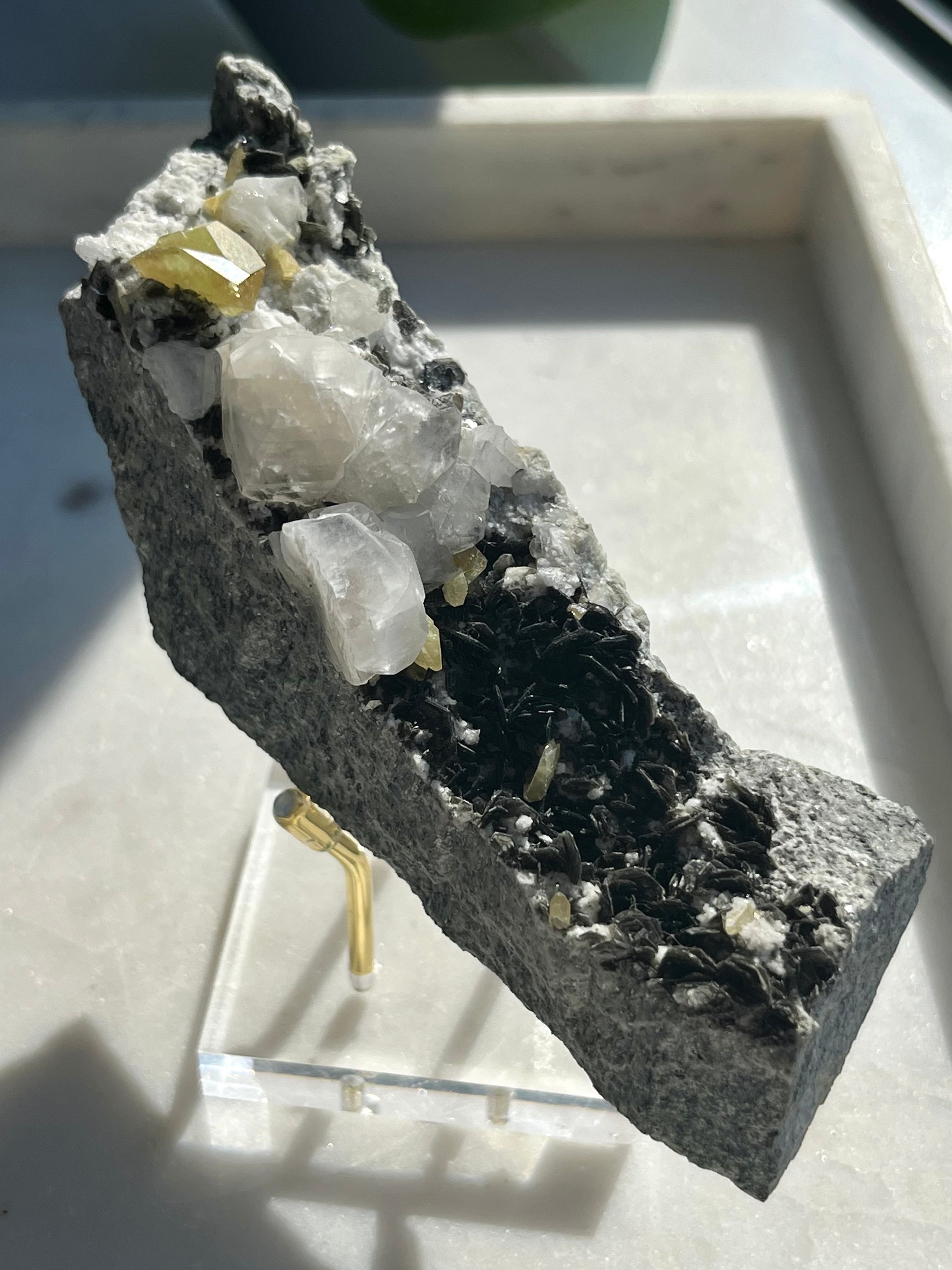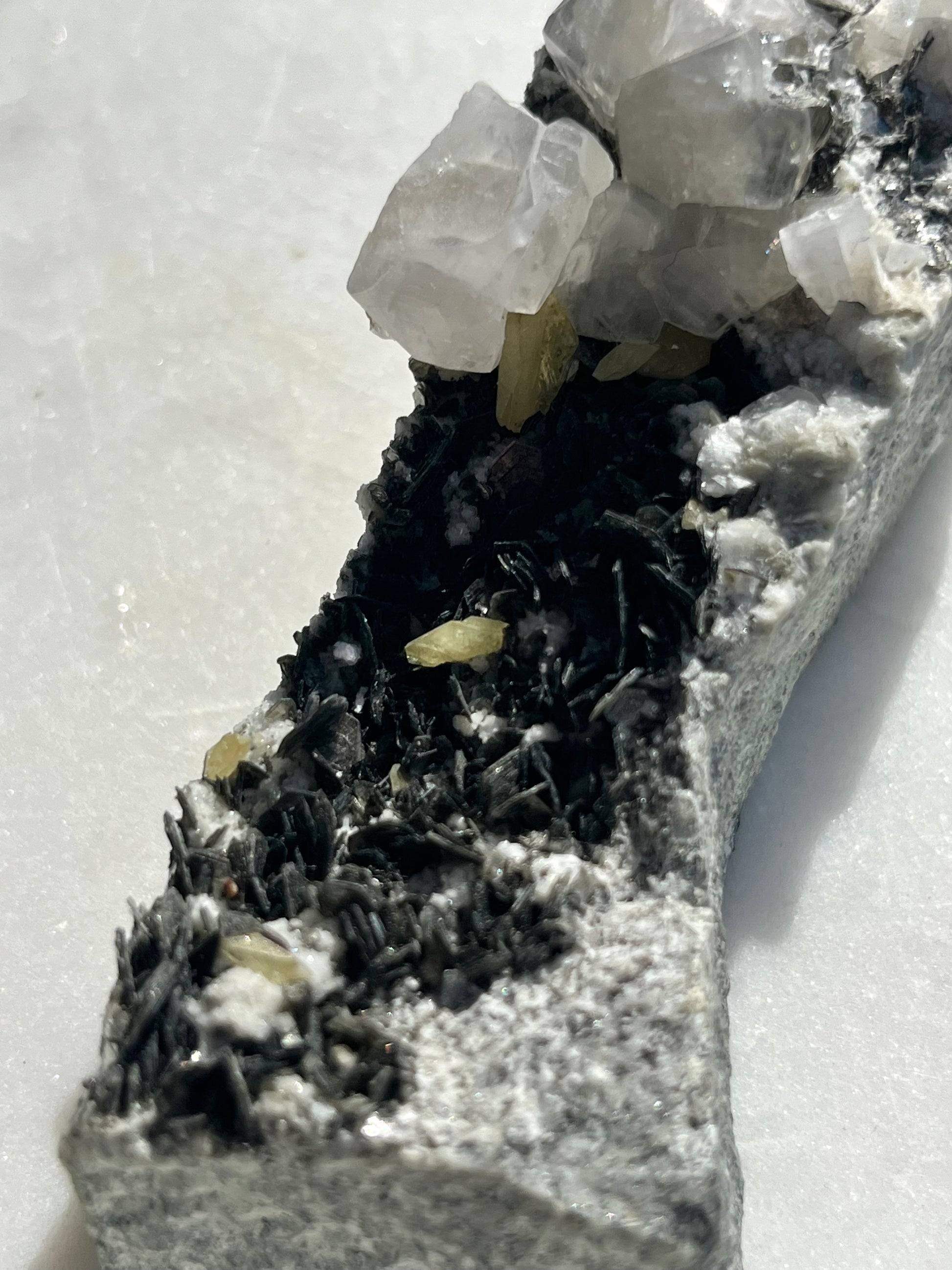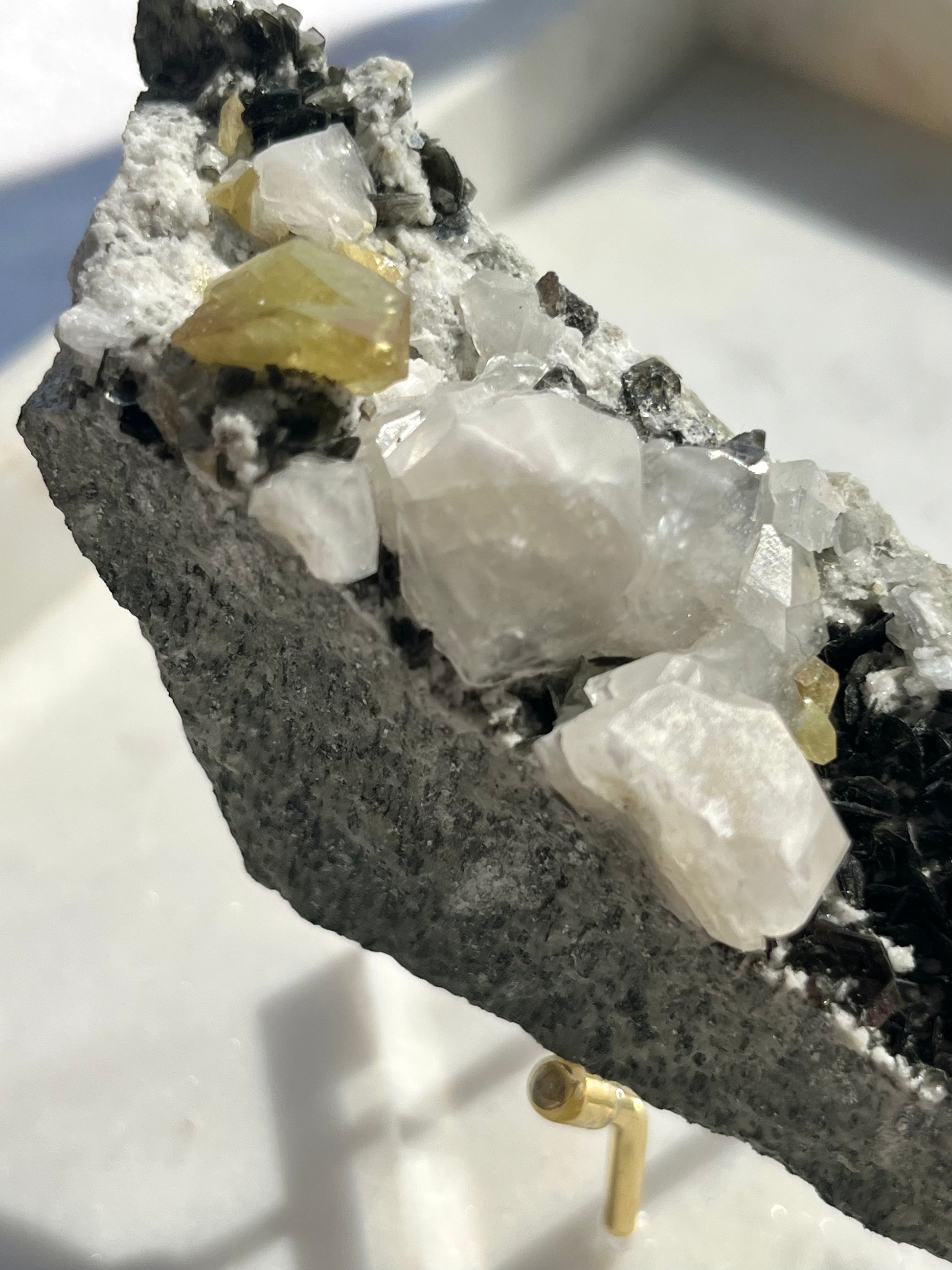 “大力士”长石基质上的钛矿、方解石和银云母样本 #5