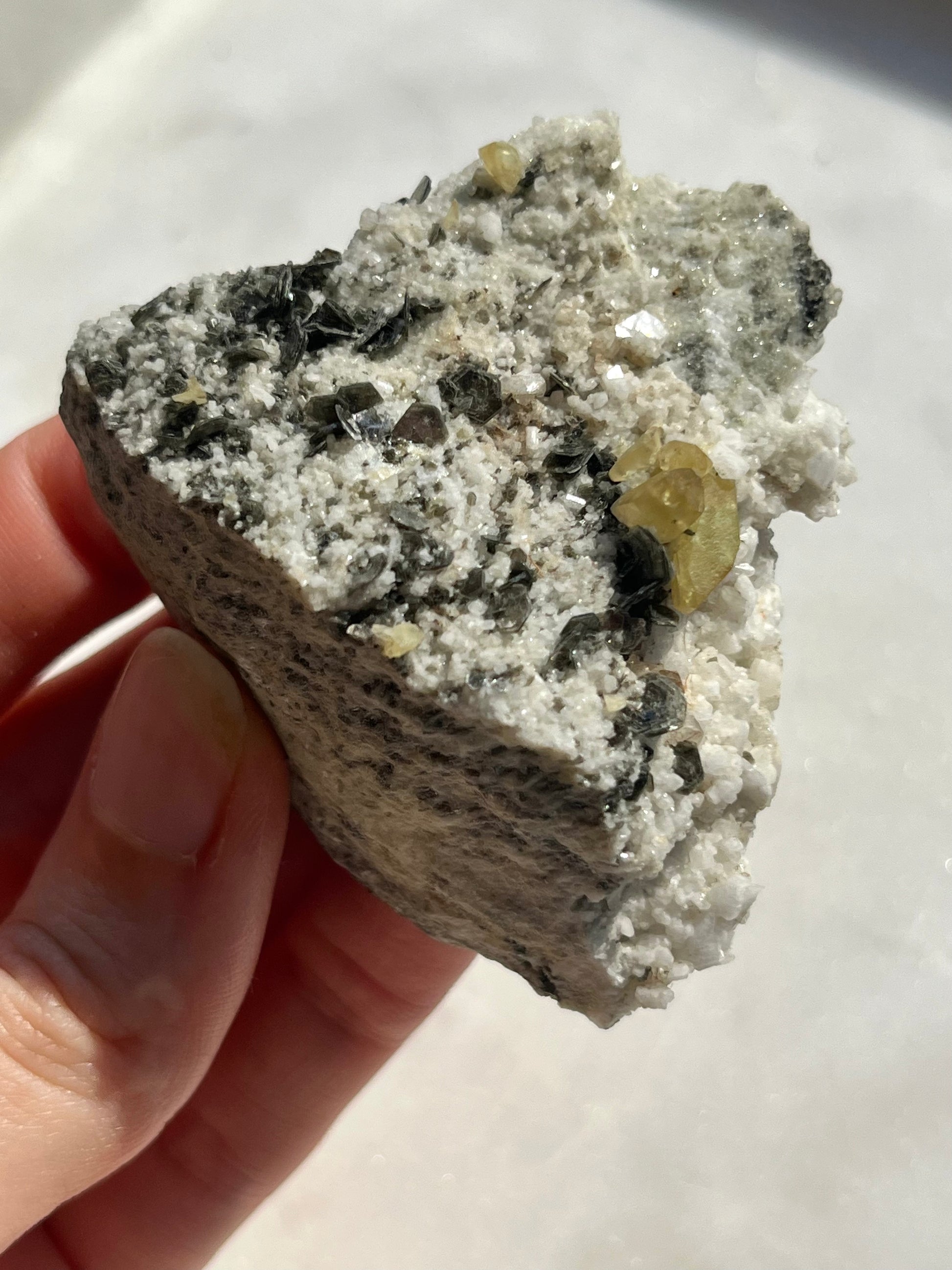 Priestess Crystals 的所有钛矿标本均具有完全完美无瑕的绿黄色钛矿晶体,并且具有孪生现象。